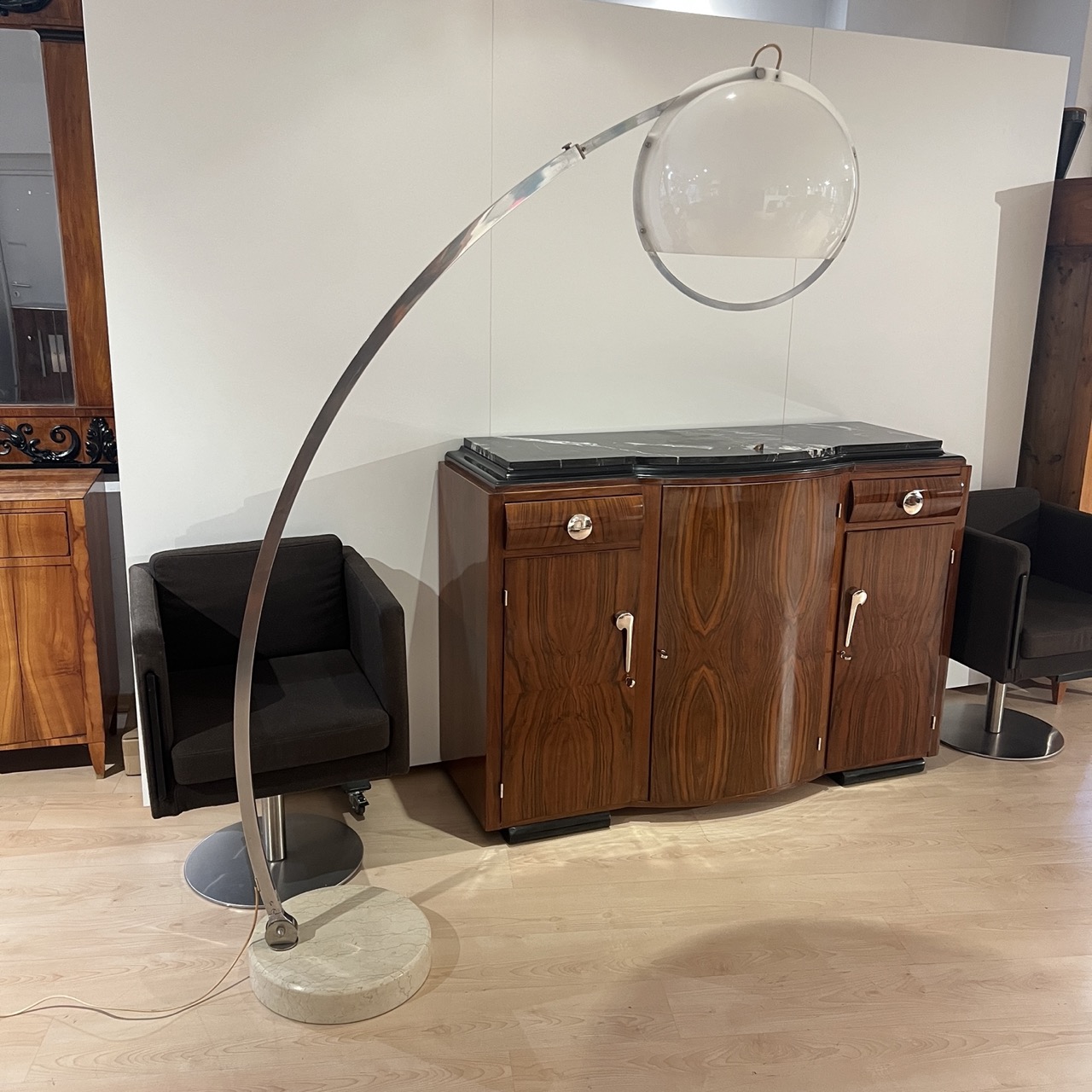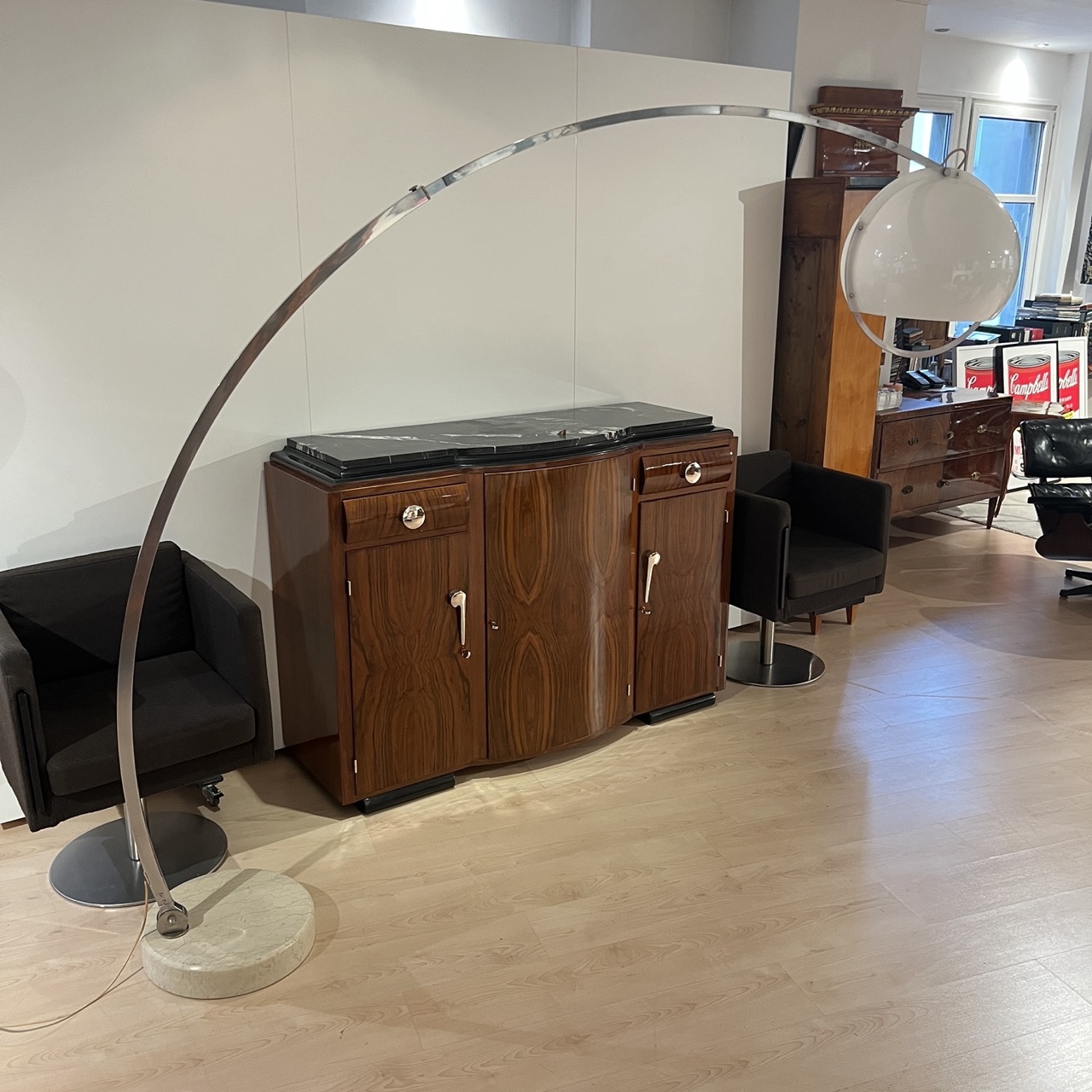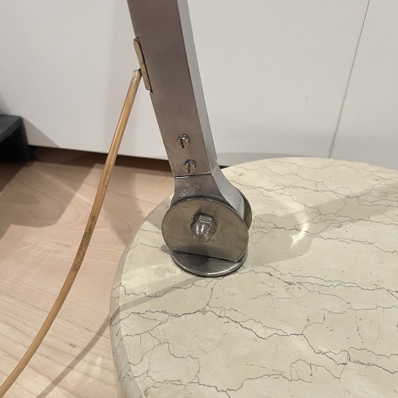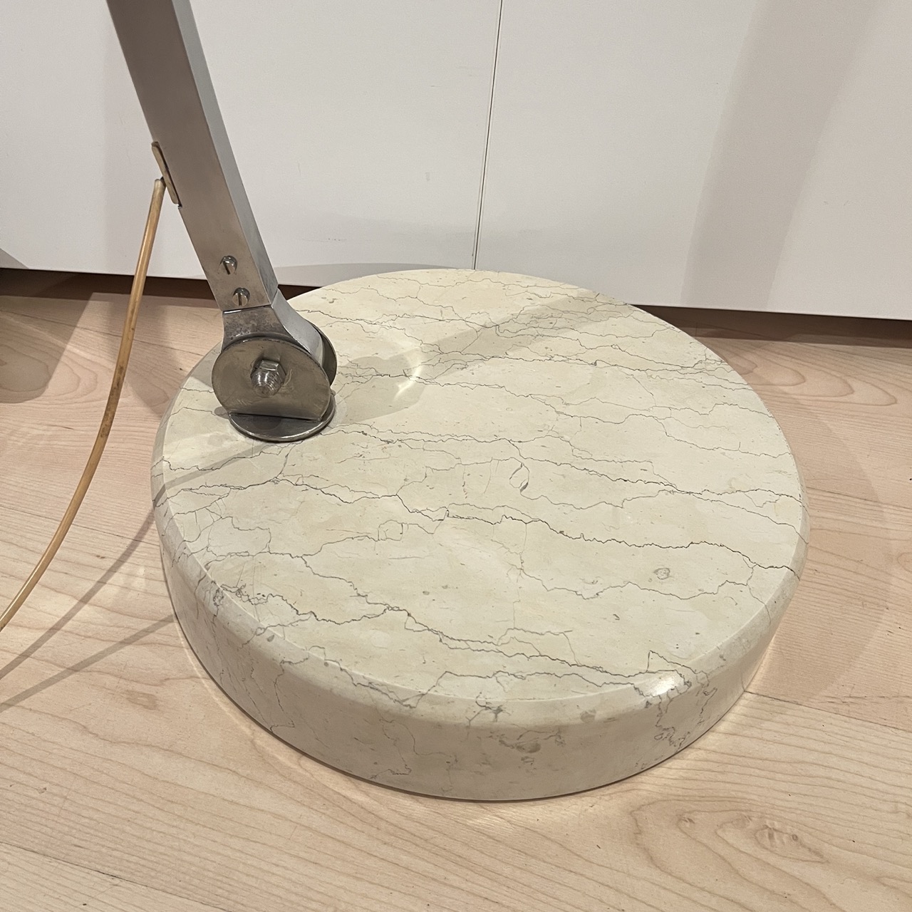 DE-LA-110 Arc Floor Lamp by Guzzini, Aluminum, Travertine, Italy circa 1970