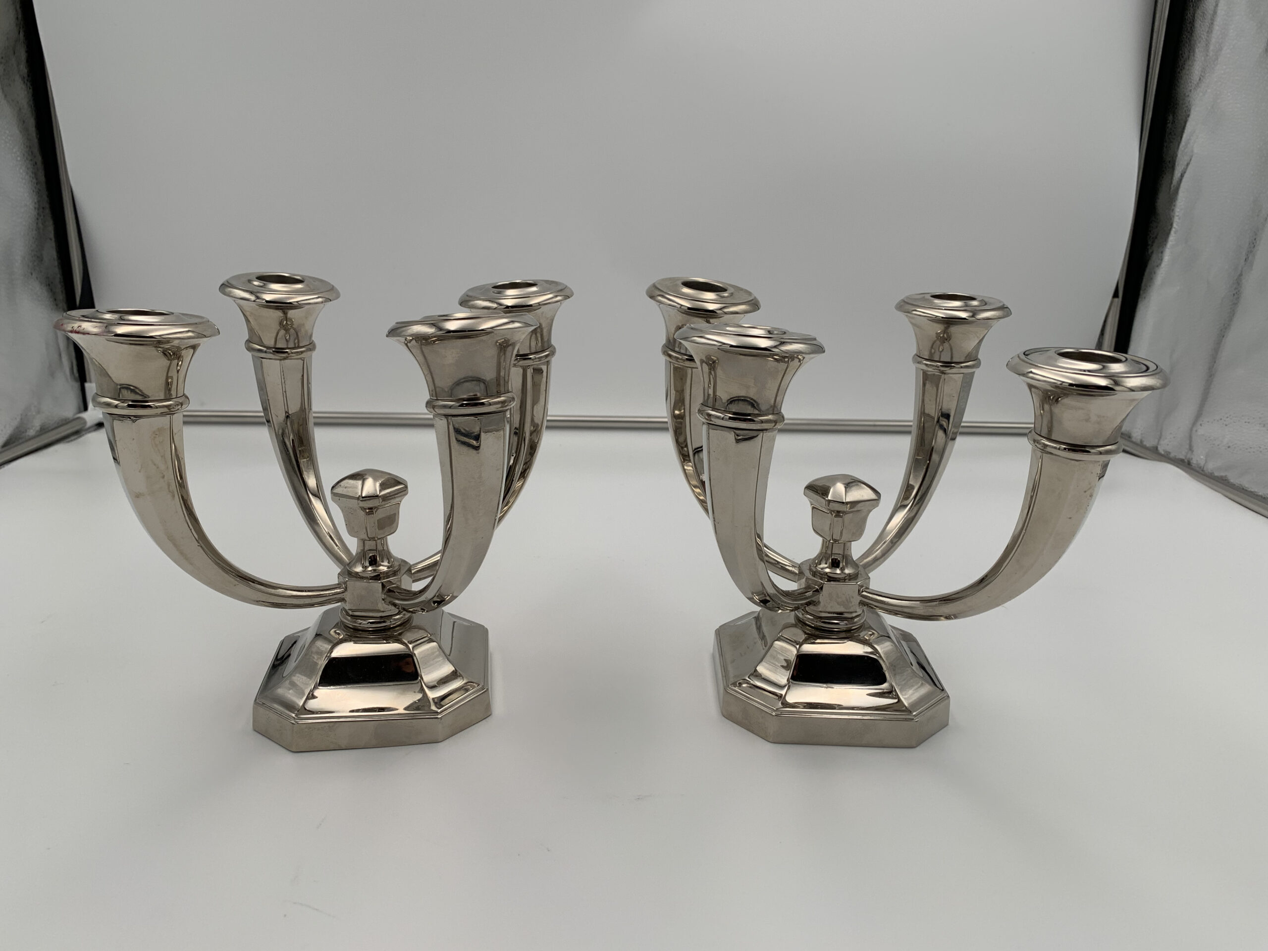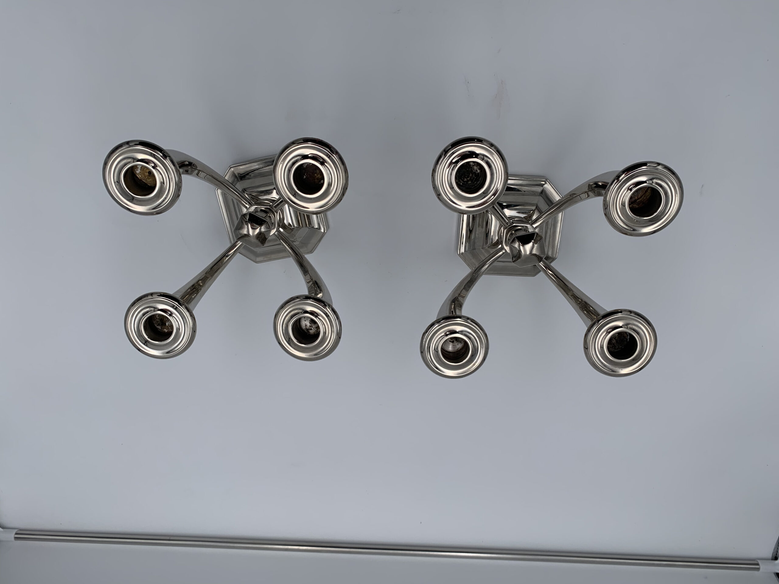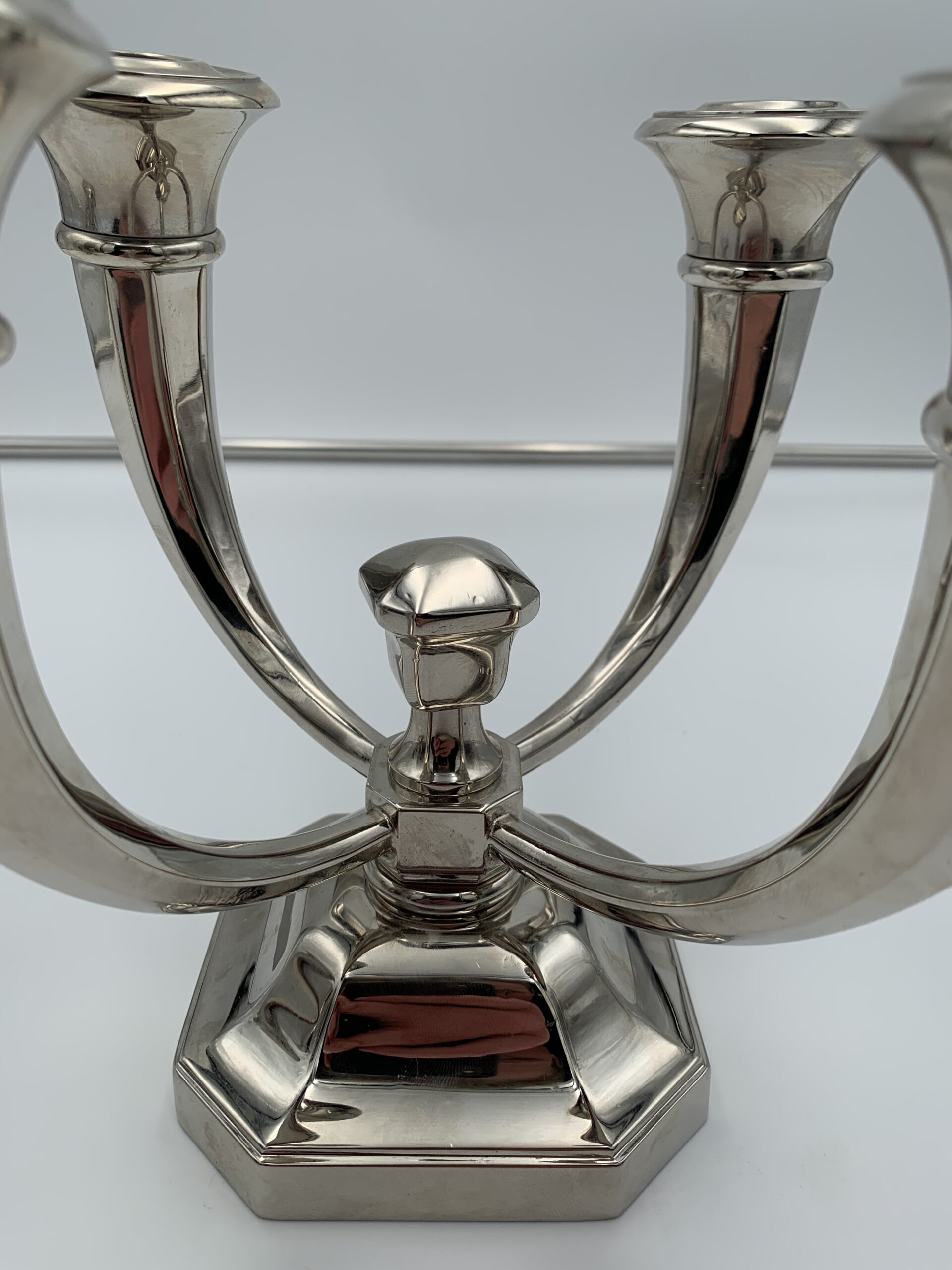 Sehr schönes Paar vierarmiger Art Deco Kerzenleuchter von Jules Leleu (1883 – 1961).