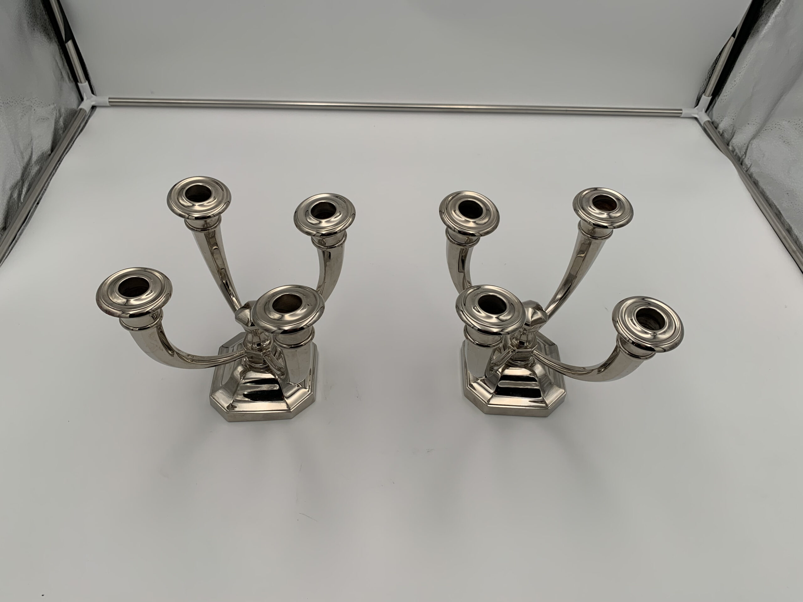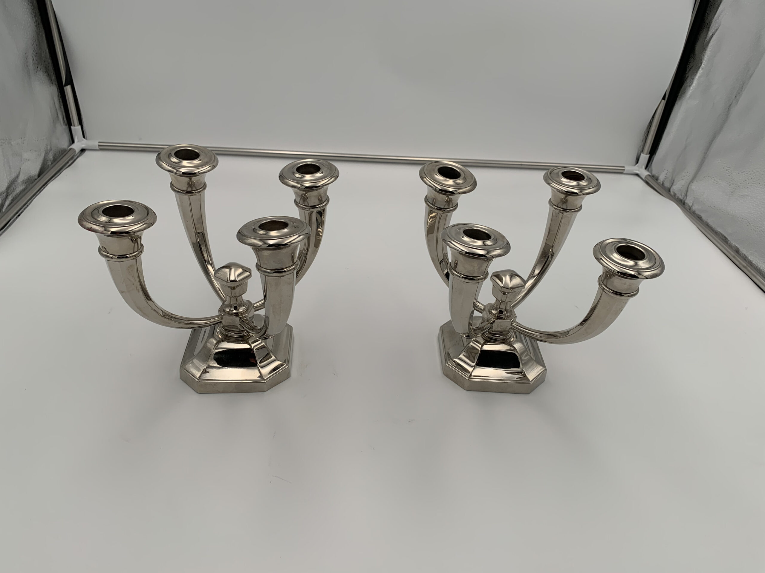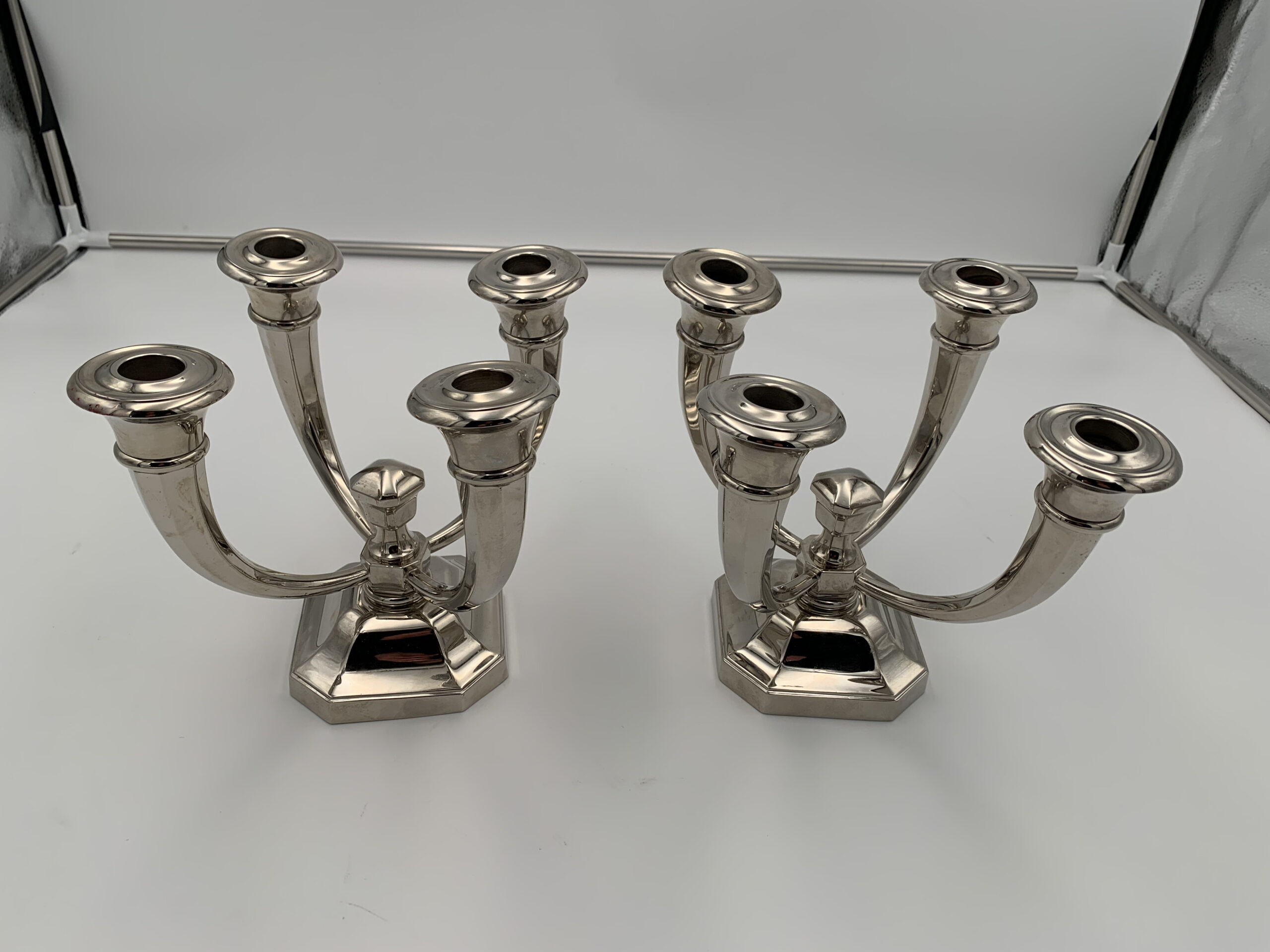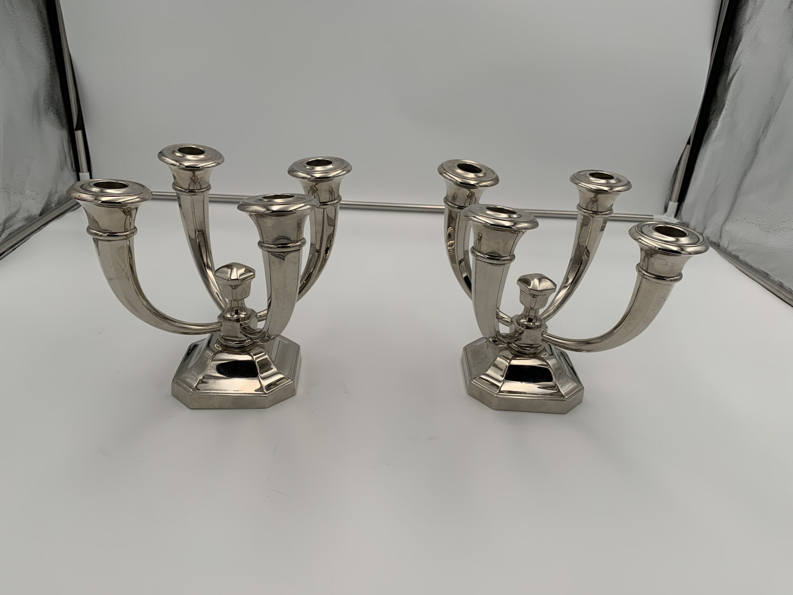 Sehr schönes Paar vierarmiger Art Deco Kerzenleuchter von Jules Leleu (1883 – 1961).
