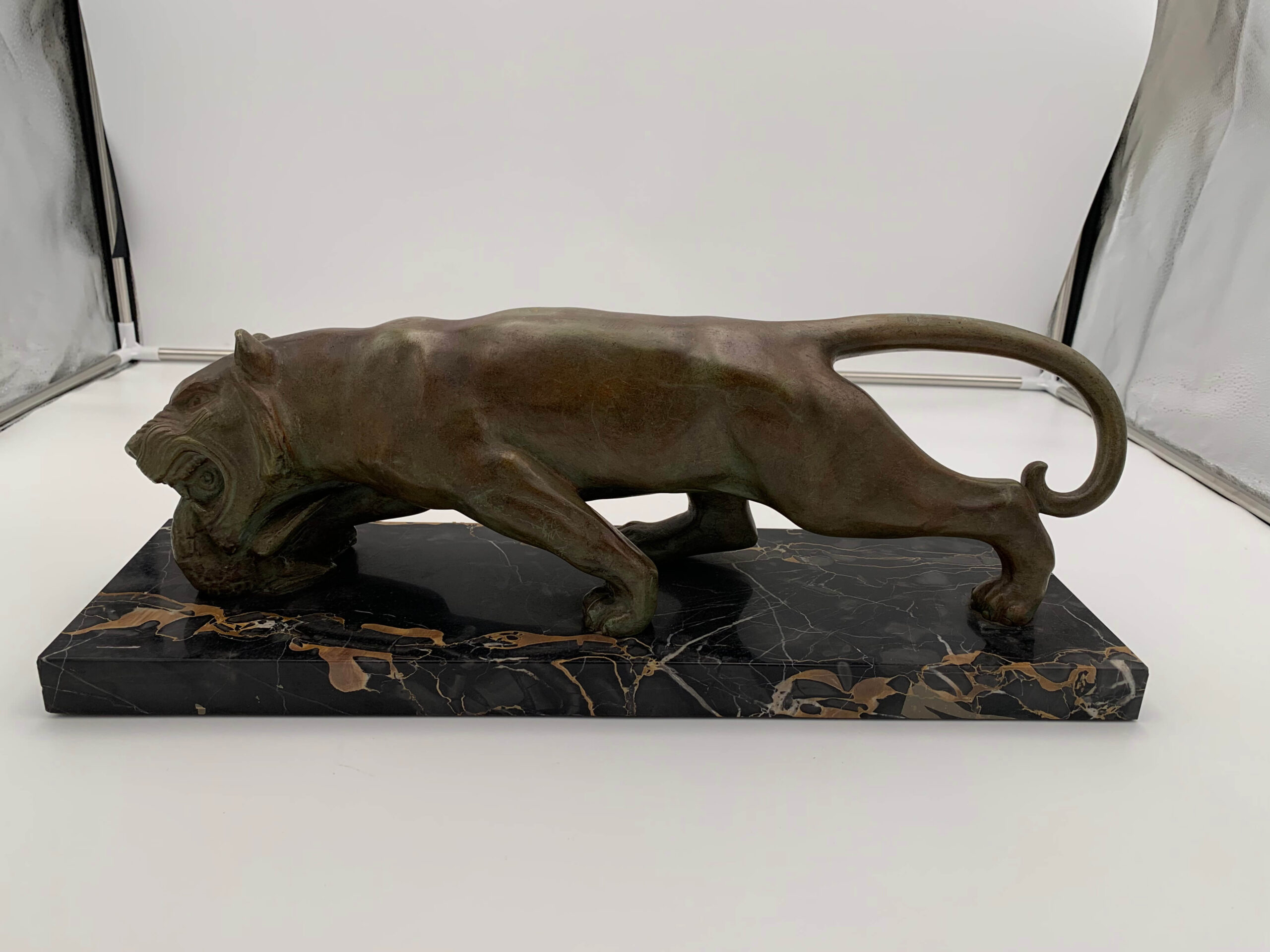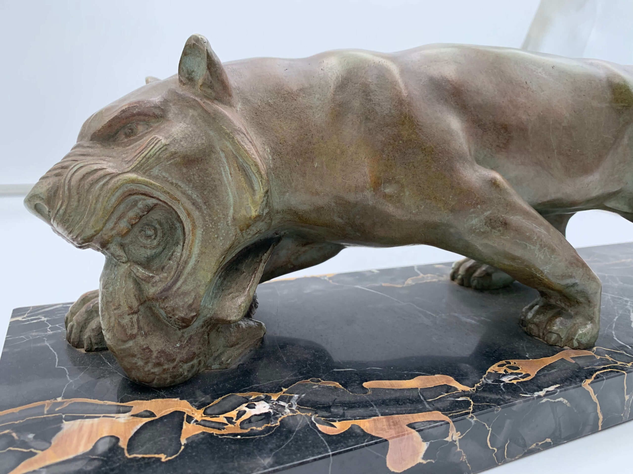 Art Deco Bronze Skulptur eines fressenden Panthers aus Frankreich um 1930