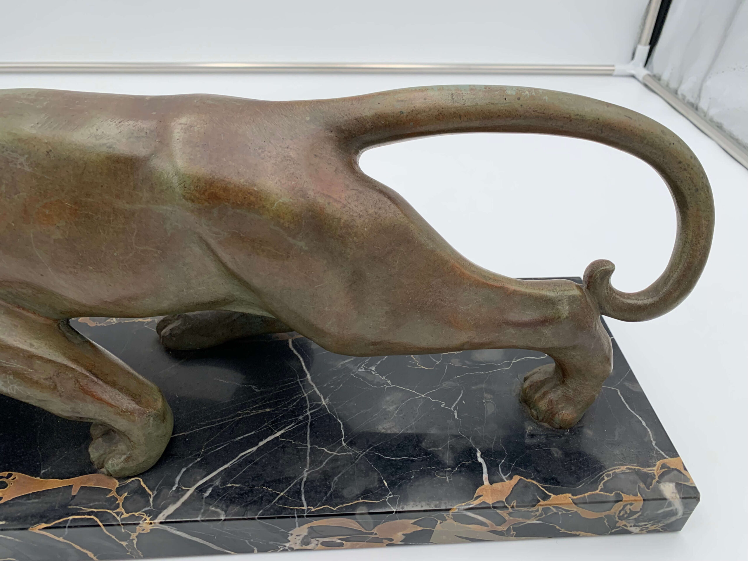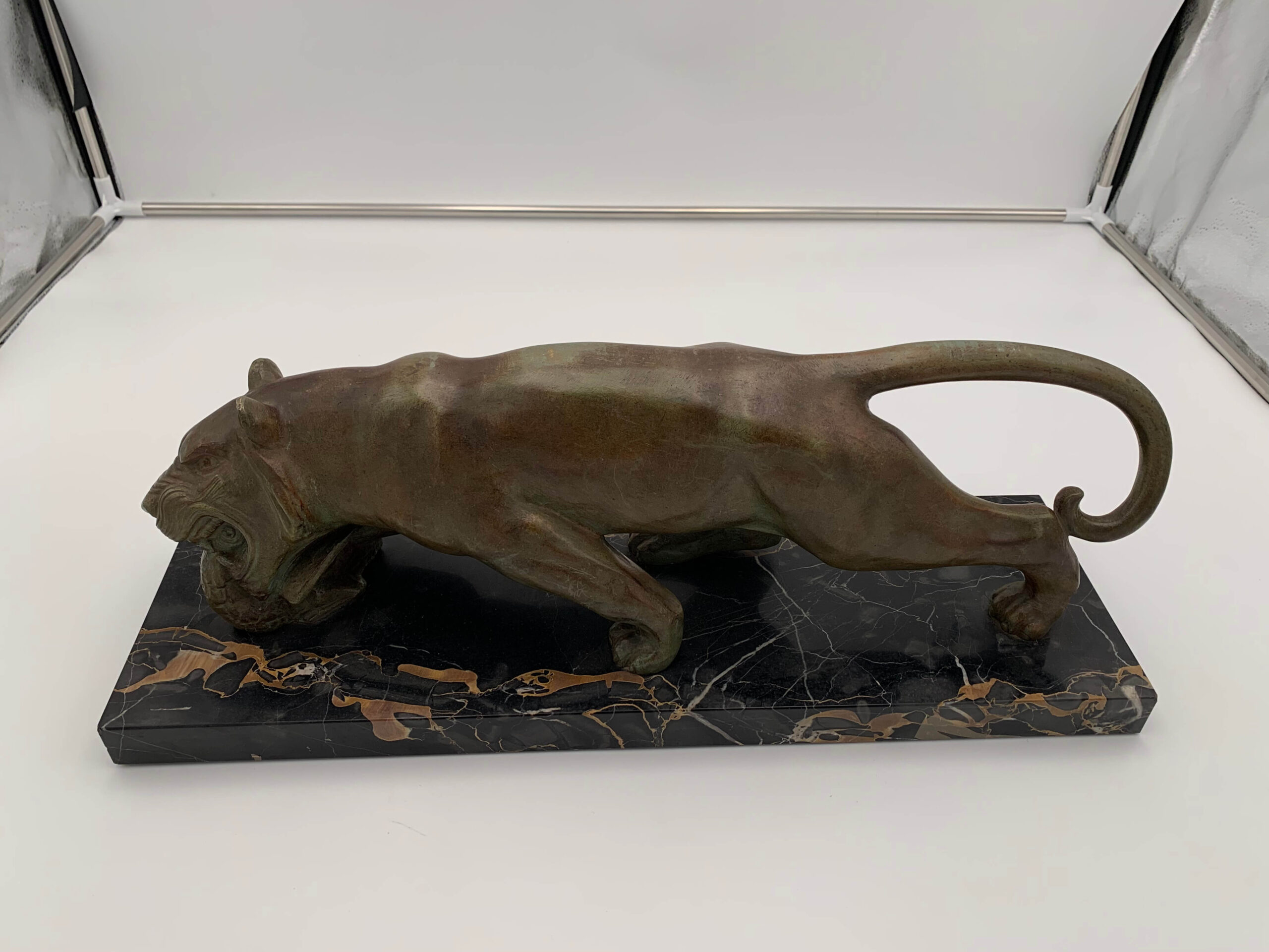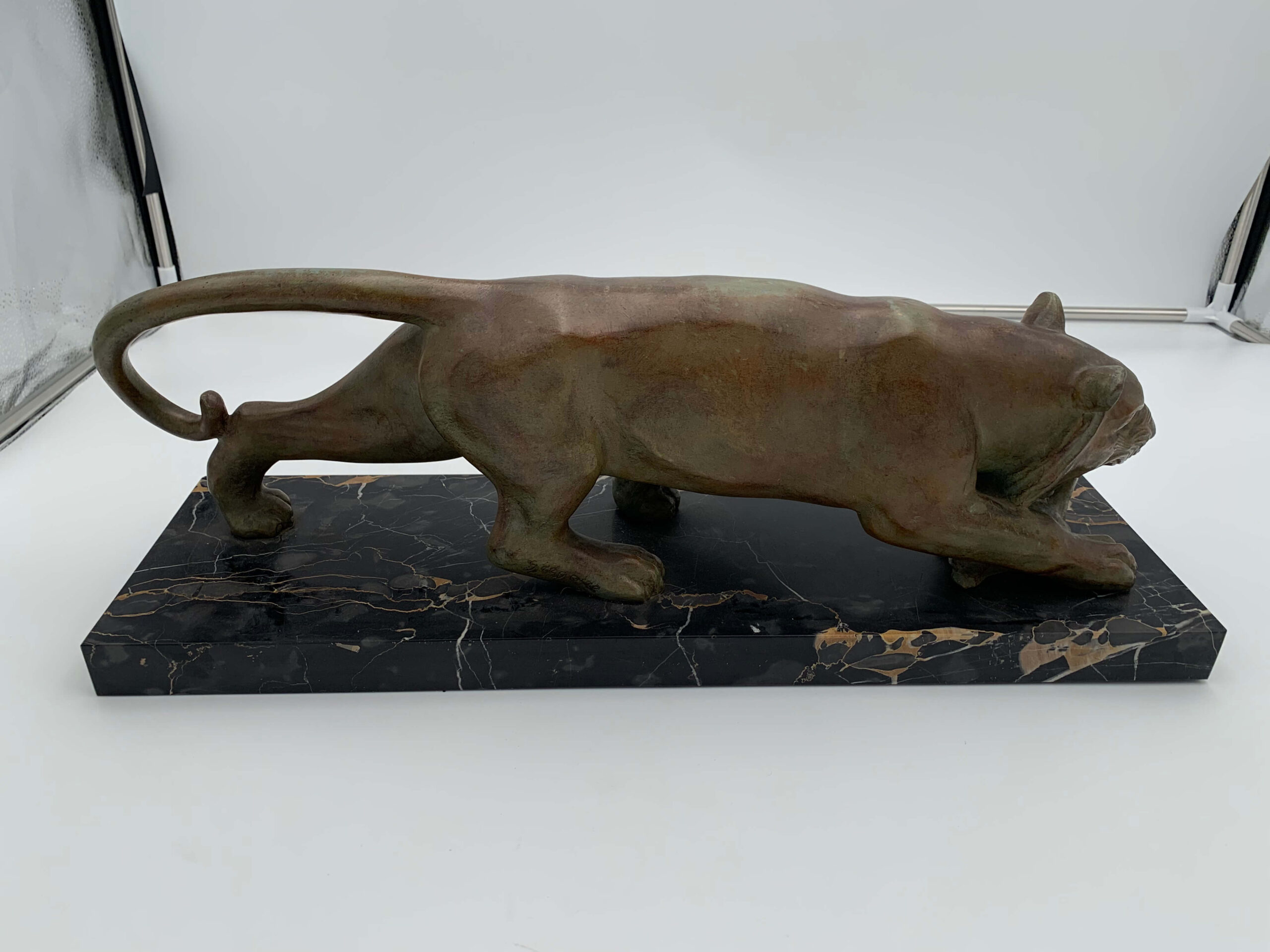 AD-DE-496 Art Deco Panther Skulptur, Bronze, Marmor, Signiert Gregoire, Frankreich um 1930