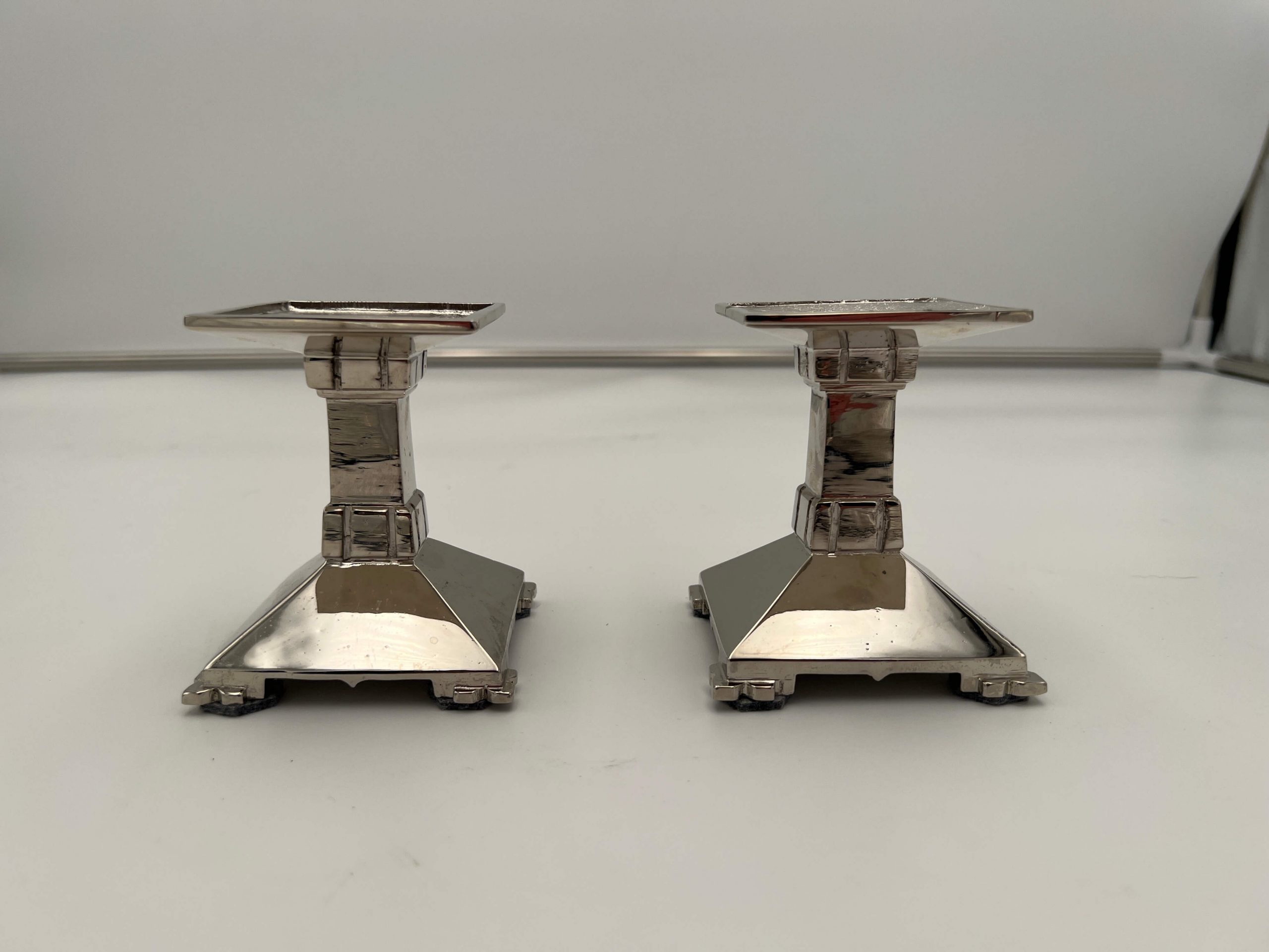 Schönes Paar eckige Art Deco Kerzenständer