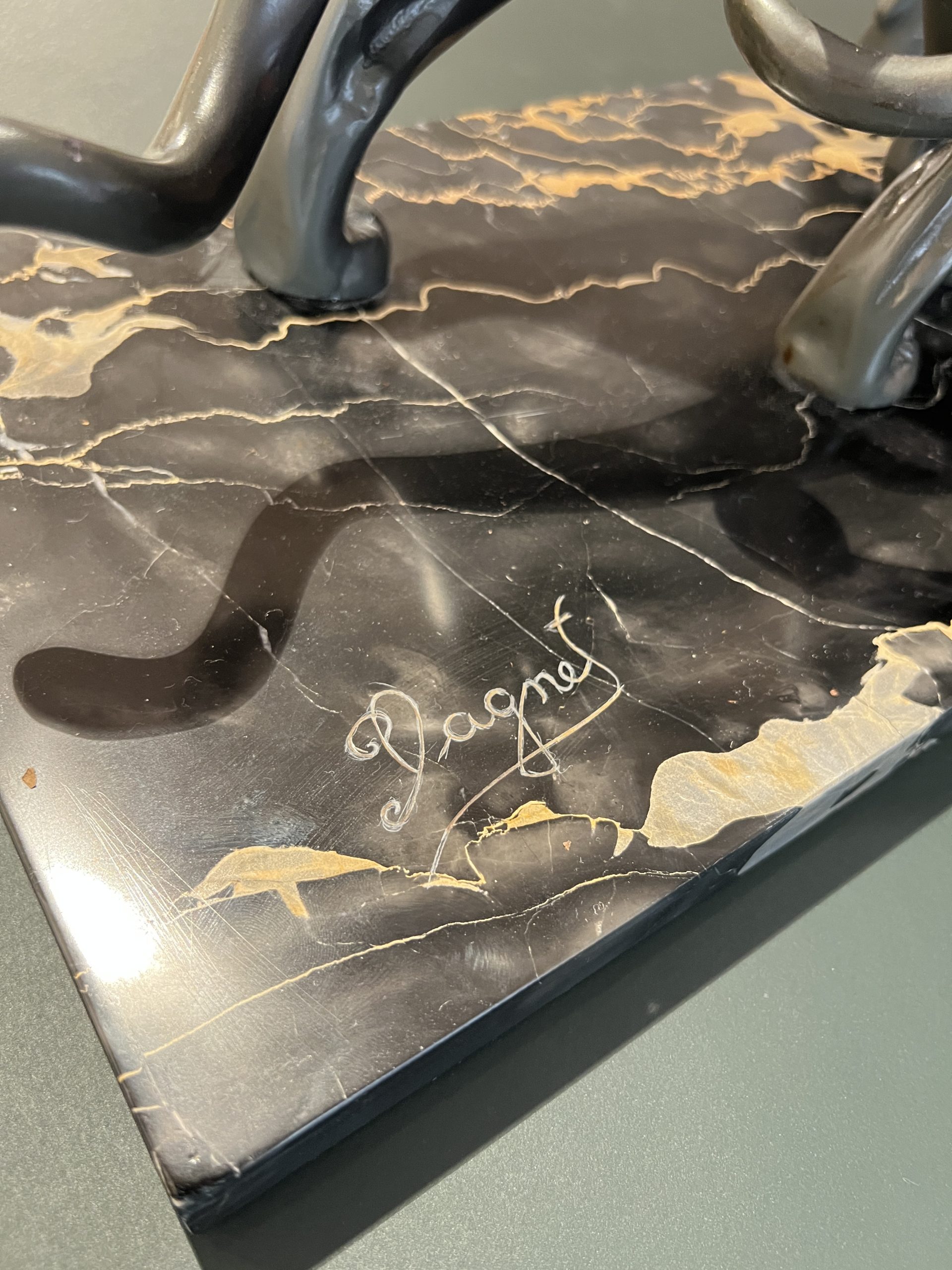 AD-DE-519 Art Deco Panther-Pärchen von Plagnet, Patinierter Zinkguss, Frankreich um 1930
