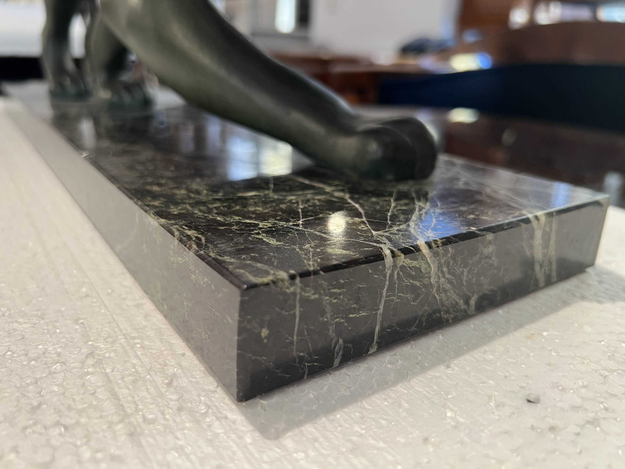 • Auf rechteckiger grünlicher Marmor Plinthe stehend.