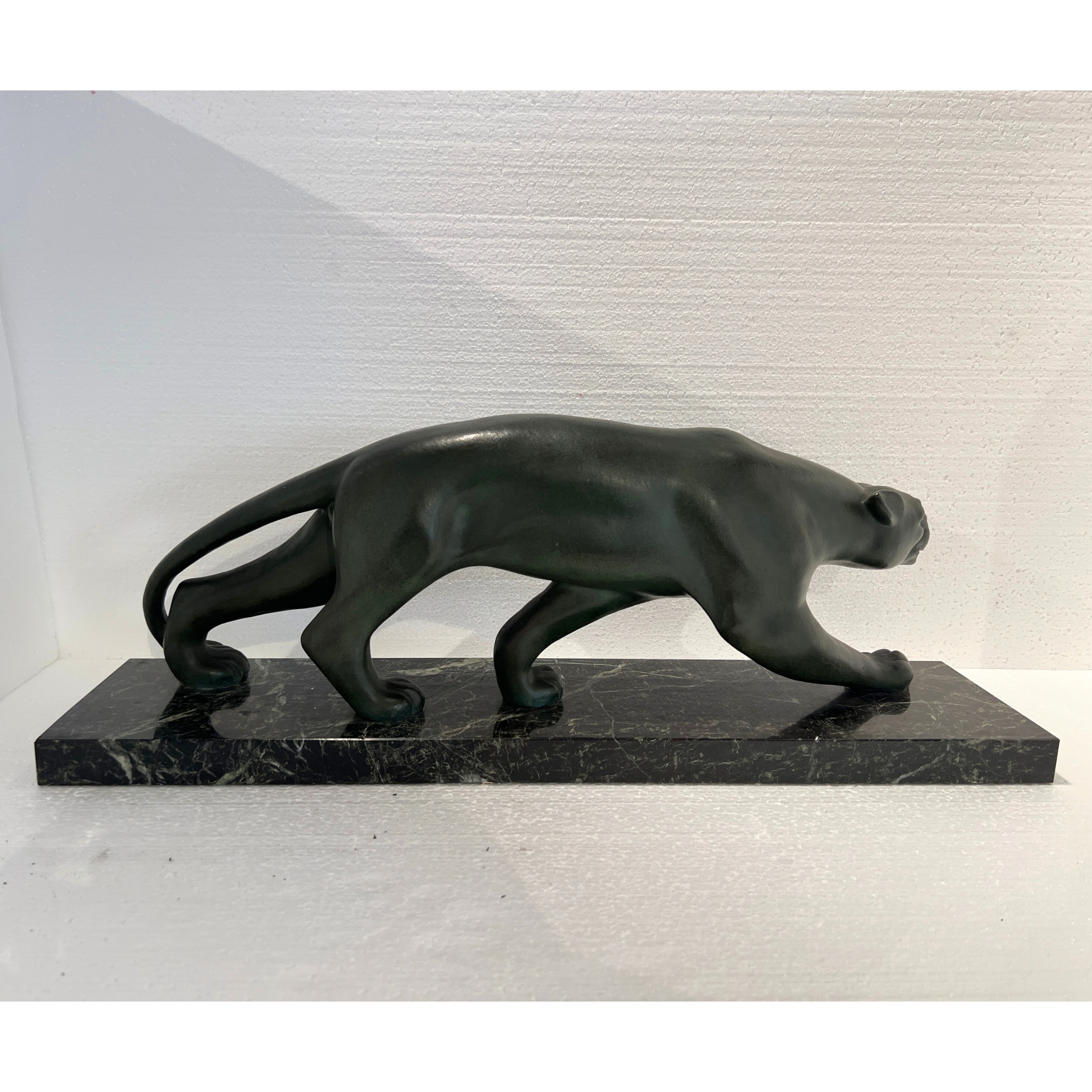 Tolle Art Deco Bronze-Skulptur eines Panthers von Secondo aus Frankreich, um 1930.