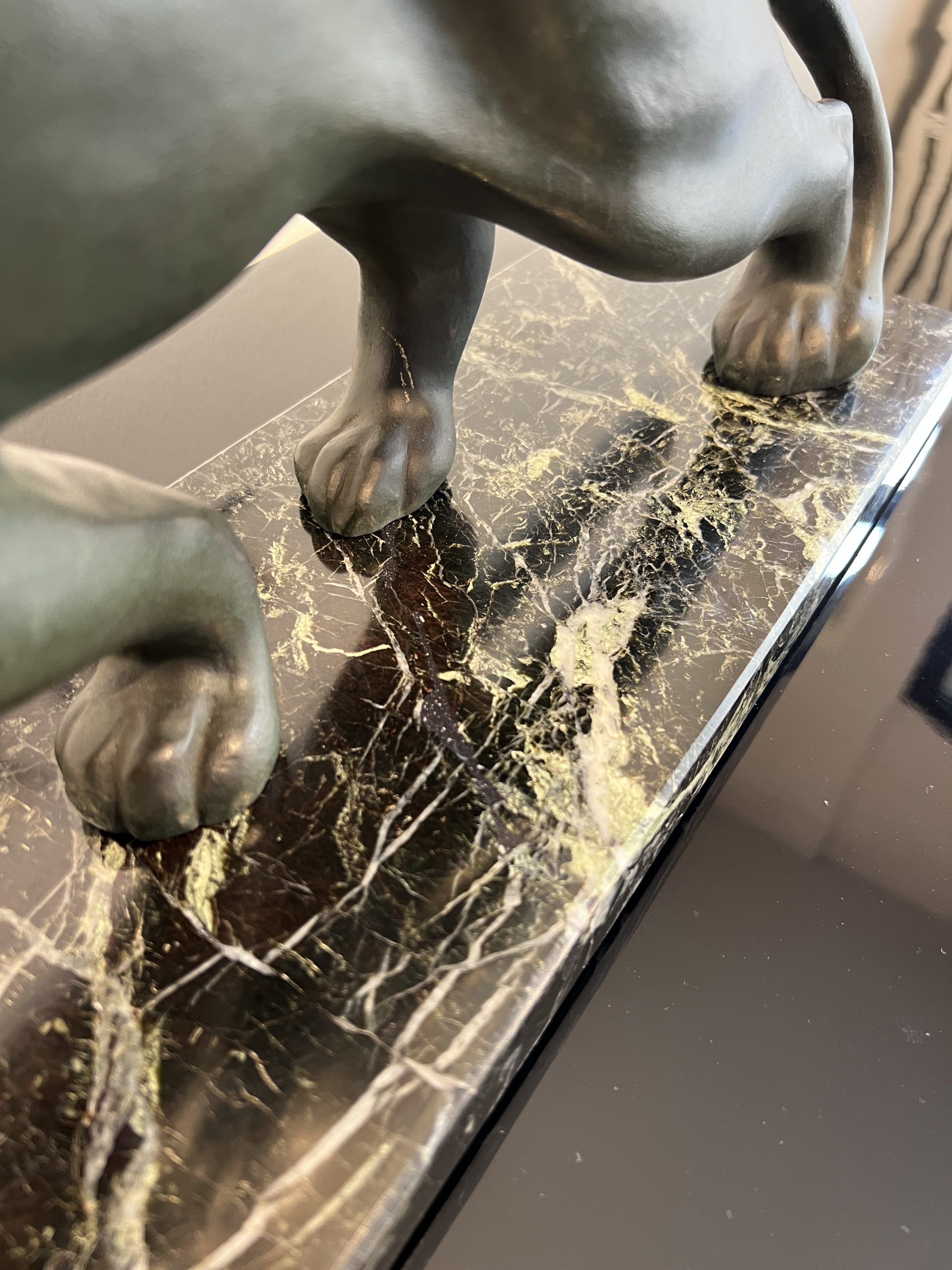 AD-DE-530 Art Deco Panther, Bronze, Marmor, Signiert Secondo, Frankreich um 1930