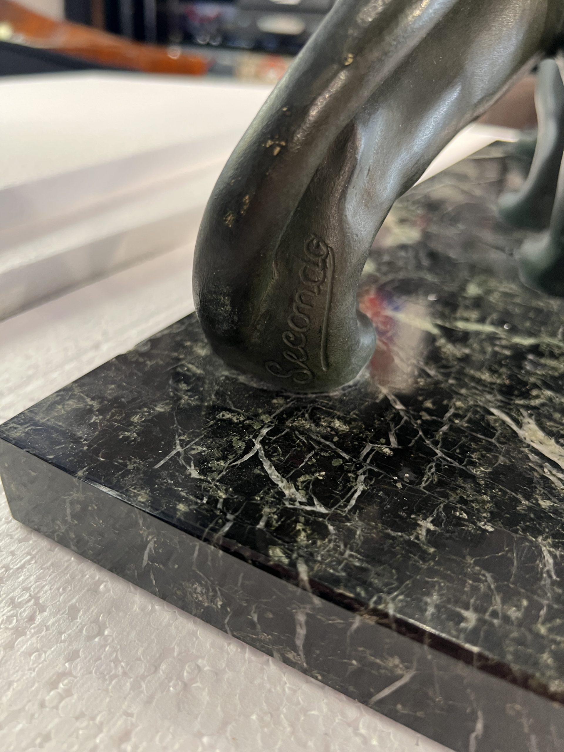 • Signatur ‚Secondo‘ (italienischer Künstler, der um 1930 in Frankreich lebte) auf dem linken hinteren Fuß.