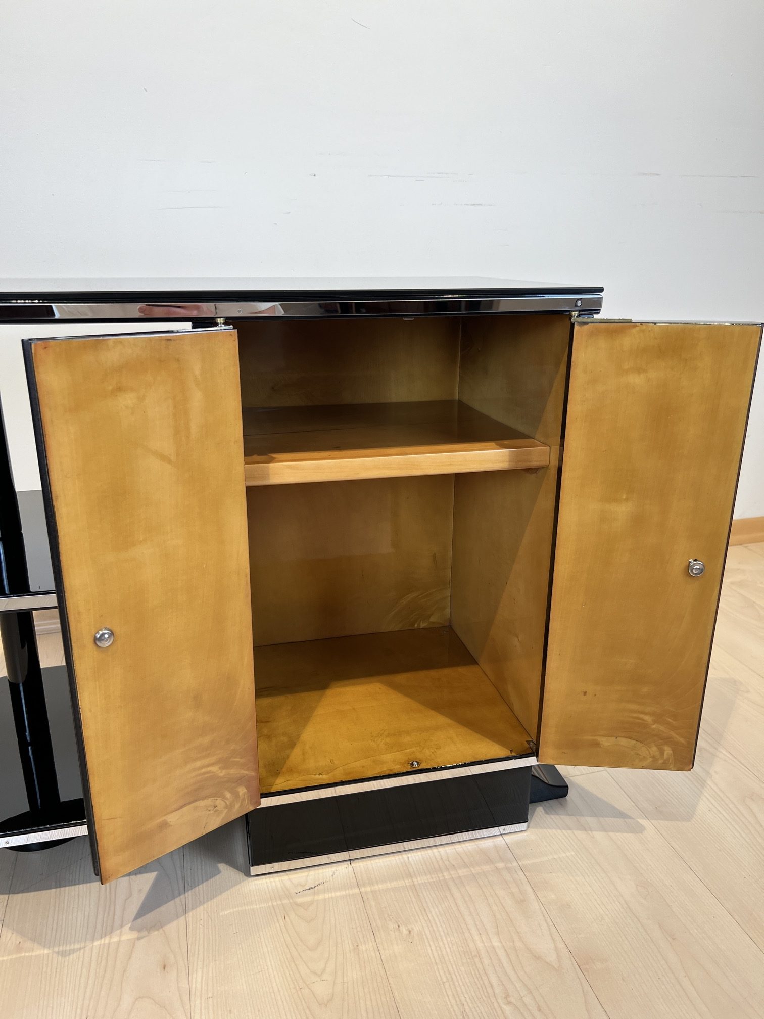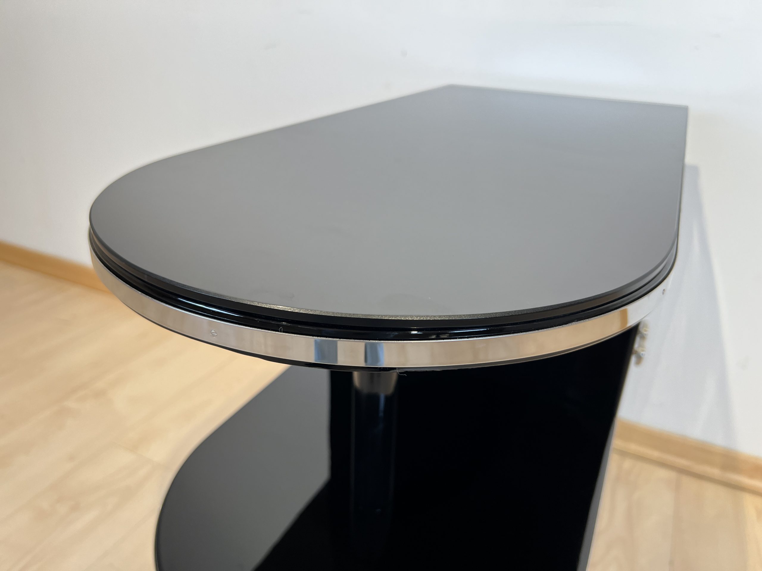 AD-KL-440 Kleines Art Deco Schränkchen, Schwarzlack, Frankreich um 1930