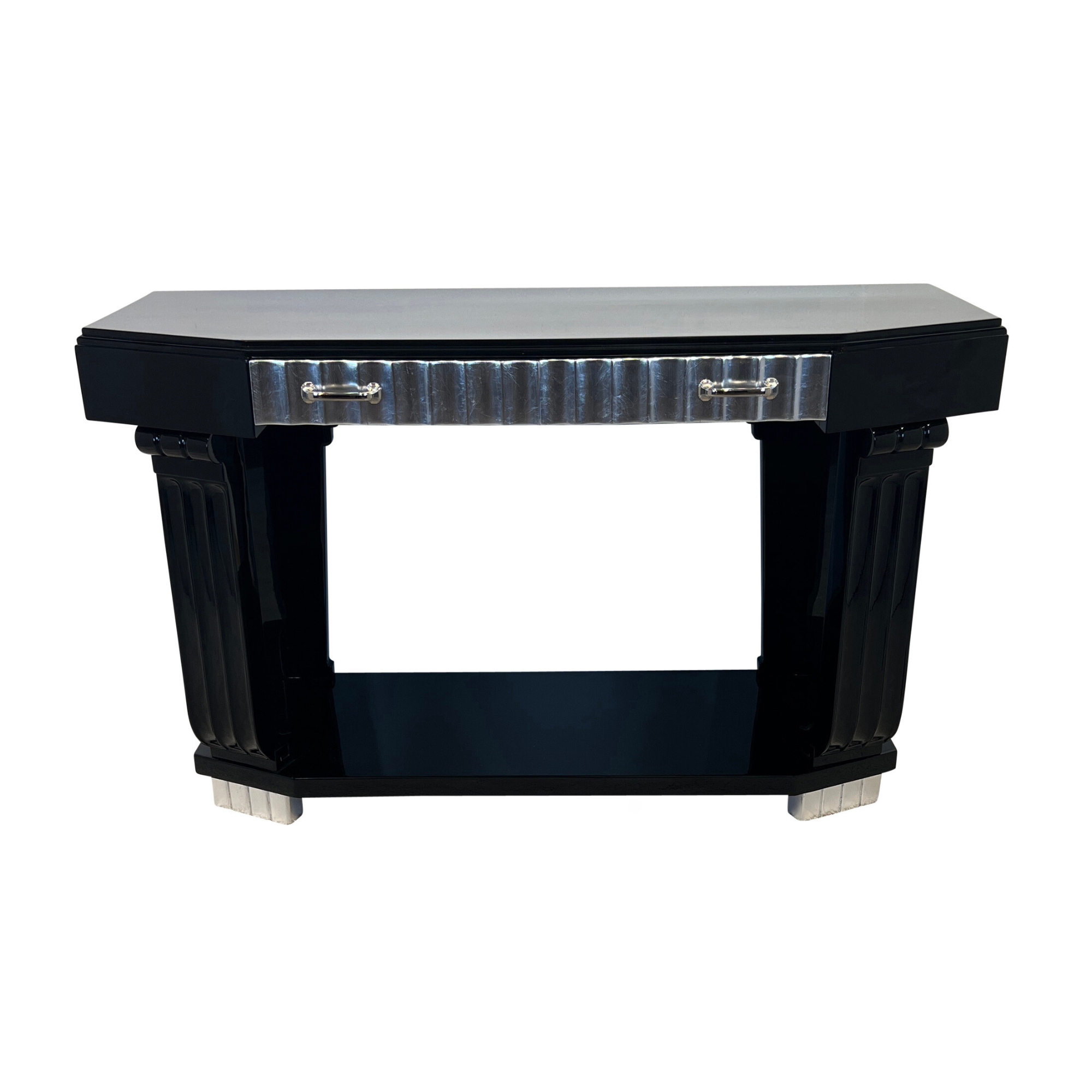 AD-KL-441 Art Deco Konsole, Schwarzlack und Blattsilber, Frankreich um 1930