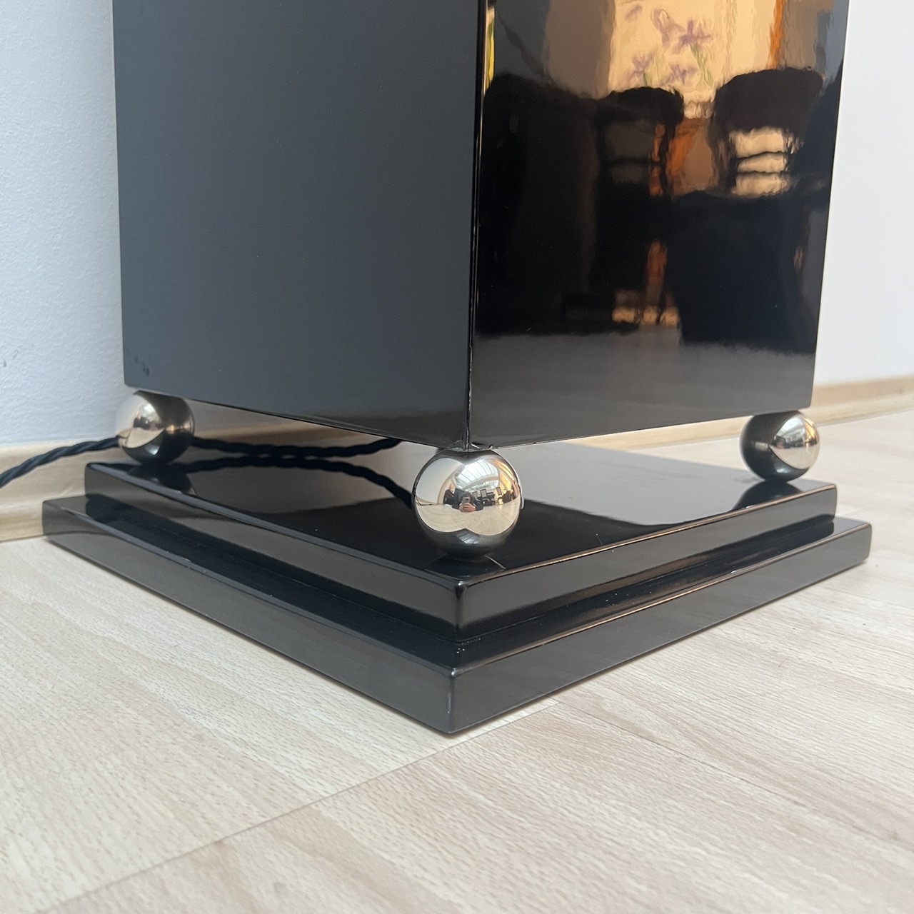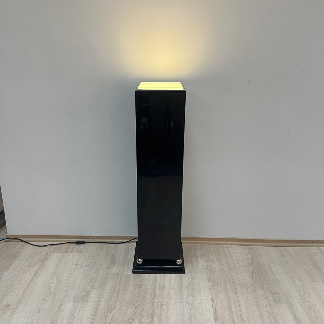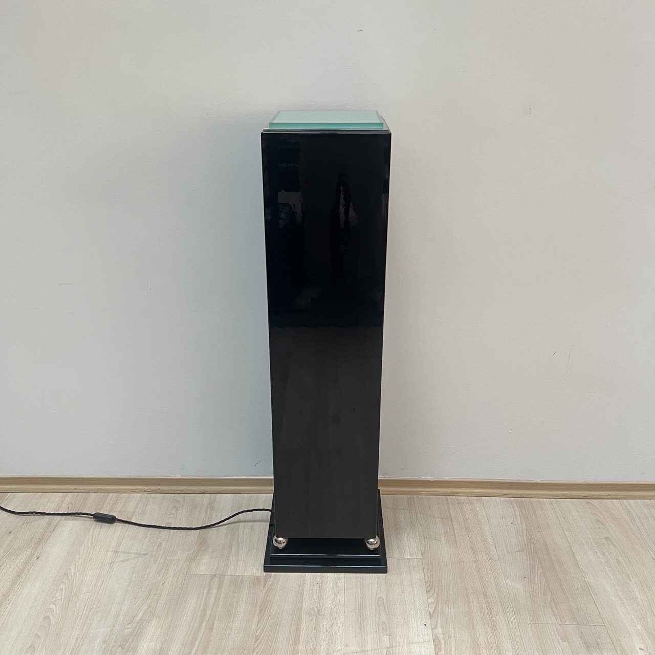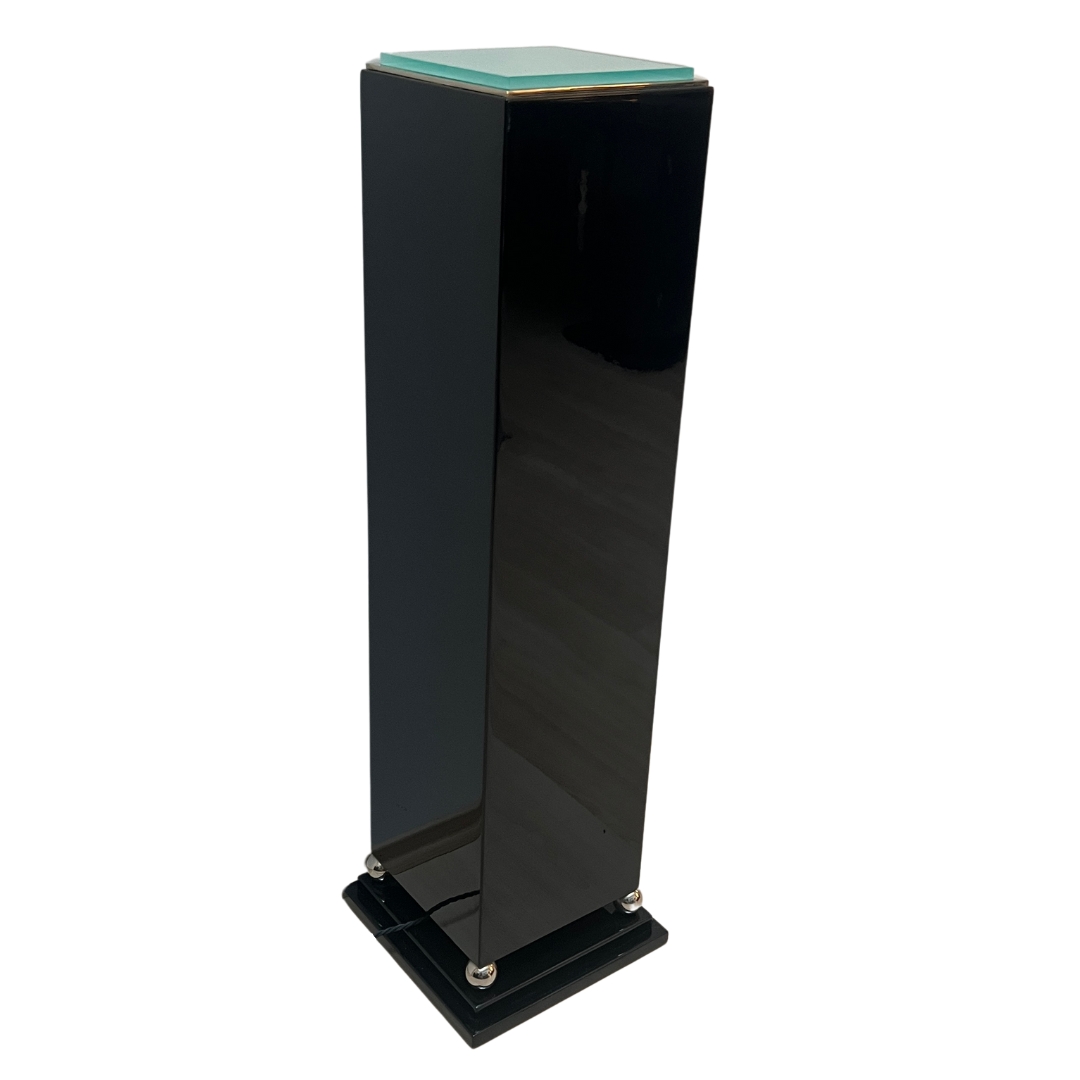 AD-KL-453 Art Deco Stil Säule, Schwarzlack, Chrom, Glas, Beleuchtung