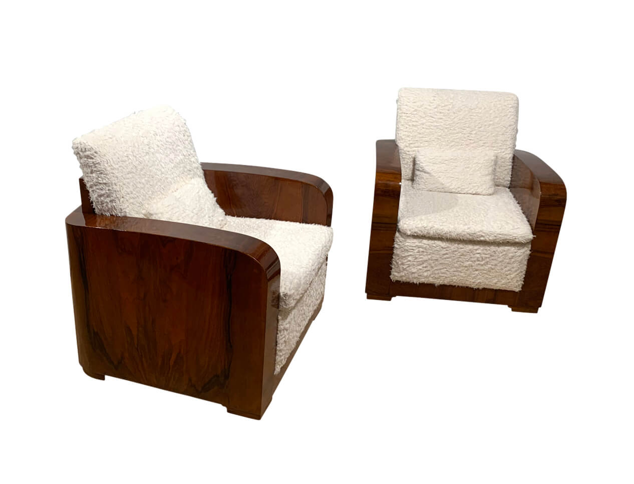 • Neu bezogen mit weißem Schafsfell Bouclestoff
