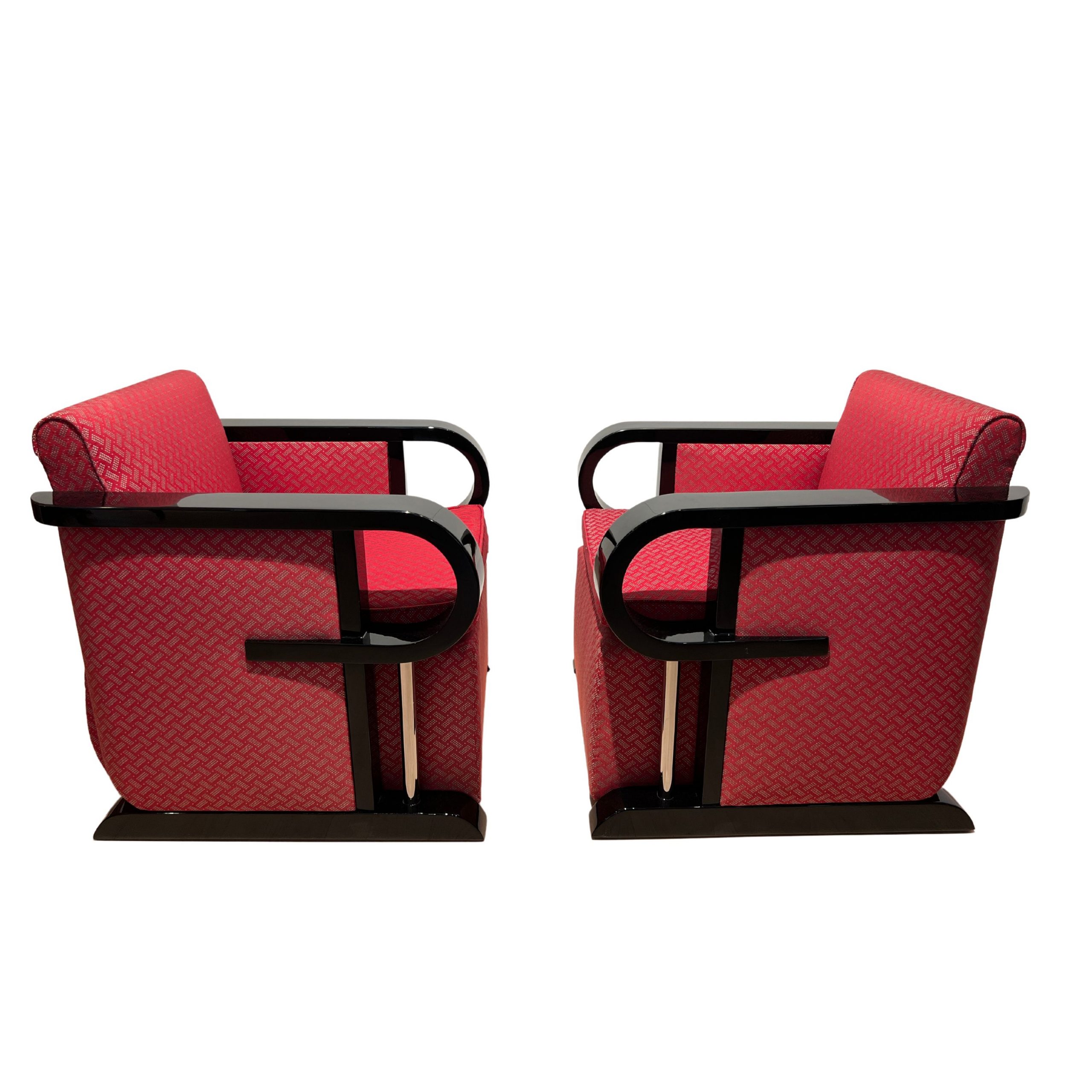 AD-SI-519 Paar Art Deco Club Sessel, Klavierlack, Frankreich um 1930