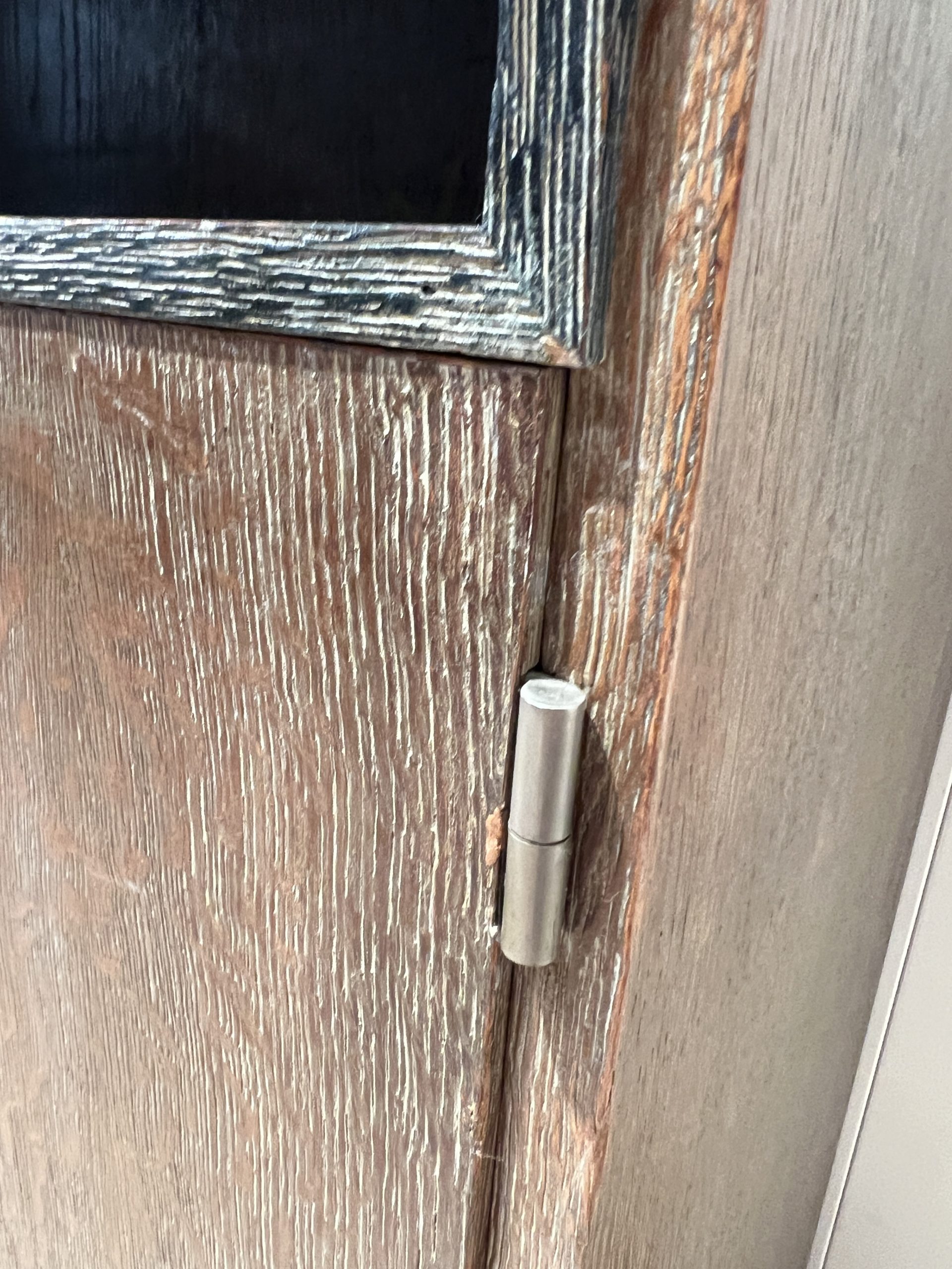 - Gekalktes Eichenholz, Freifach innen schwarz eingefärbt.