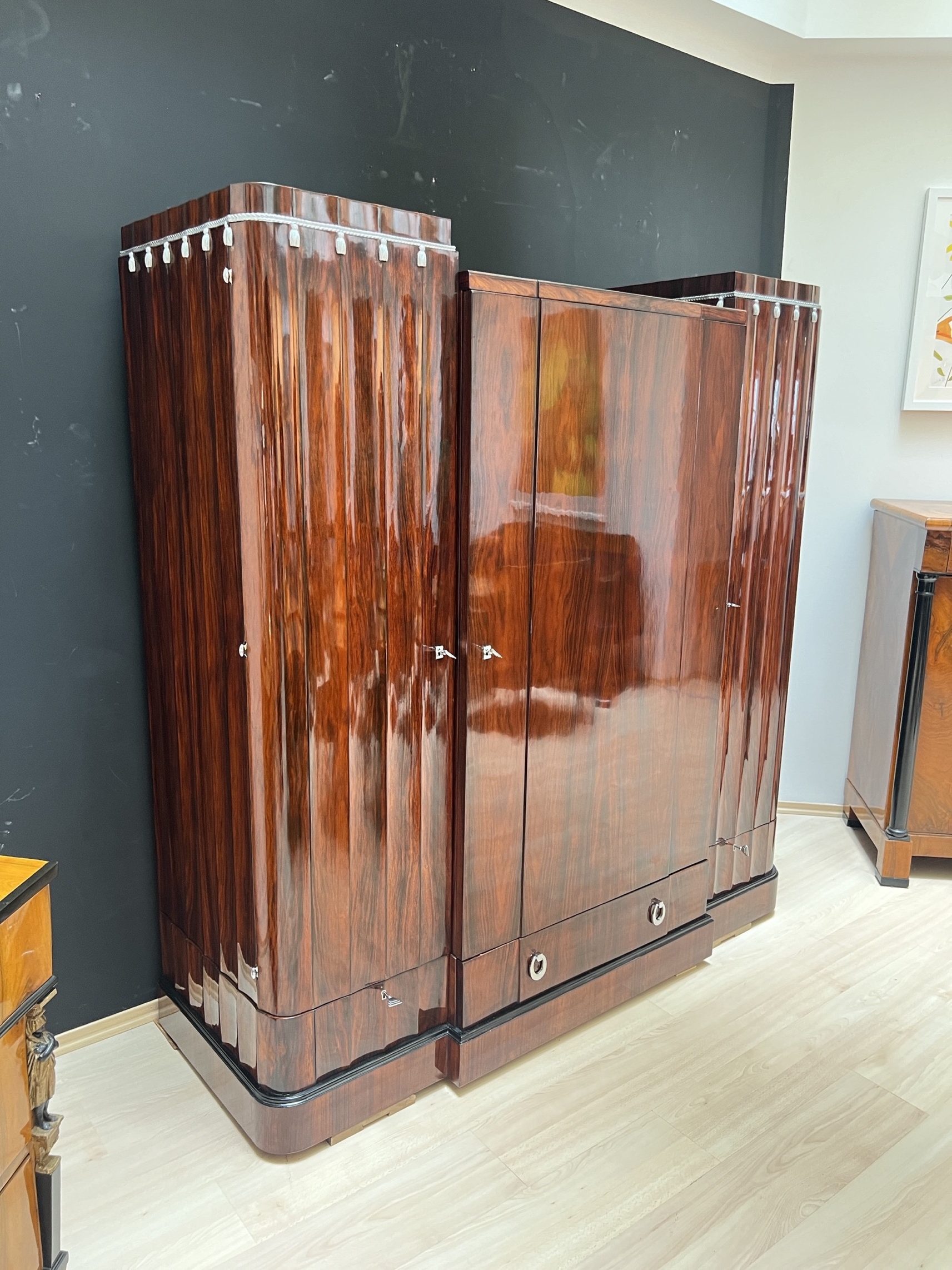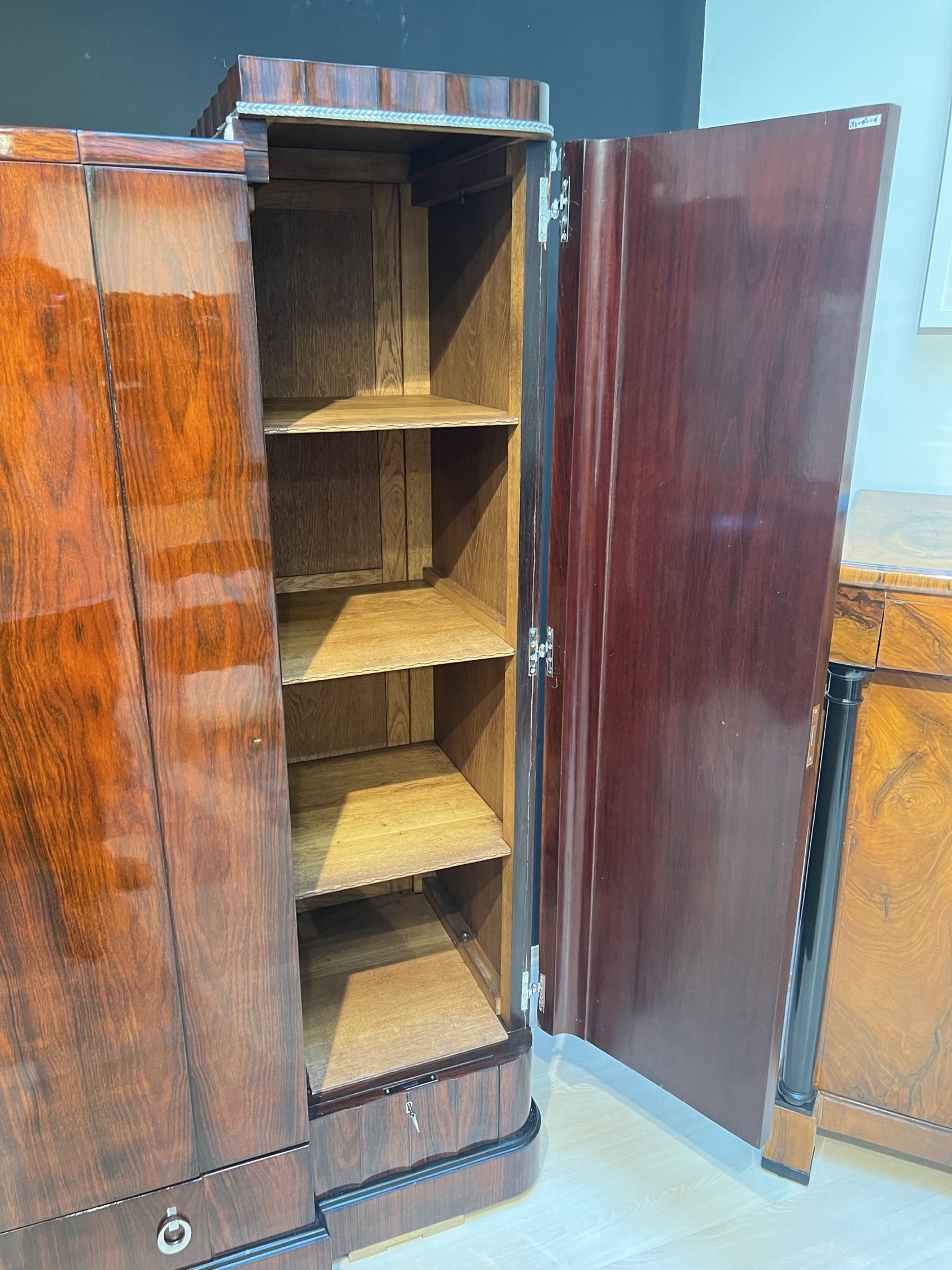 Stattlicher großer Art Deco Kleider Schrank aus Frankreich um 1930.