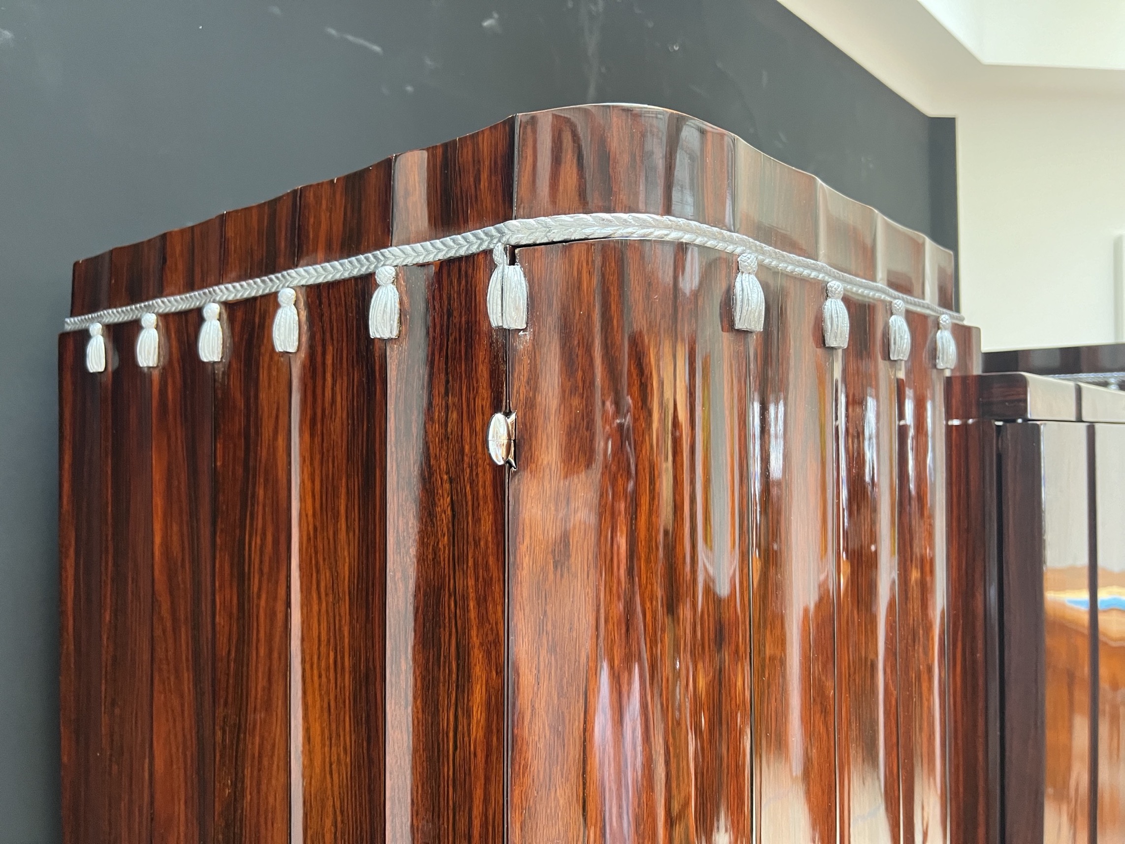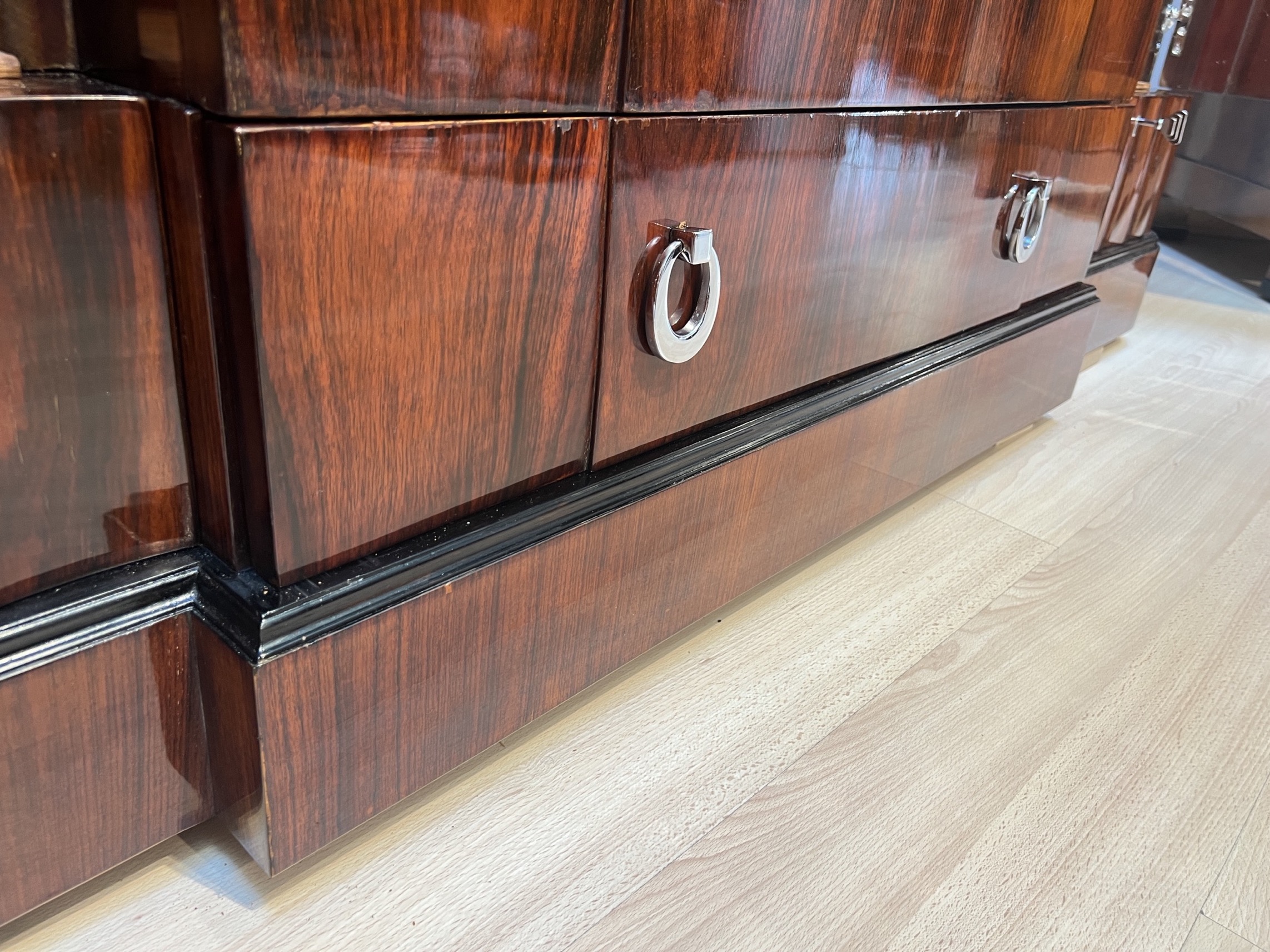- Palisander furniert auf Eiche. Schöne Kannelierungen an den Seiten und Seitentüren.