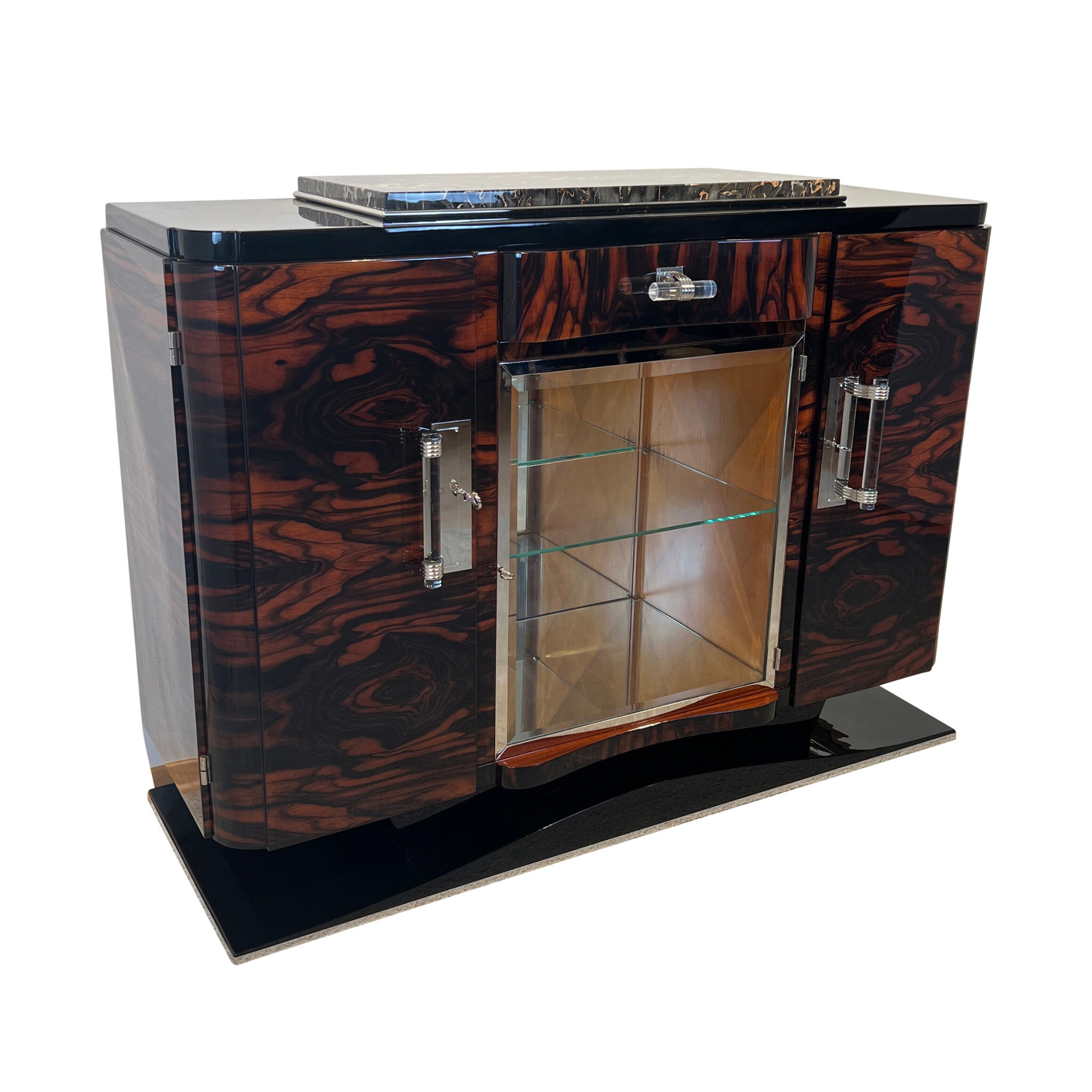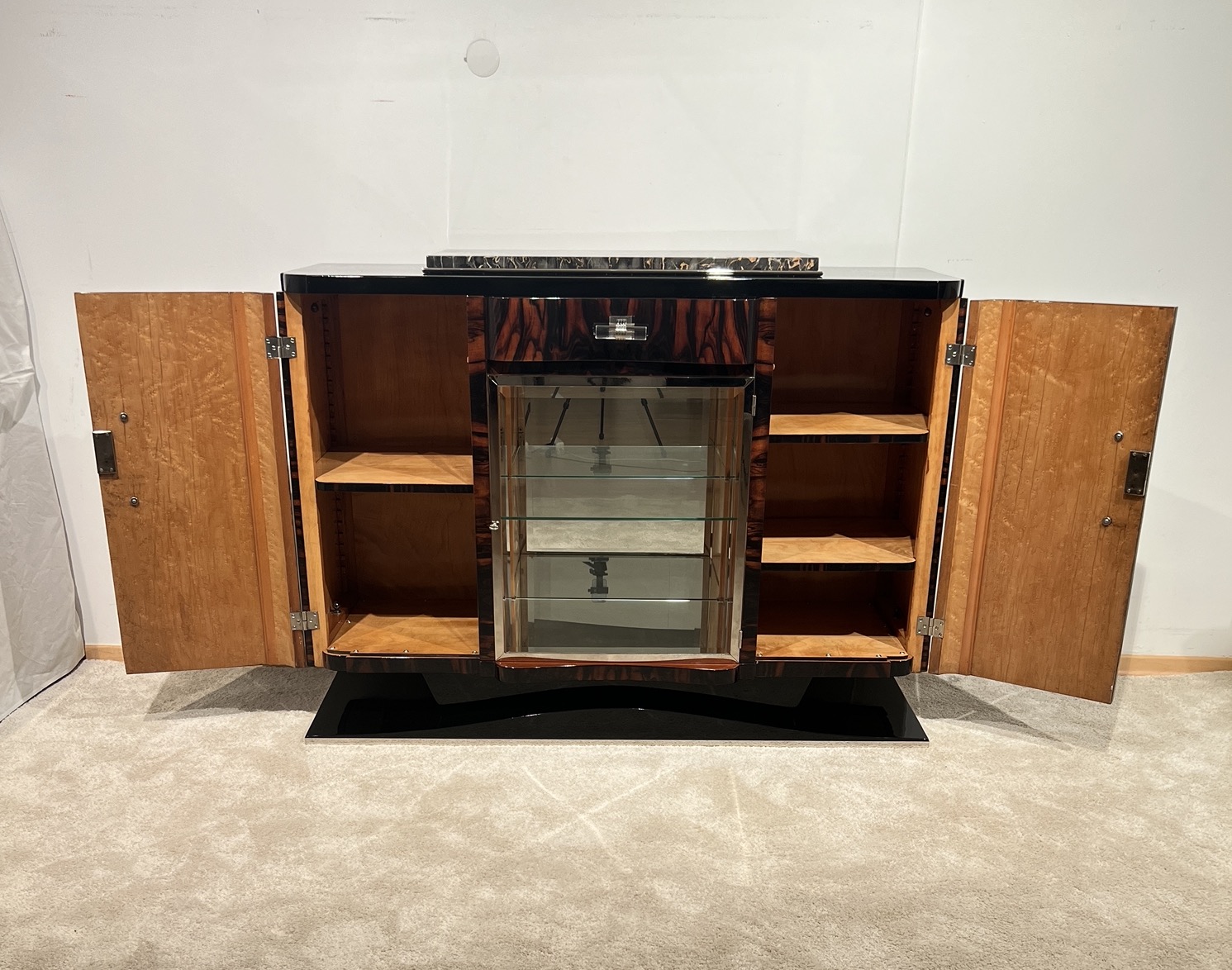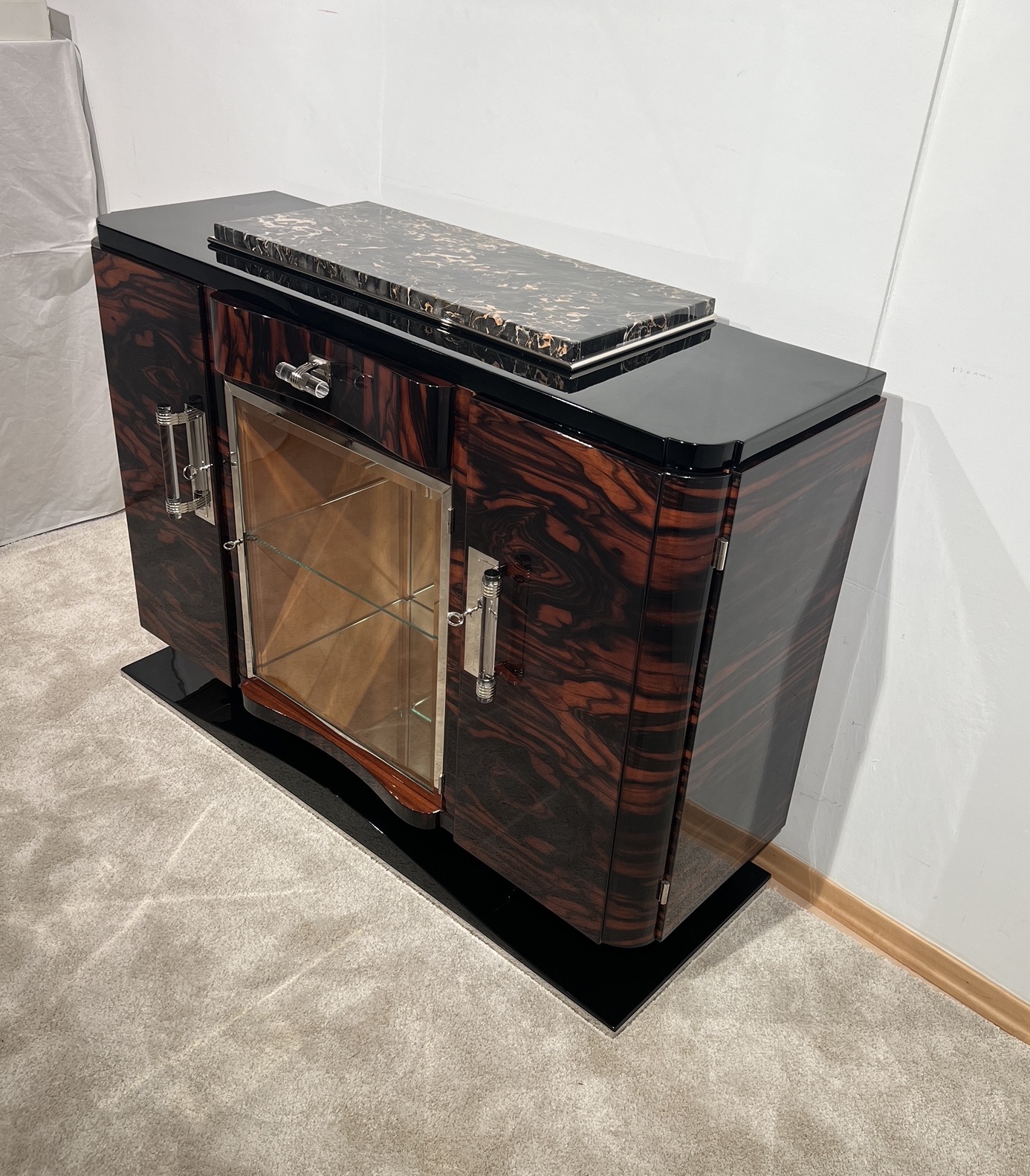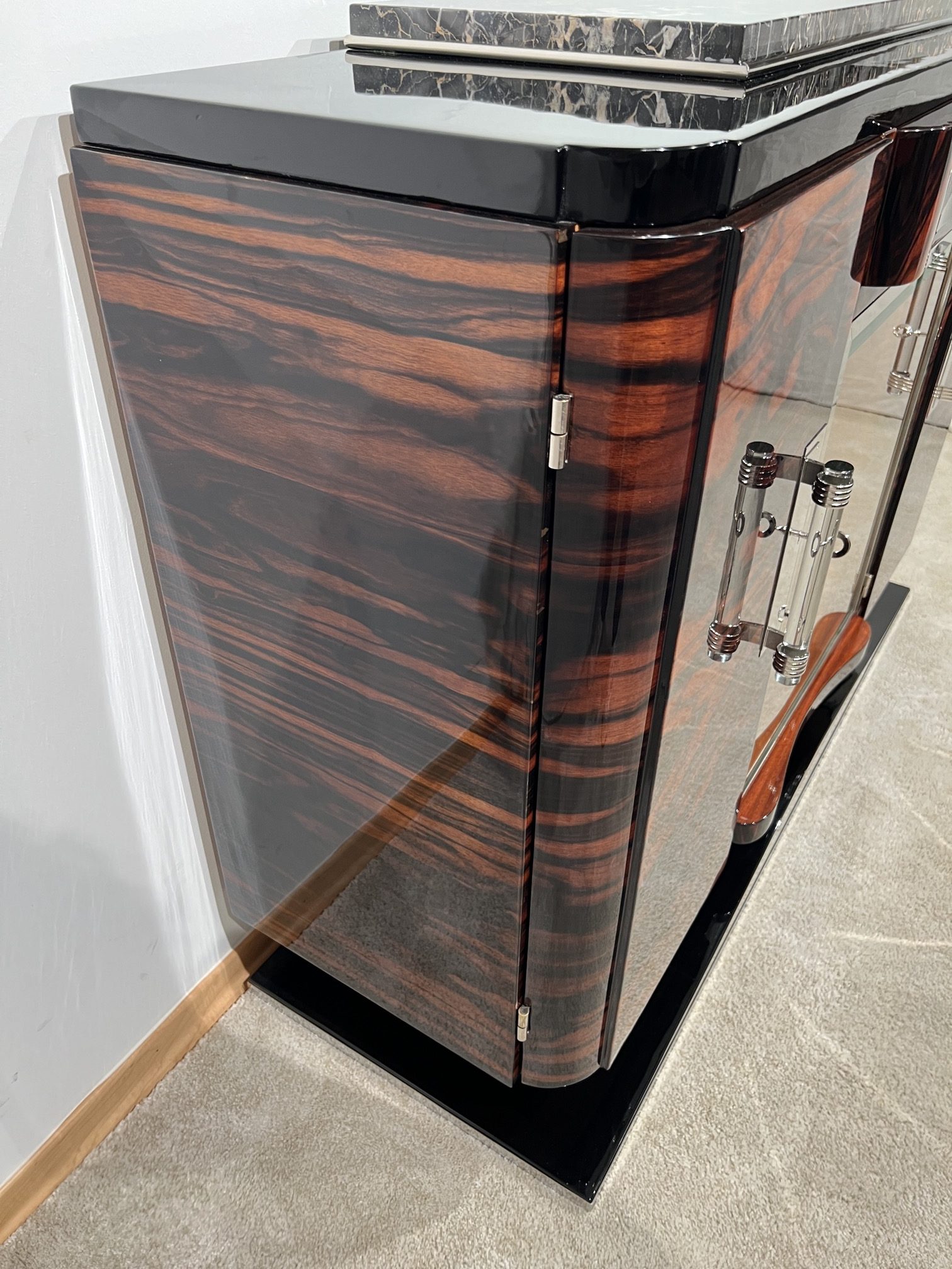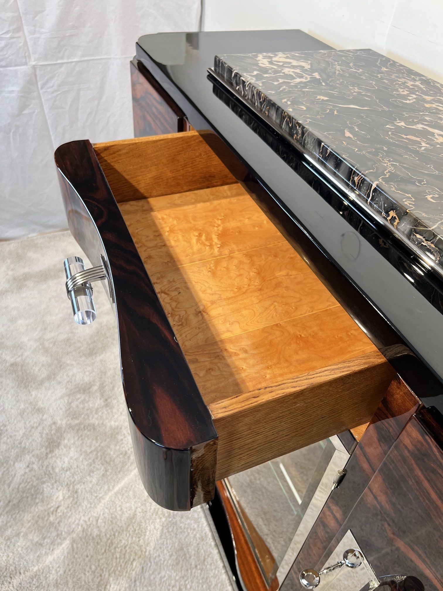 - Thanks to its balanced proportions, the beautifully grained Macassar ebony veneer and the high-quality workmanship, this sideboard is an exceptional piece of French Art Deco furniture