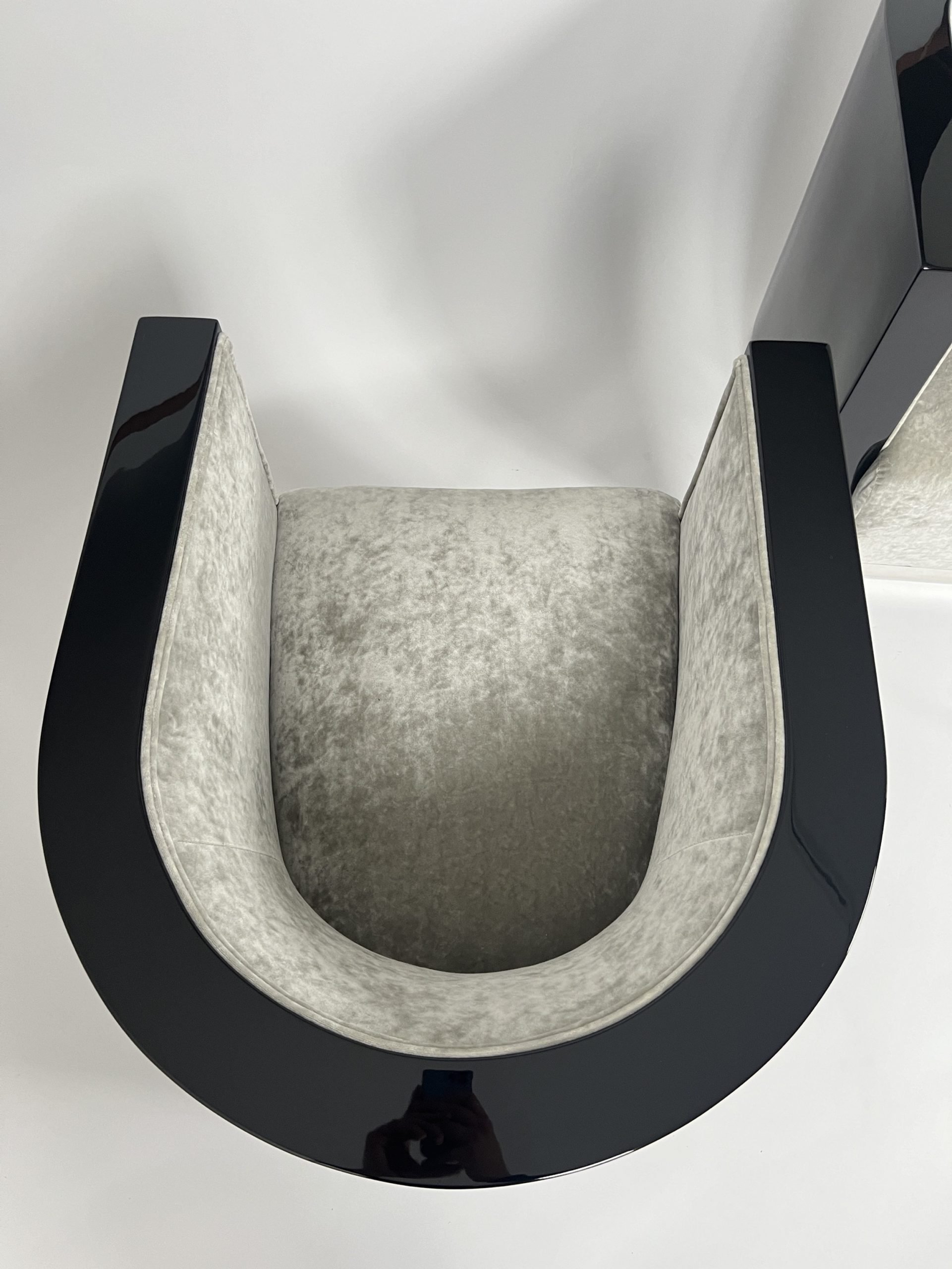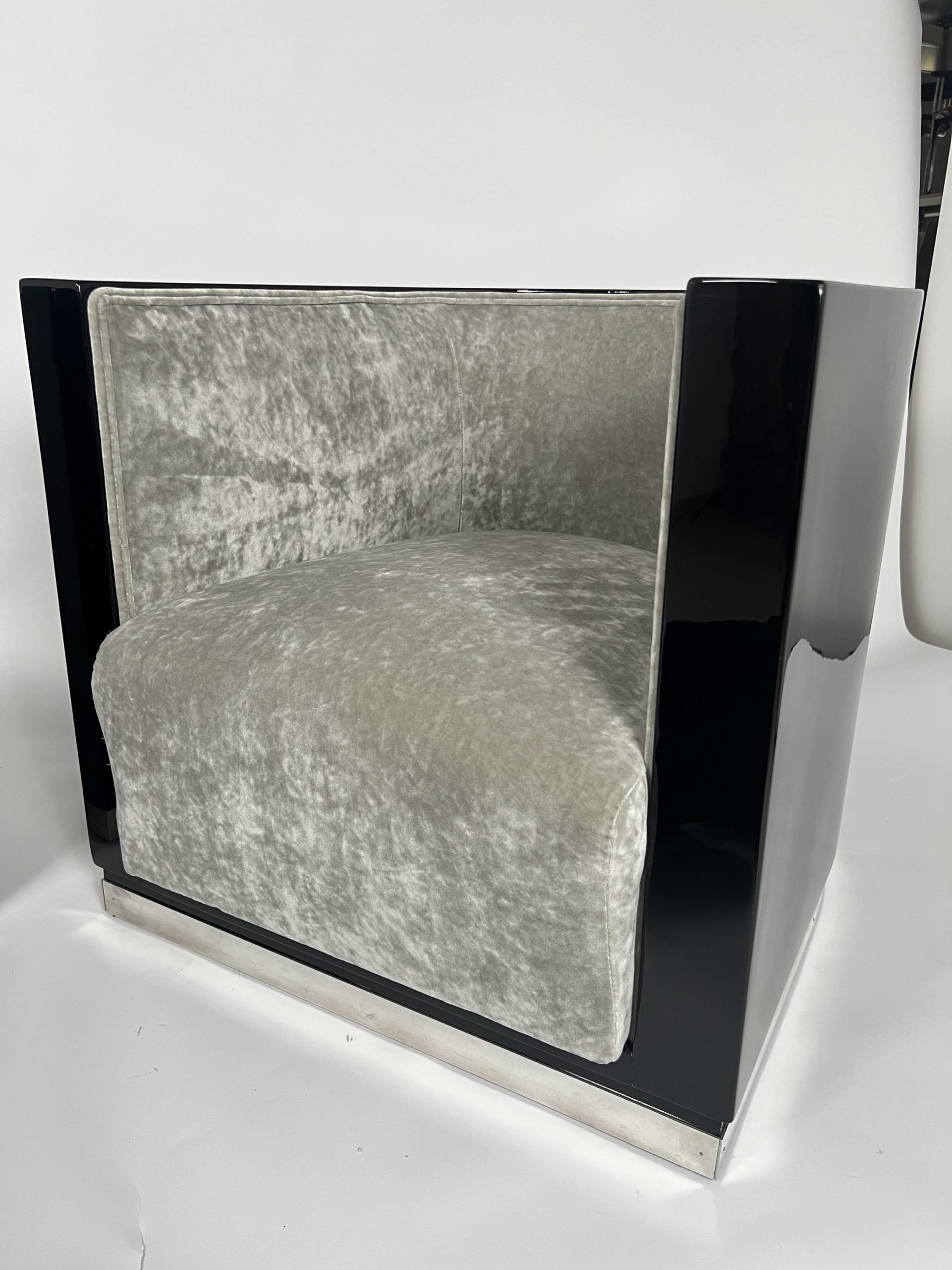AD-SI-538 Pair of Art Deco Club Chairs, Black Piano Lacquer, Grey Velvet, France circa 1930
