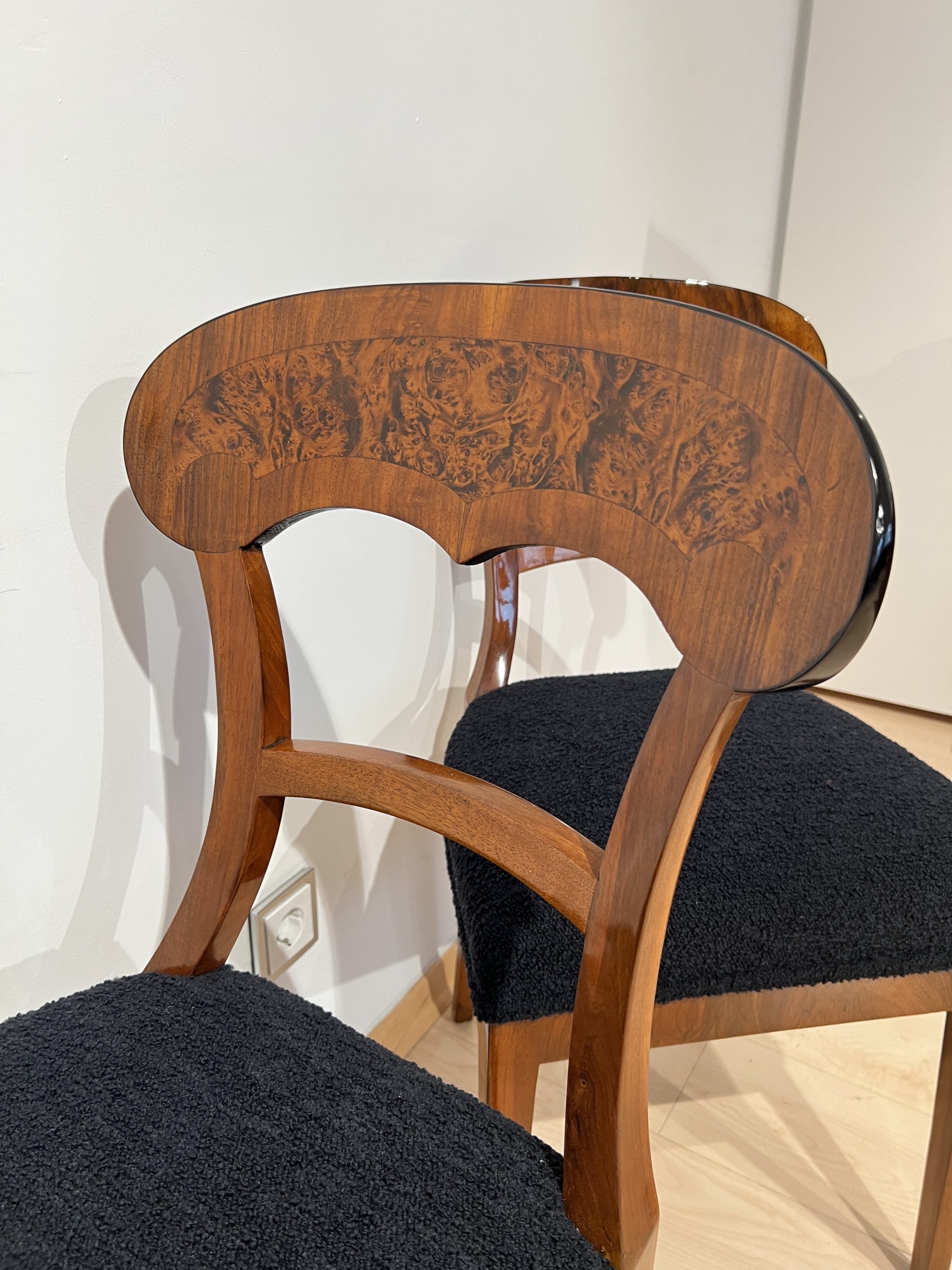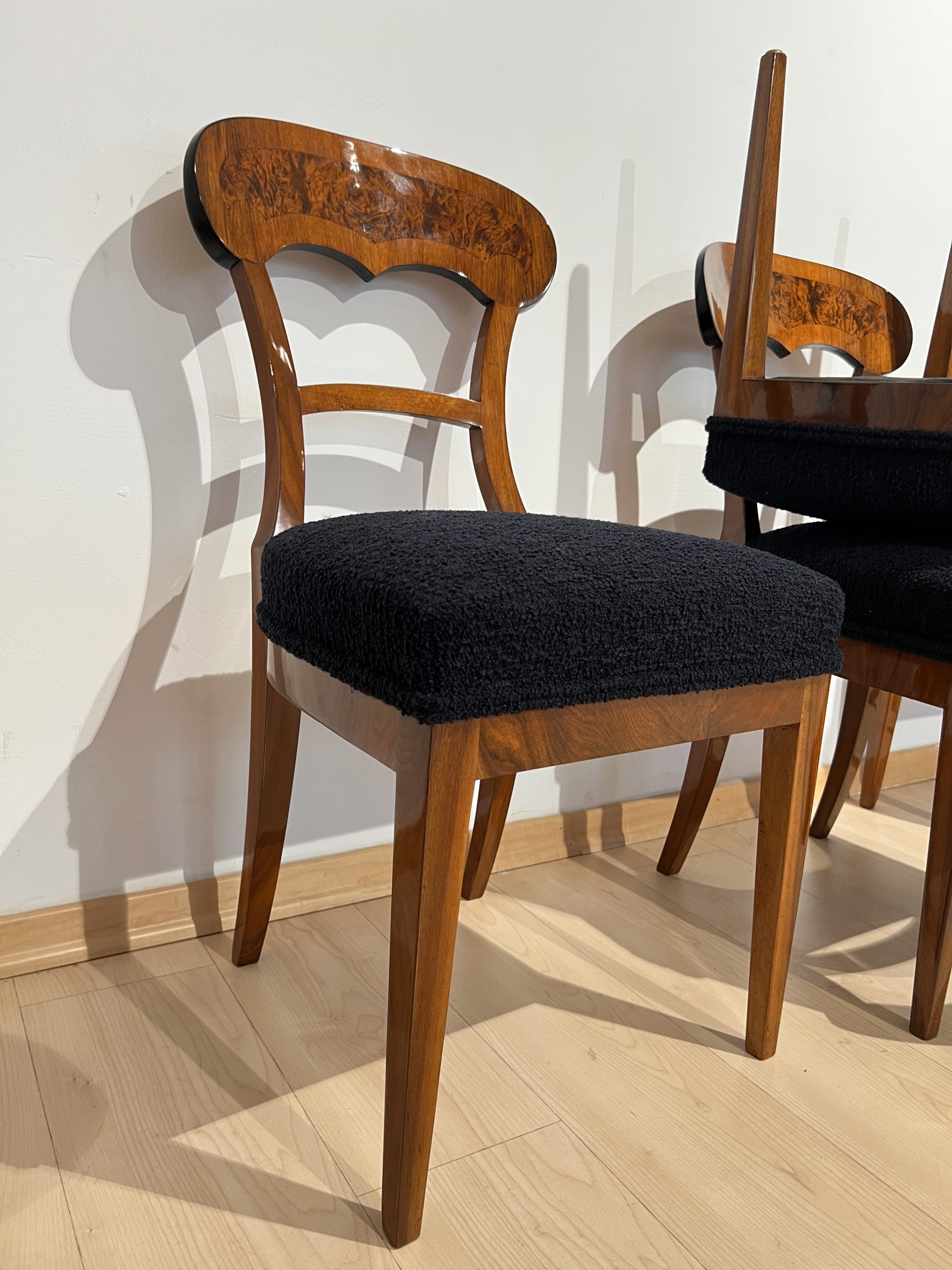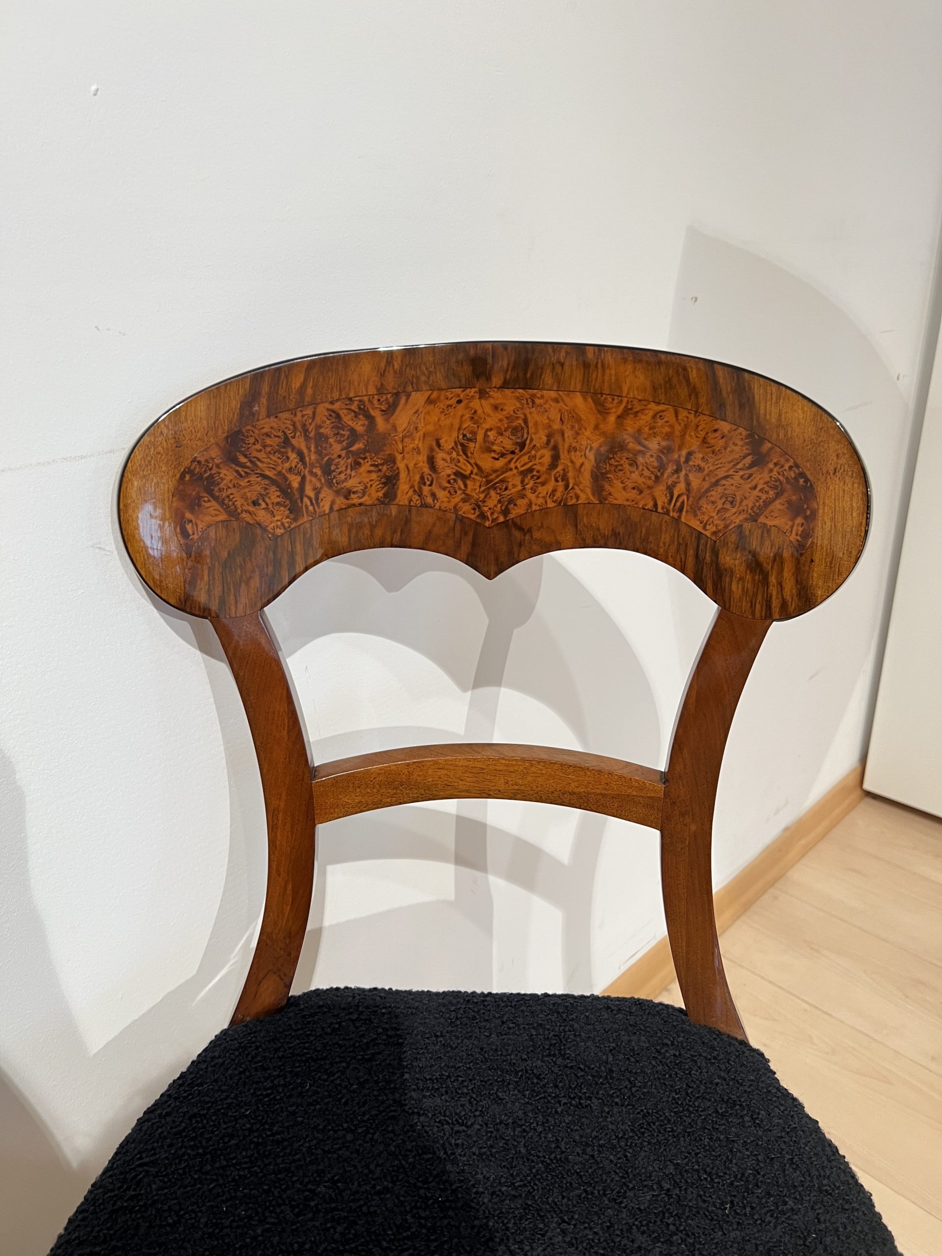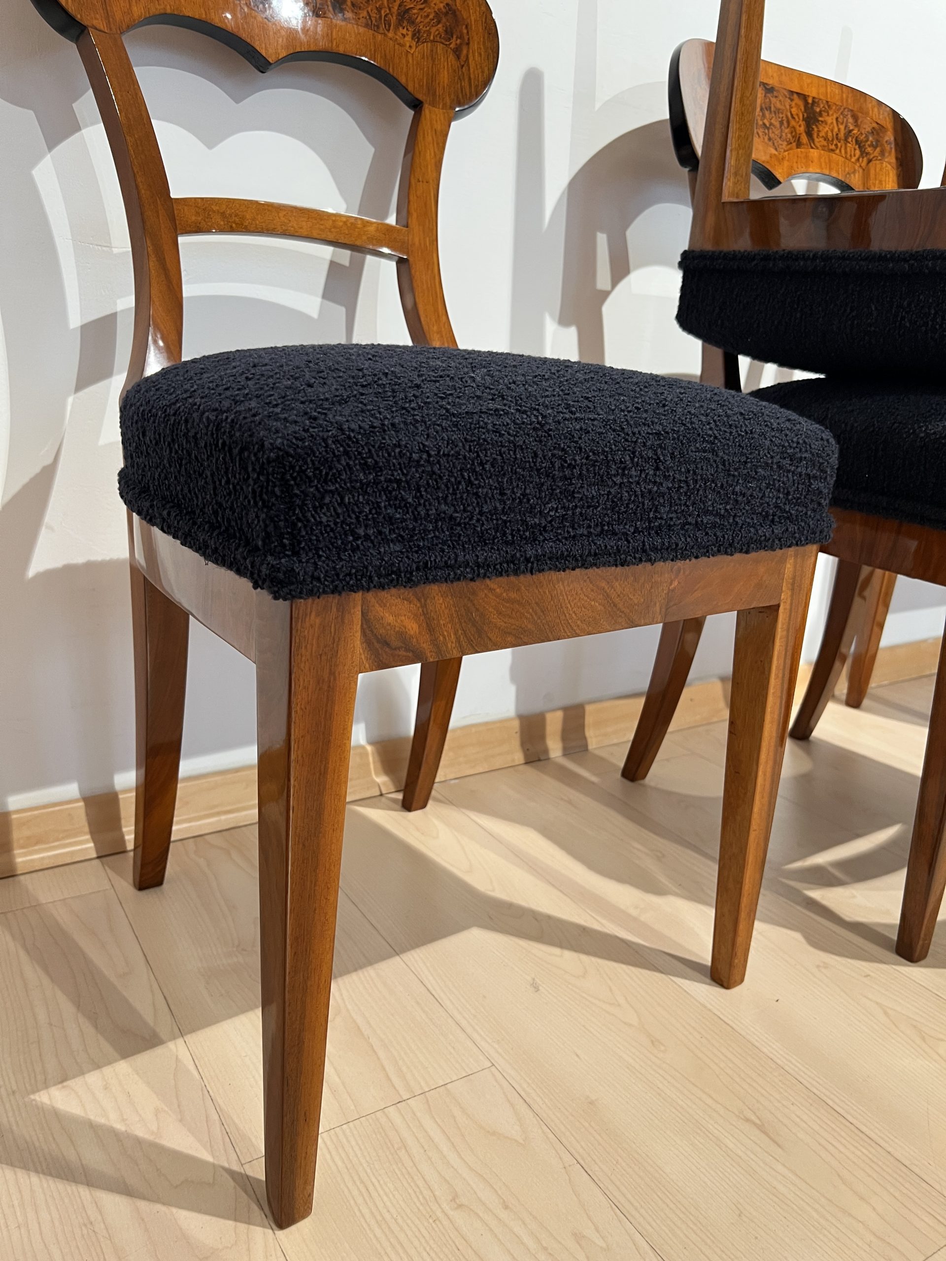 Beautiful set of six neoclassical Biedermeier shovel chairs (backrest in form of a shovel) from South Germany around 1840/50.