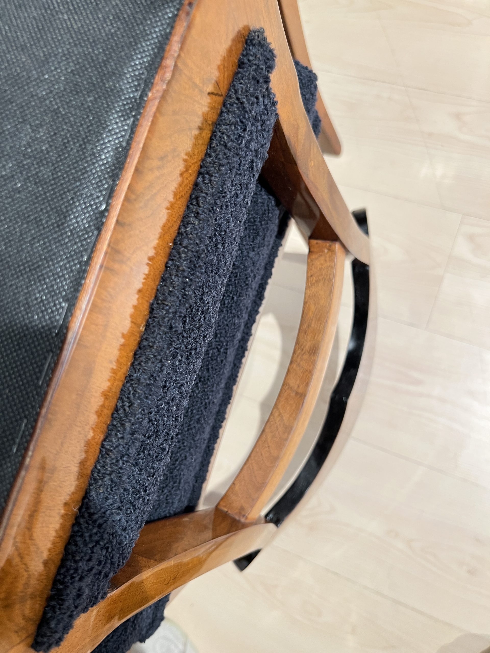 • Upholstered in black Boucle fabric.