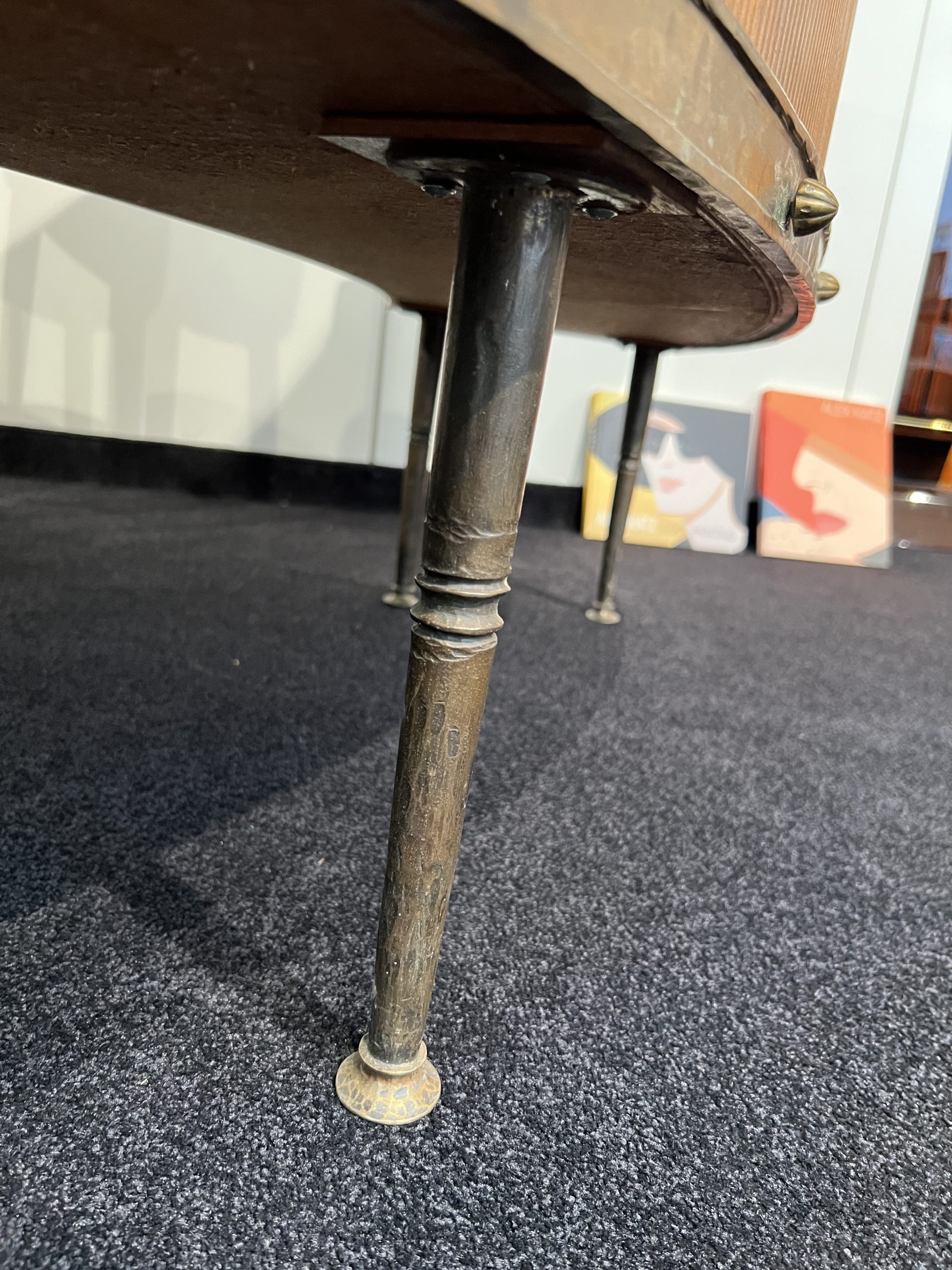 - A thick (0.7 cm) and high (3.7 cm) brass strip with shell-shaped attachments and a beautiful patina runs around the top and bottom.