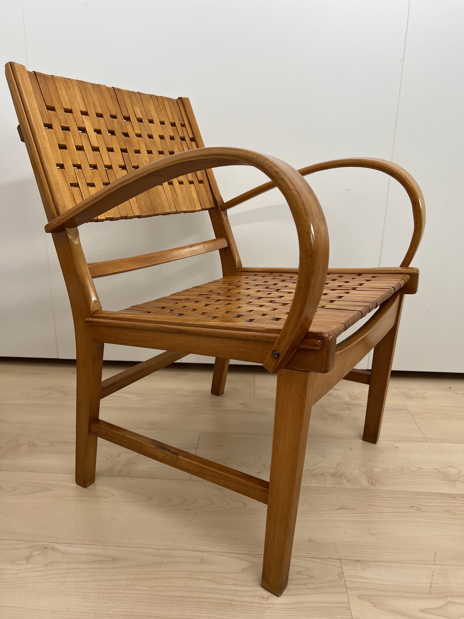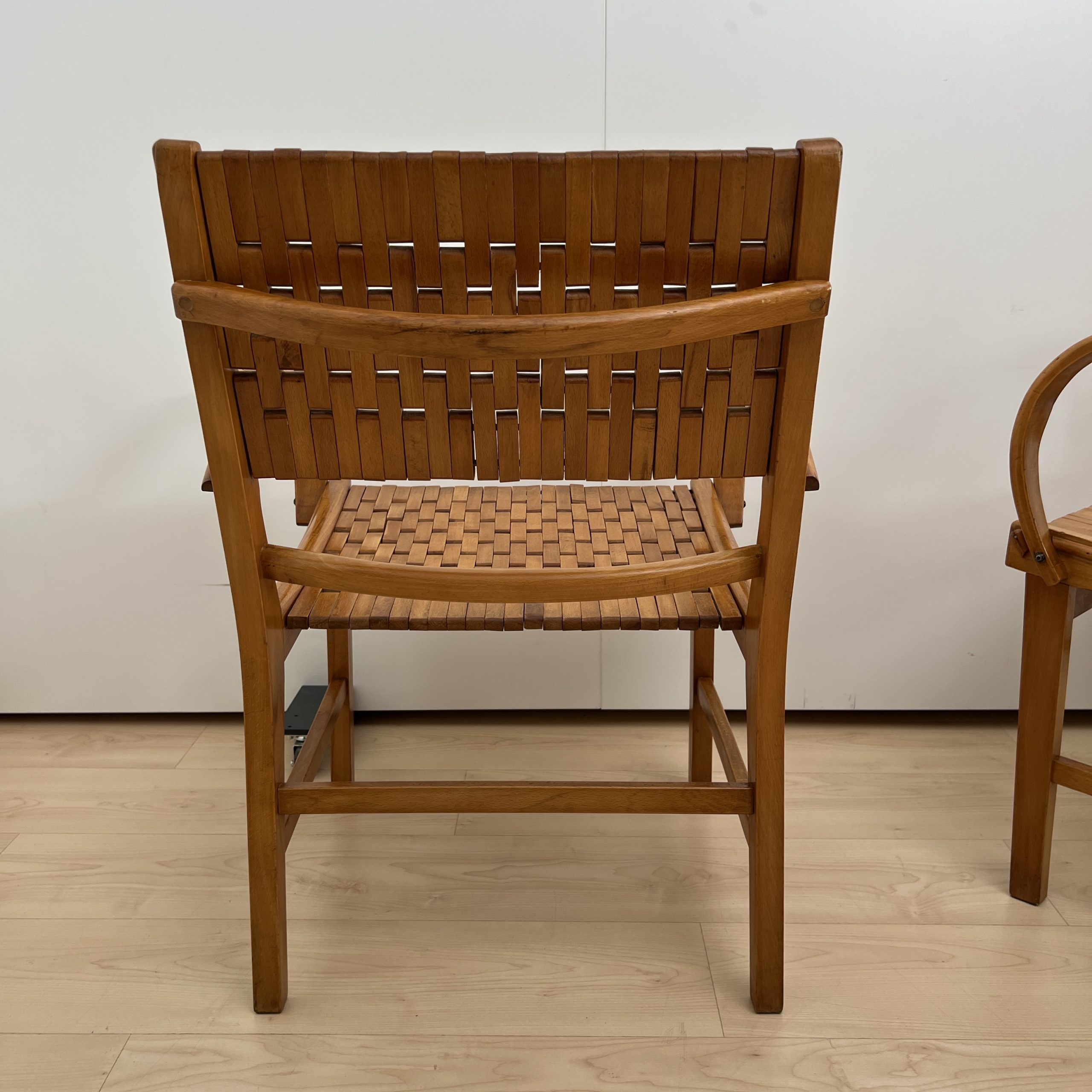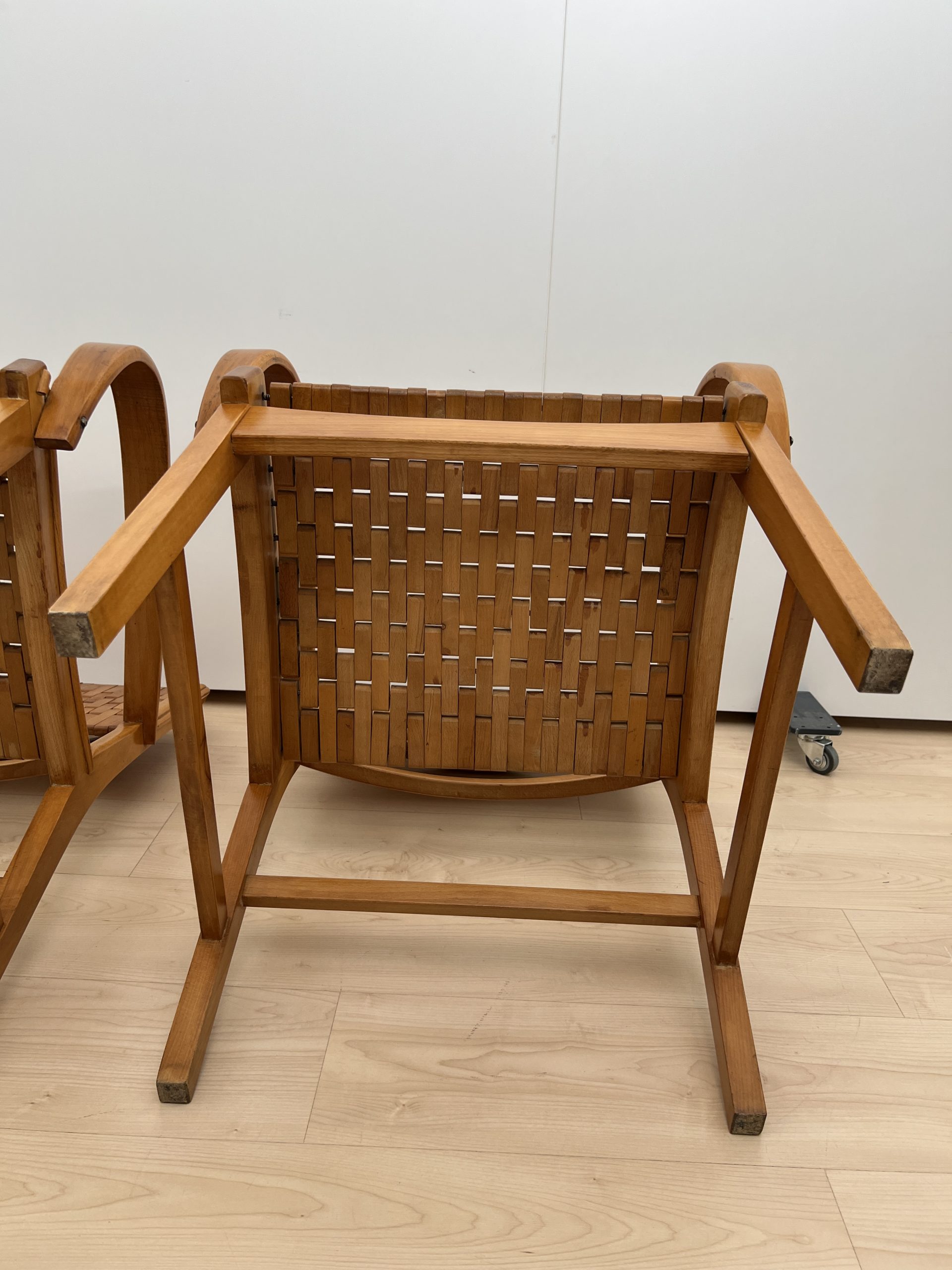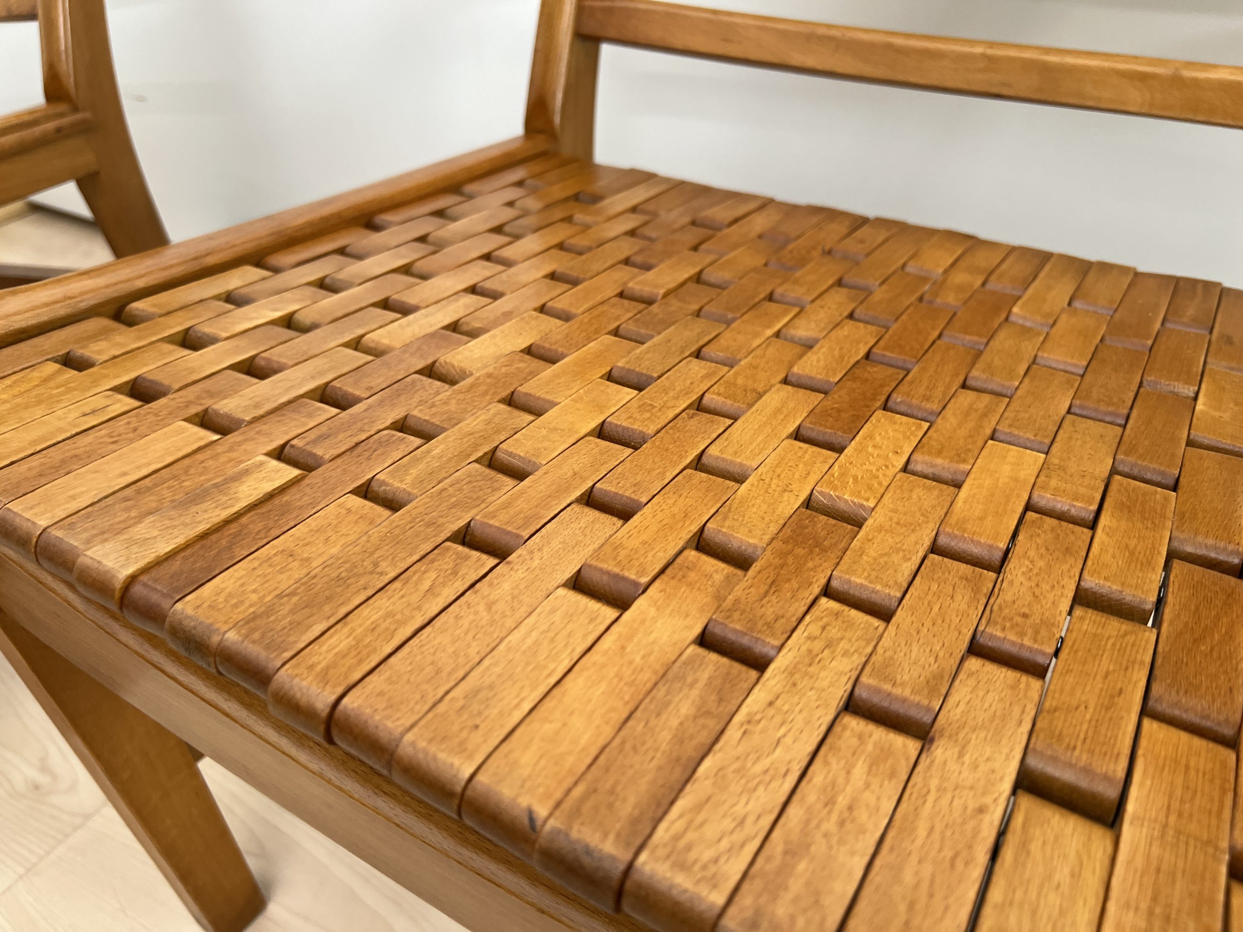 DE-SI-519 Paar ‚Gelenka‘ Armlehnstühle, Buche massiv, Deutschland um 1950