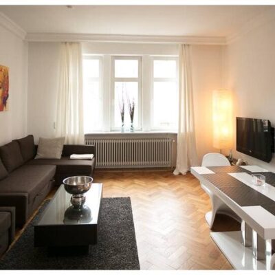 Apartment Palazzo am Dom offers room for 2-6 people in the old town of Regensburg, Germany. With Entrance, two rooms and two bathrooms this renovated modern apartment has hight ceilings, wooden floors and is furnished with a mix of antique and modern design.