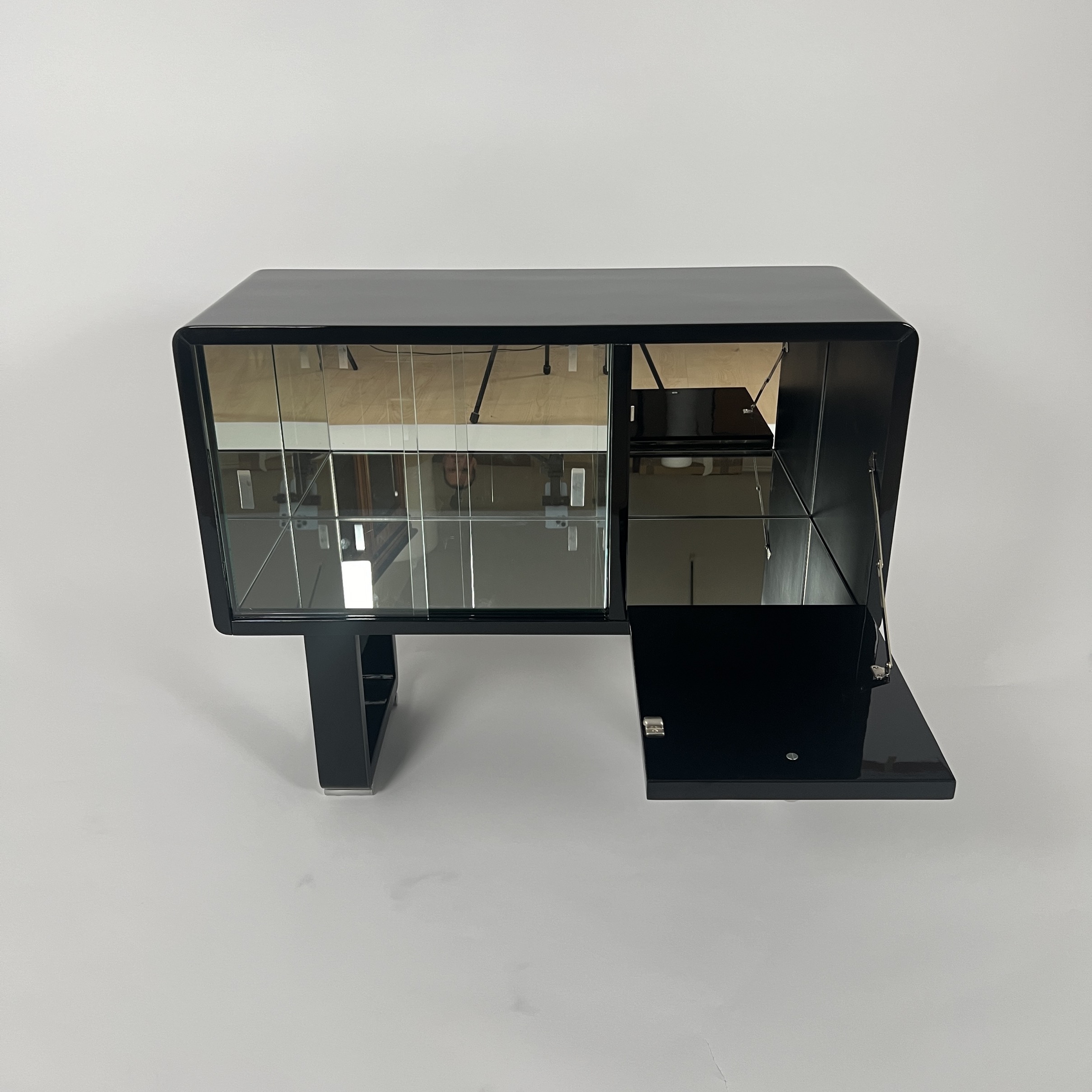 AD-KL-450 Small Art Deco Bar Furniture, Black Lacquer, Mirrorglass, France circa 1930