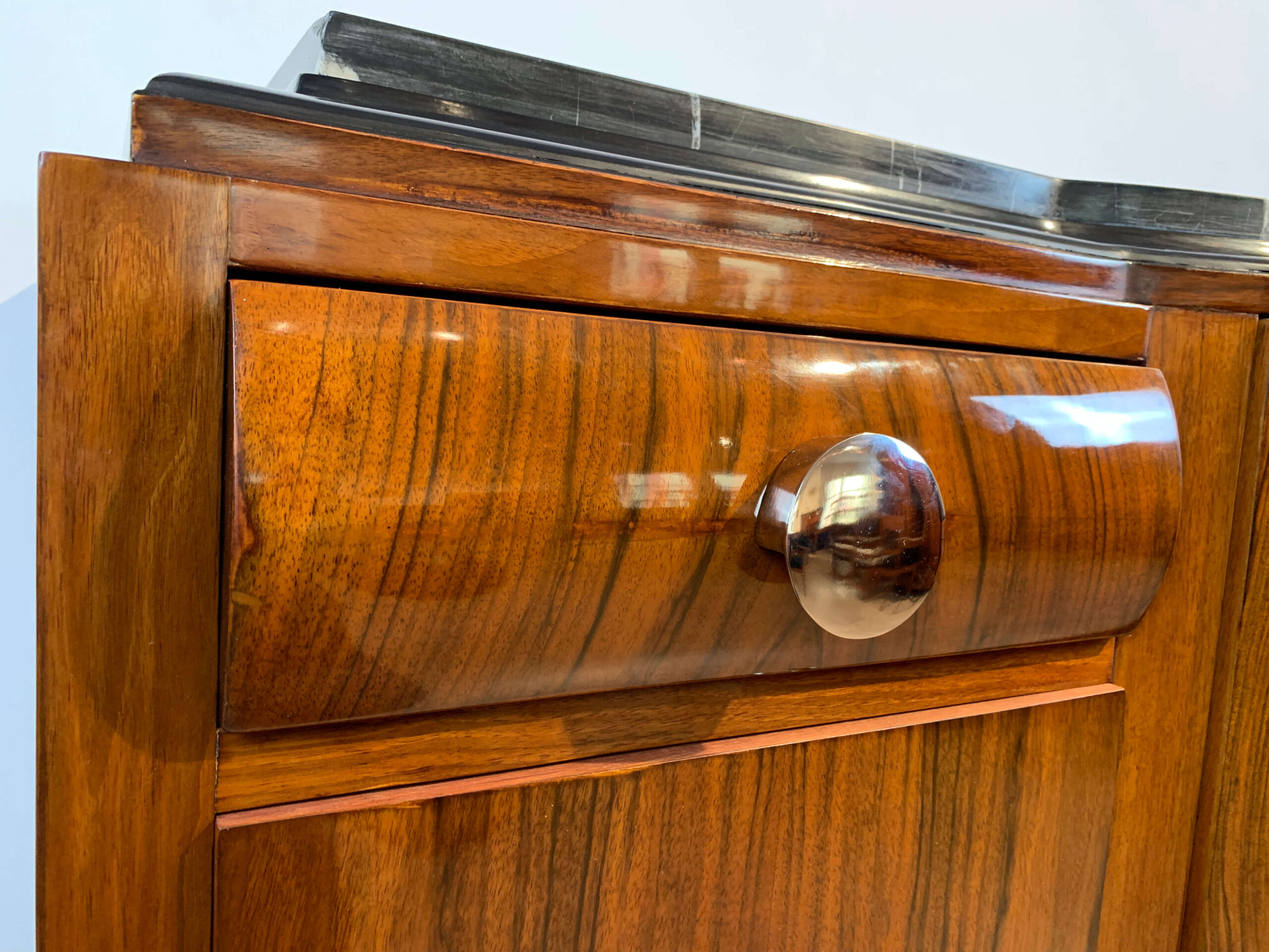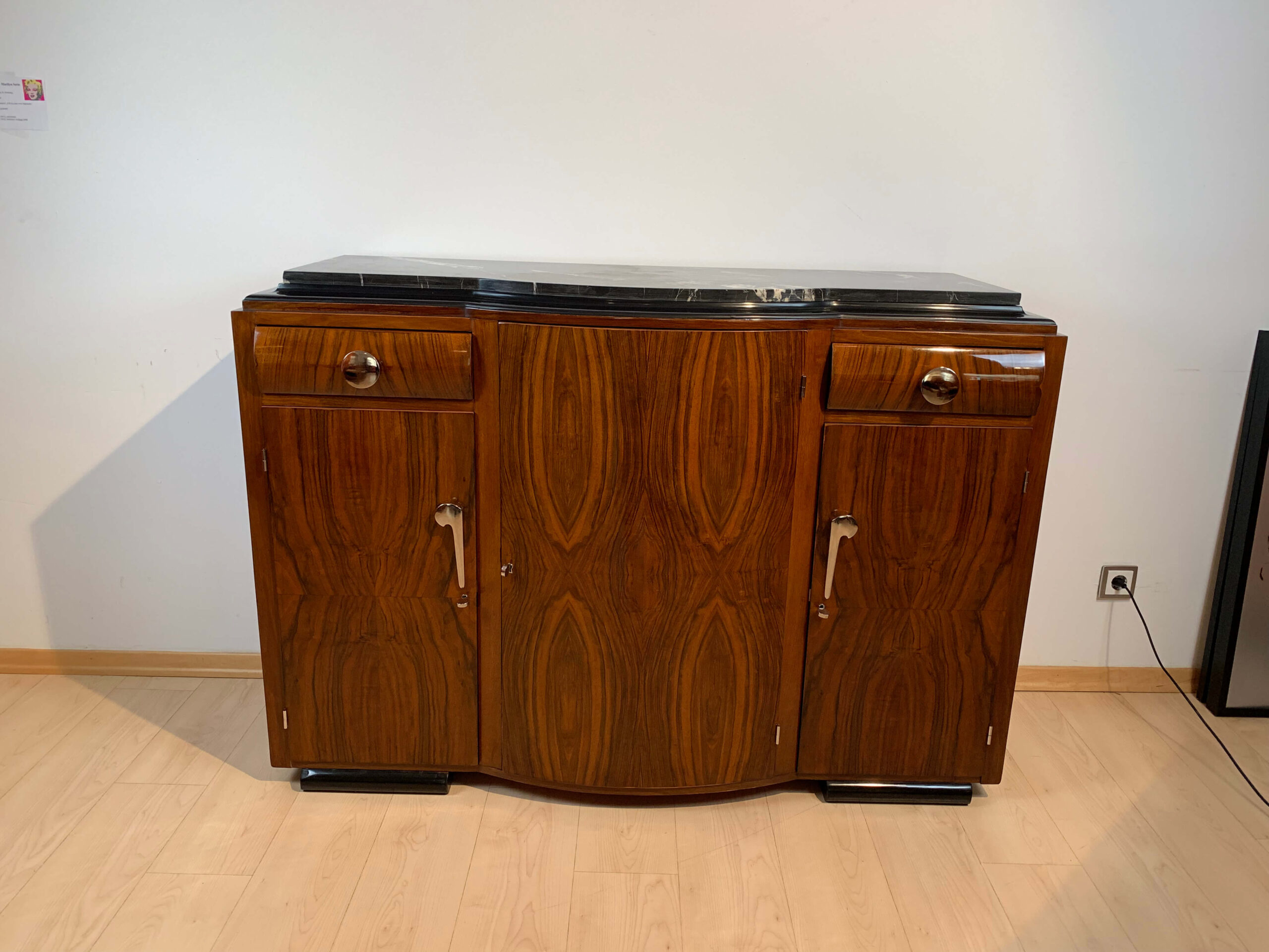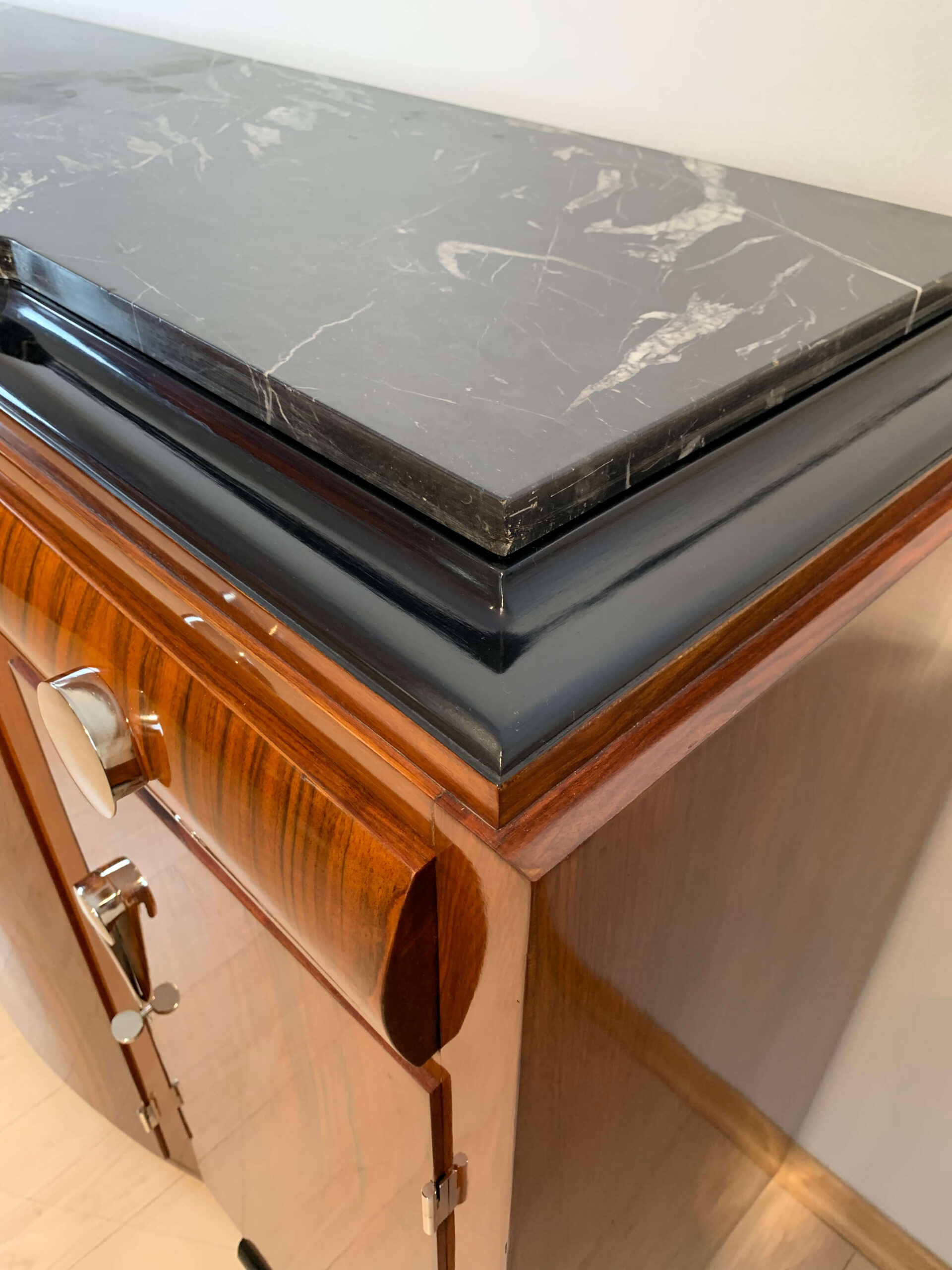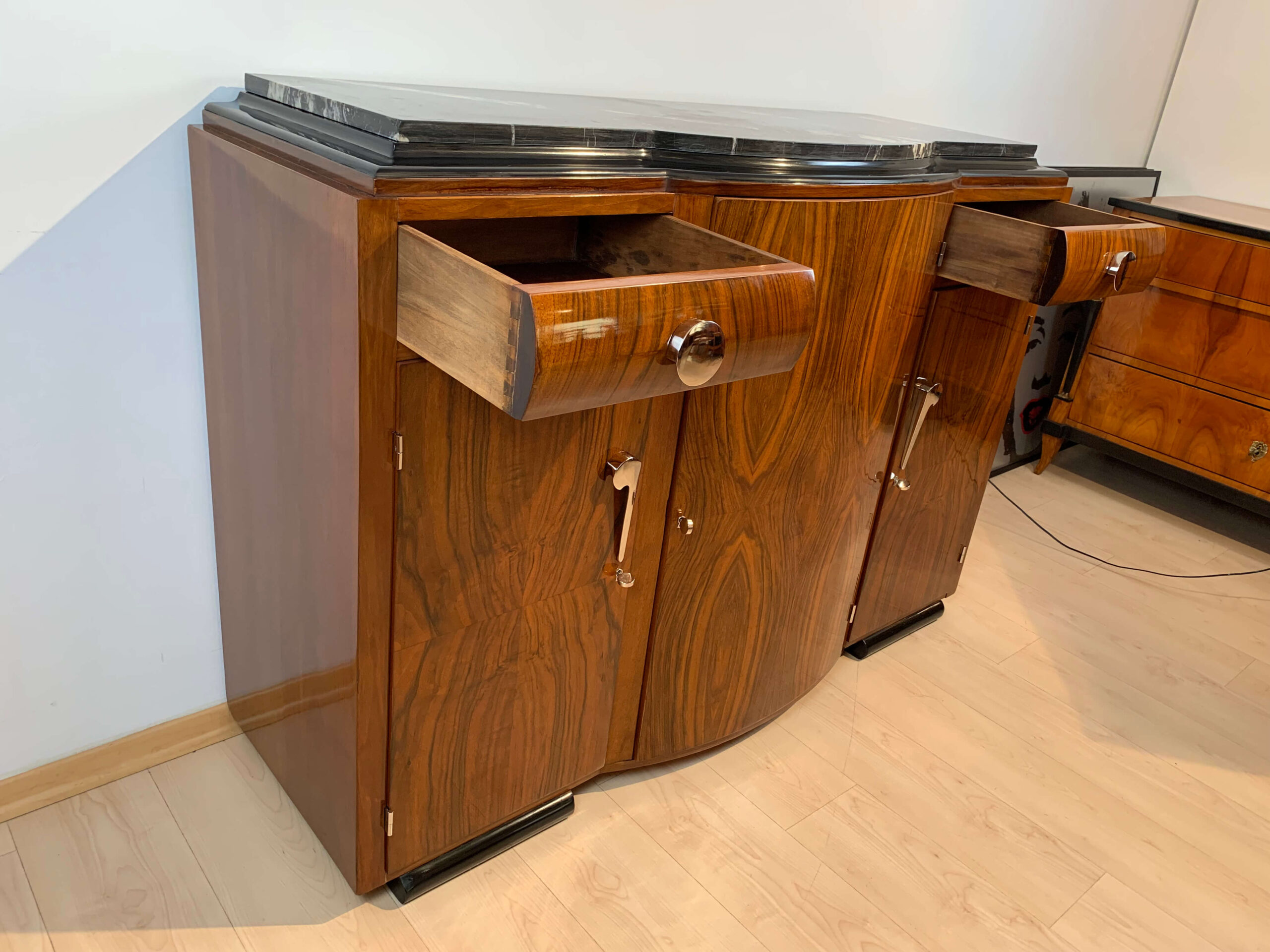 AD-SB-380 Art Deco Sideboard, Walnut Veneer, Nickel, Marble, France circa 1930