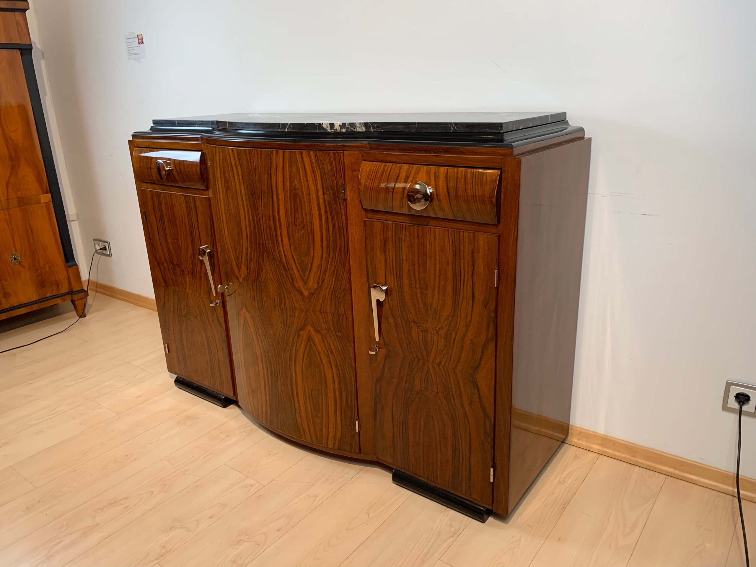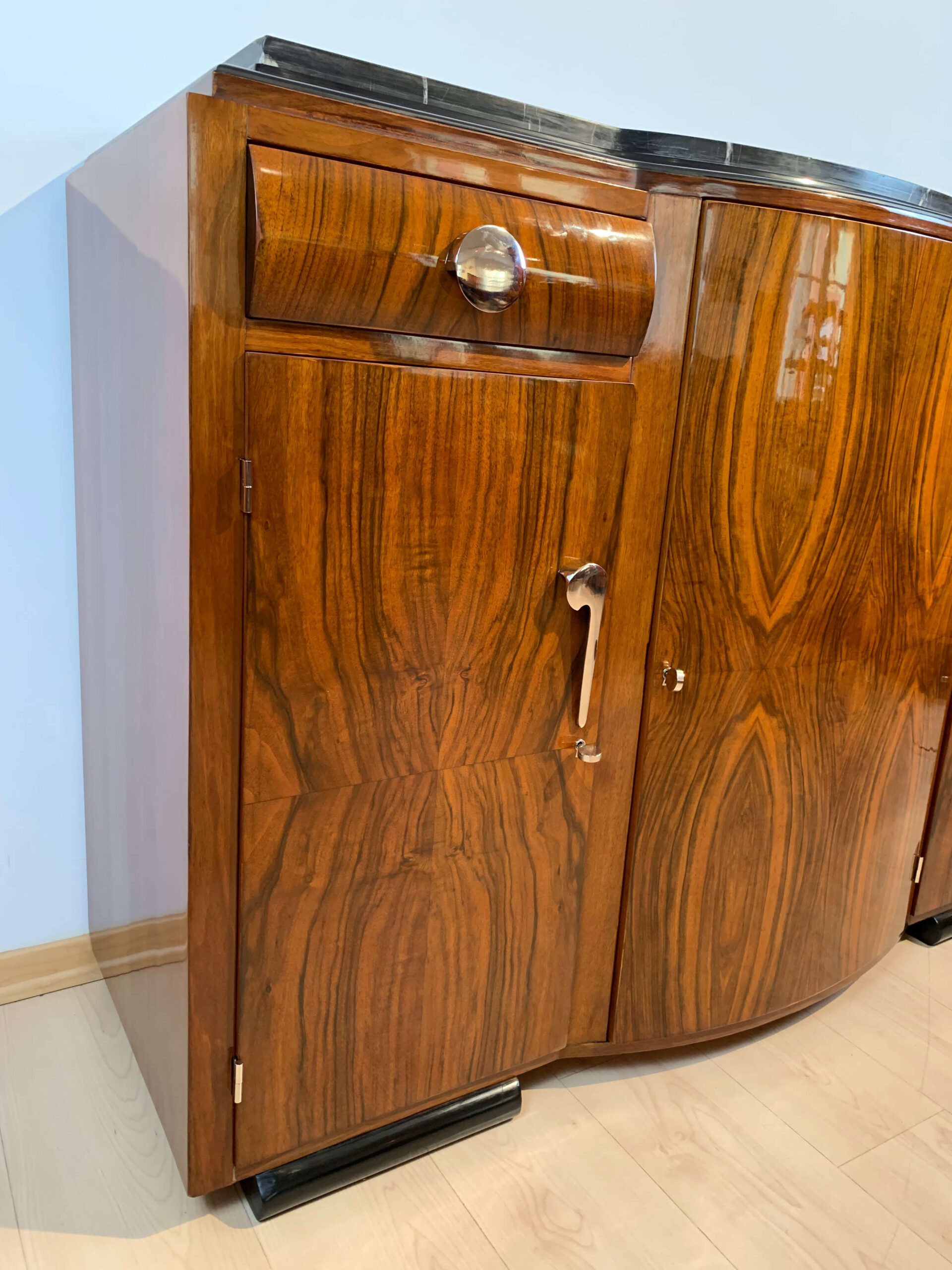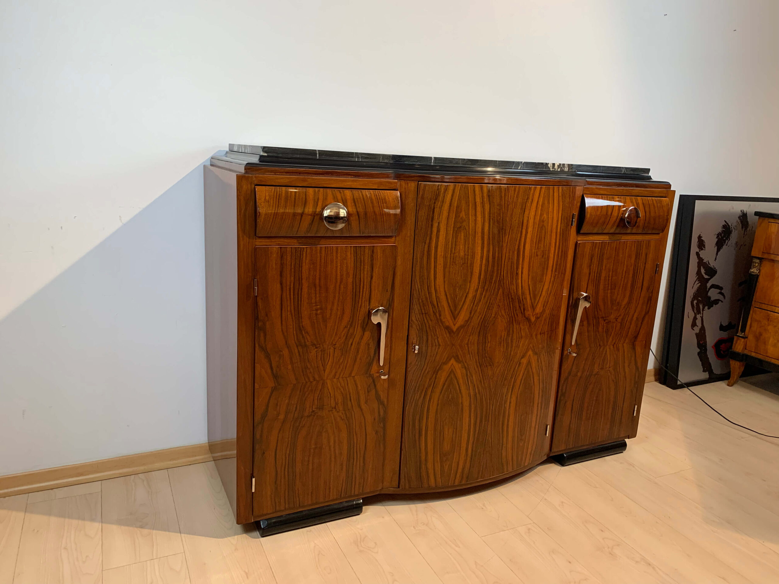 AD-SB-380 Art Deco Sideboard, Walnut Veneer, Nickel, Marble, France circa 1930