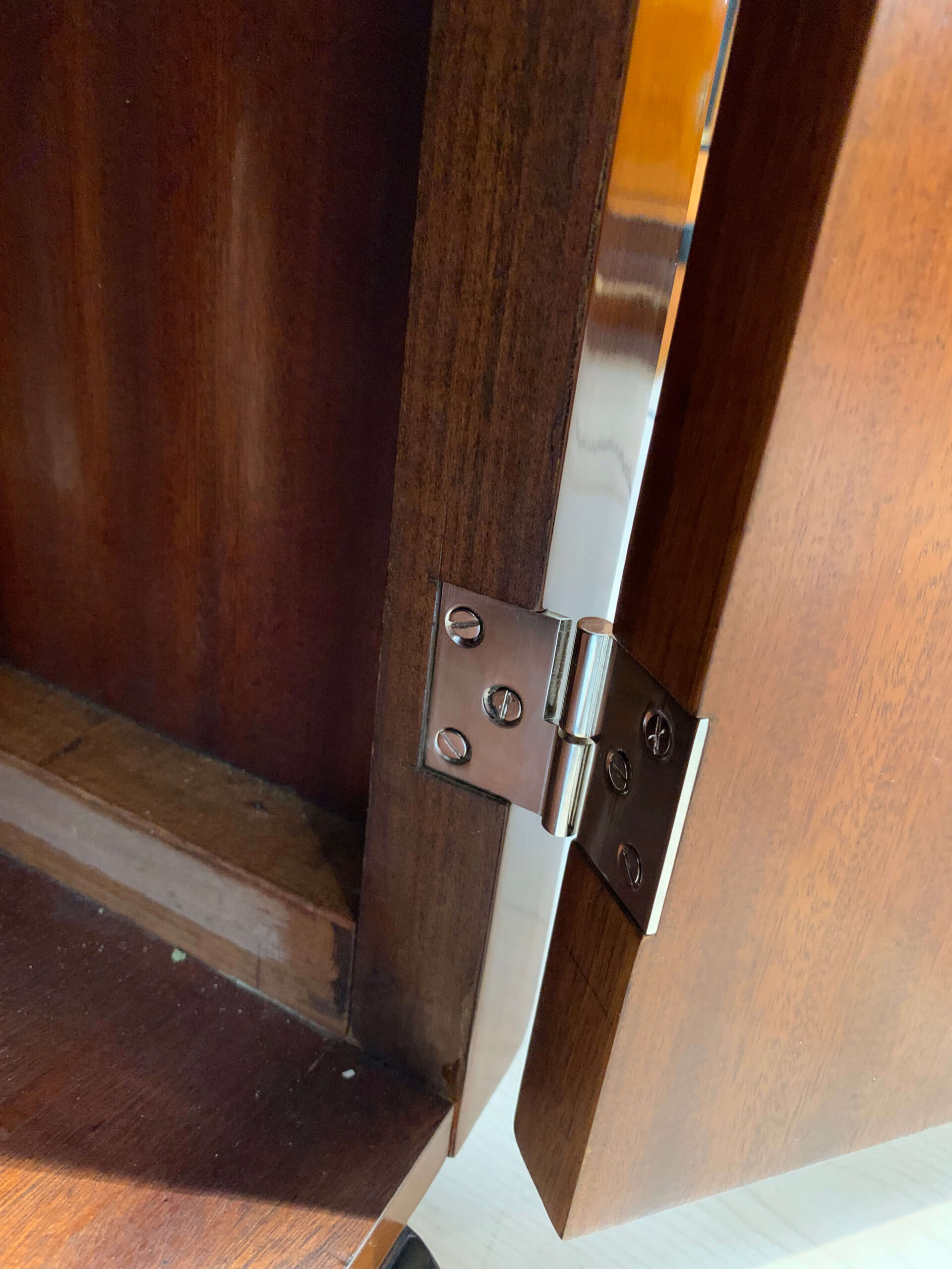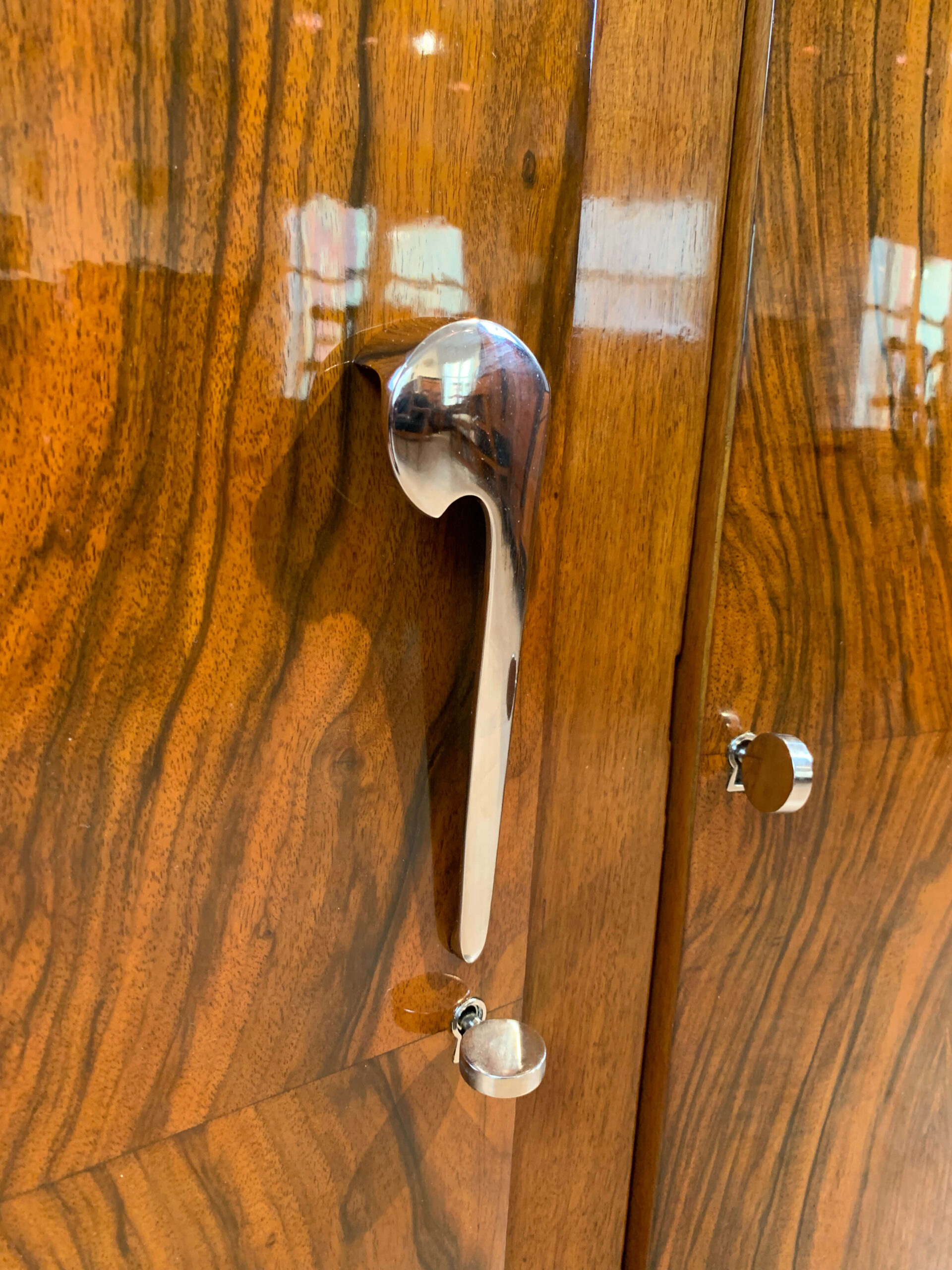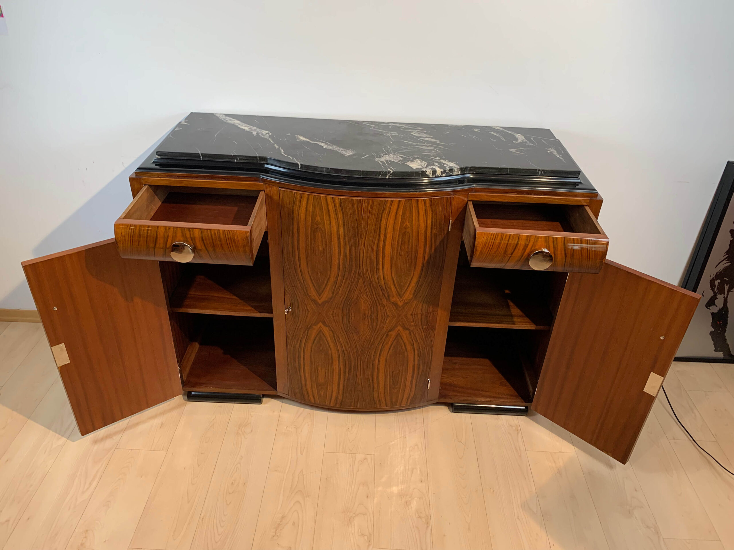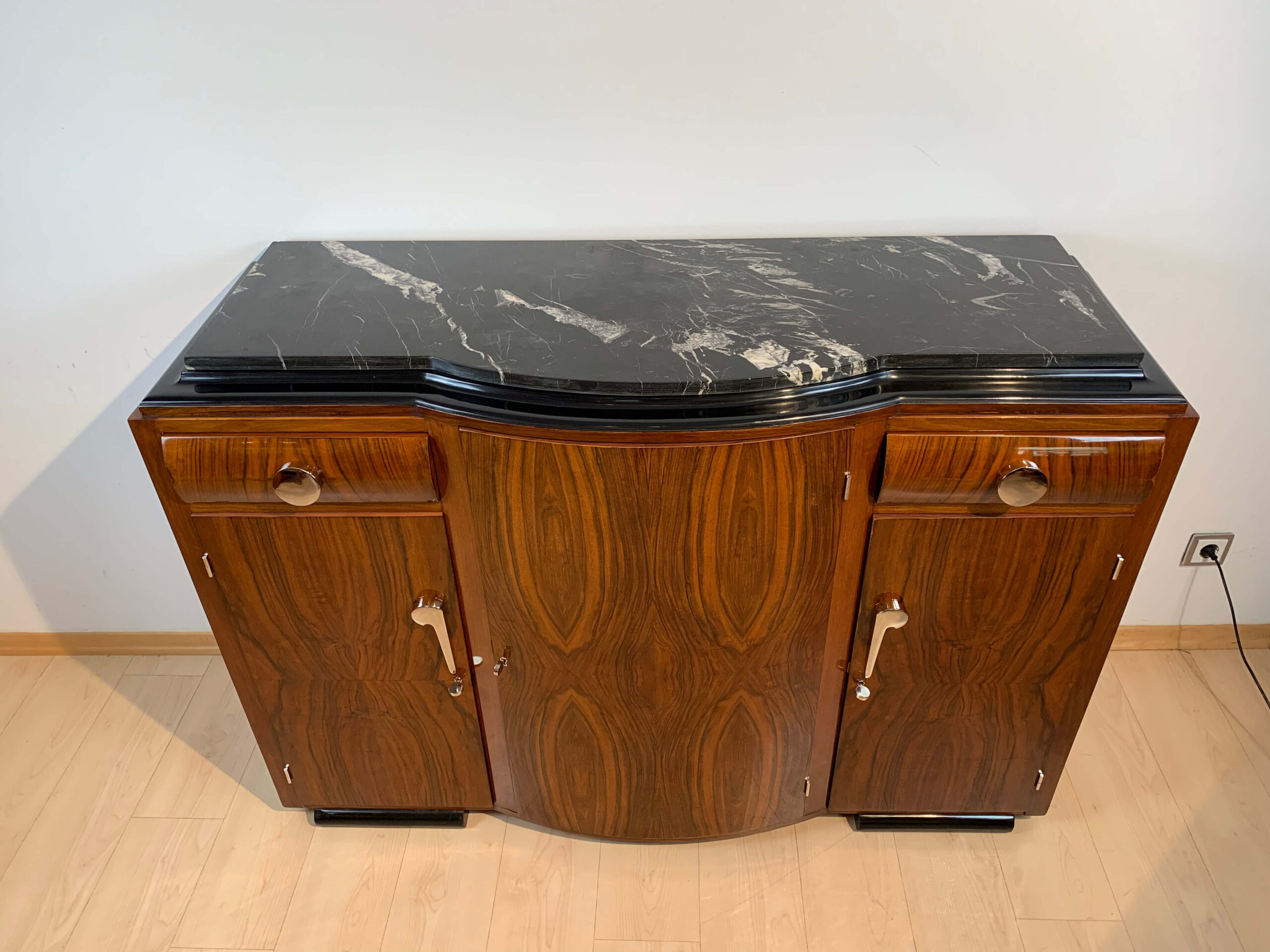 AD-SB-380 Art Deco Sideboard, Walnut Veneer, Nickel, Marble, France circa 1930