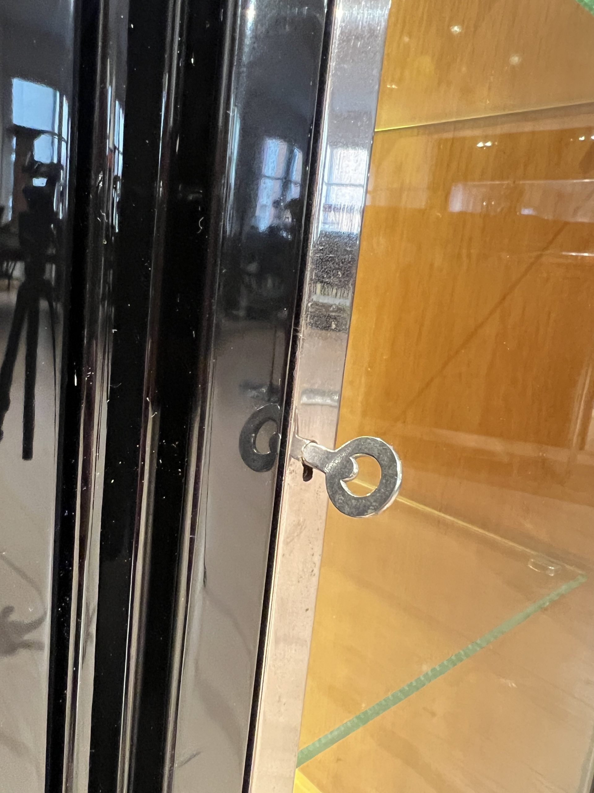 • Inside in very beautiful, lacquered maple veneer on the doors and inside with polished shelves in softwood.