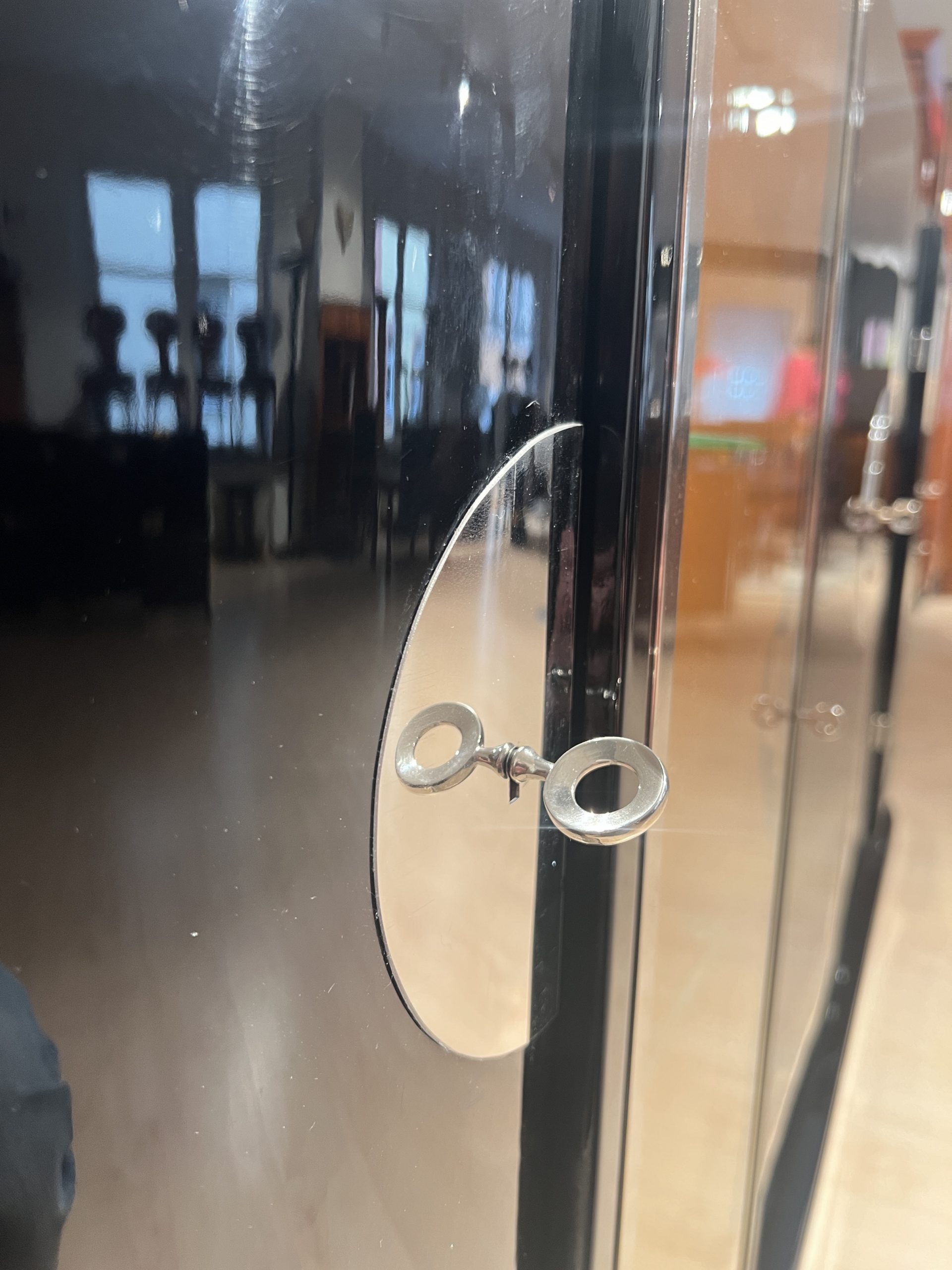 • Glass doors at the front left and right with original chrome-plated frame in fine quality