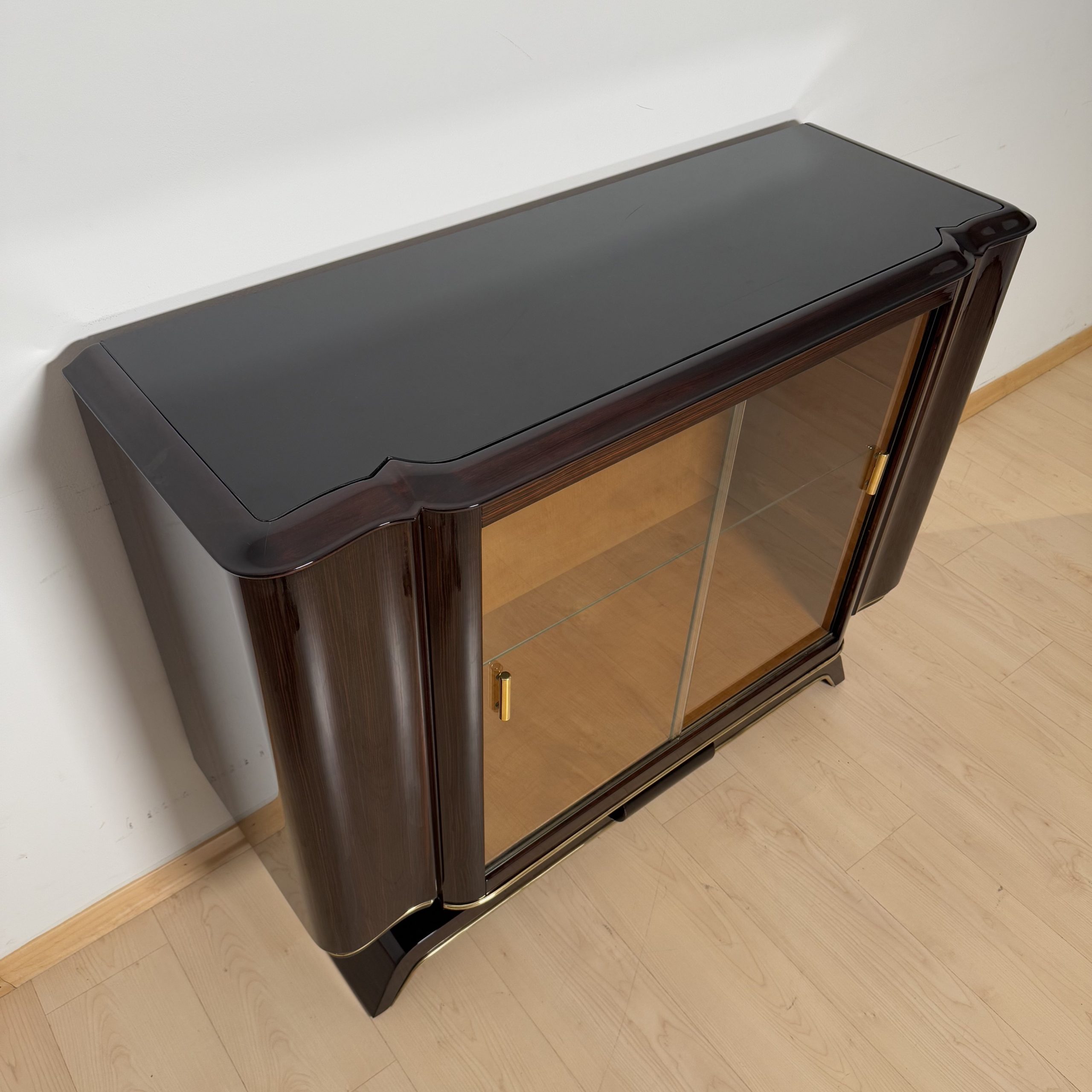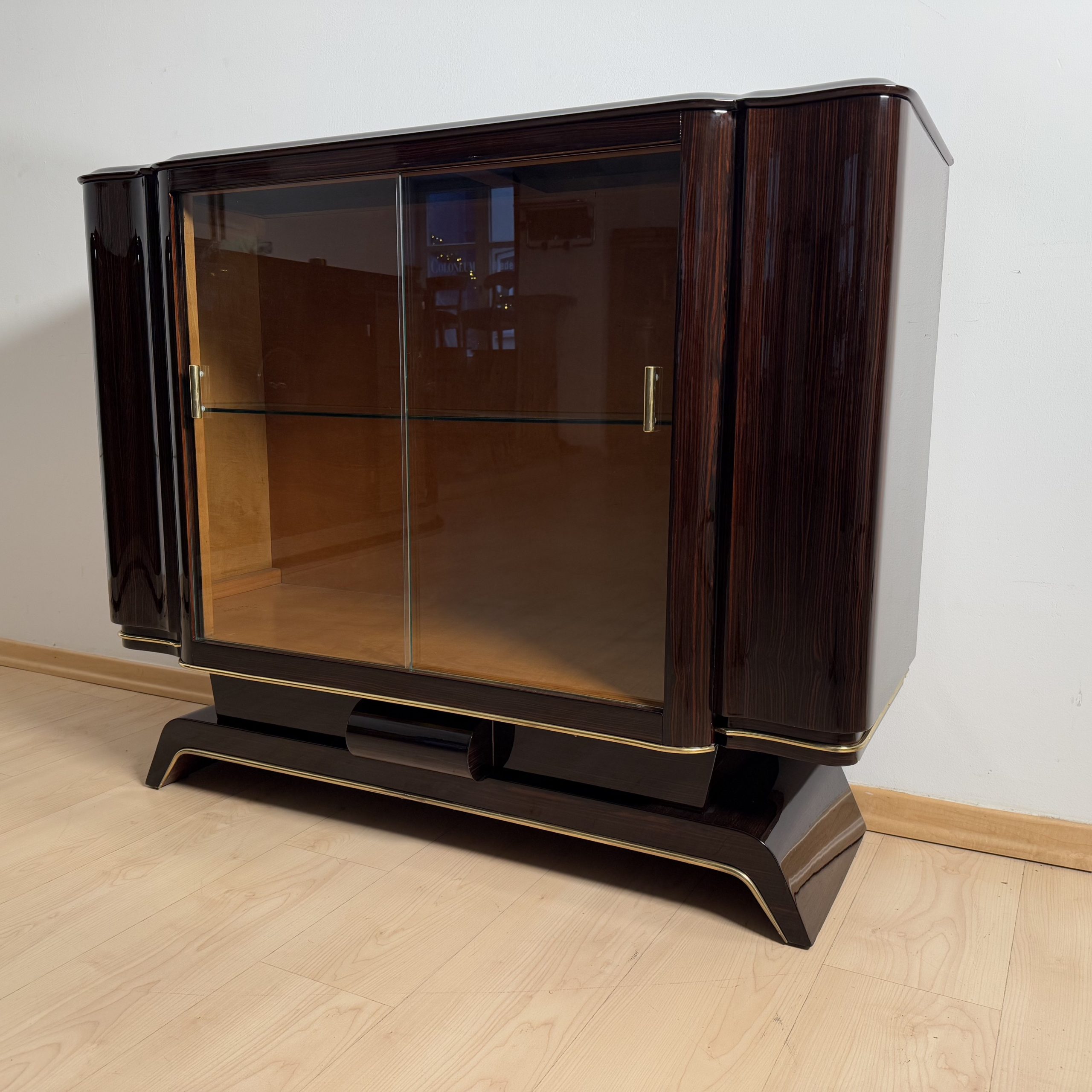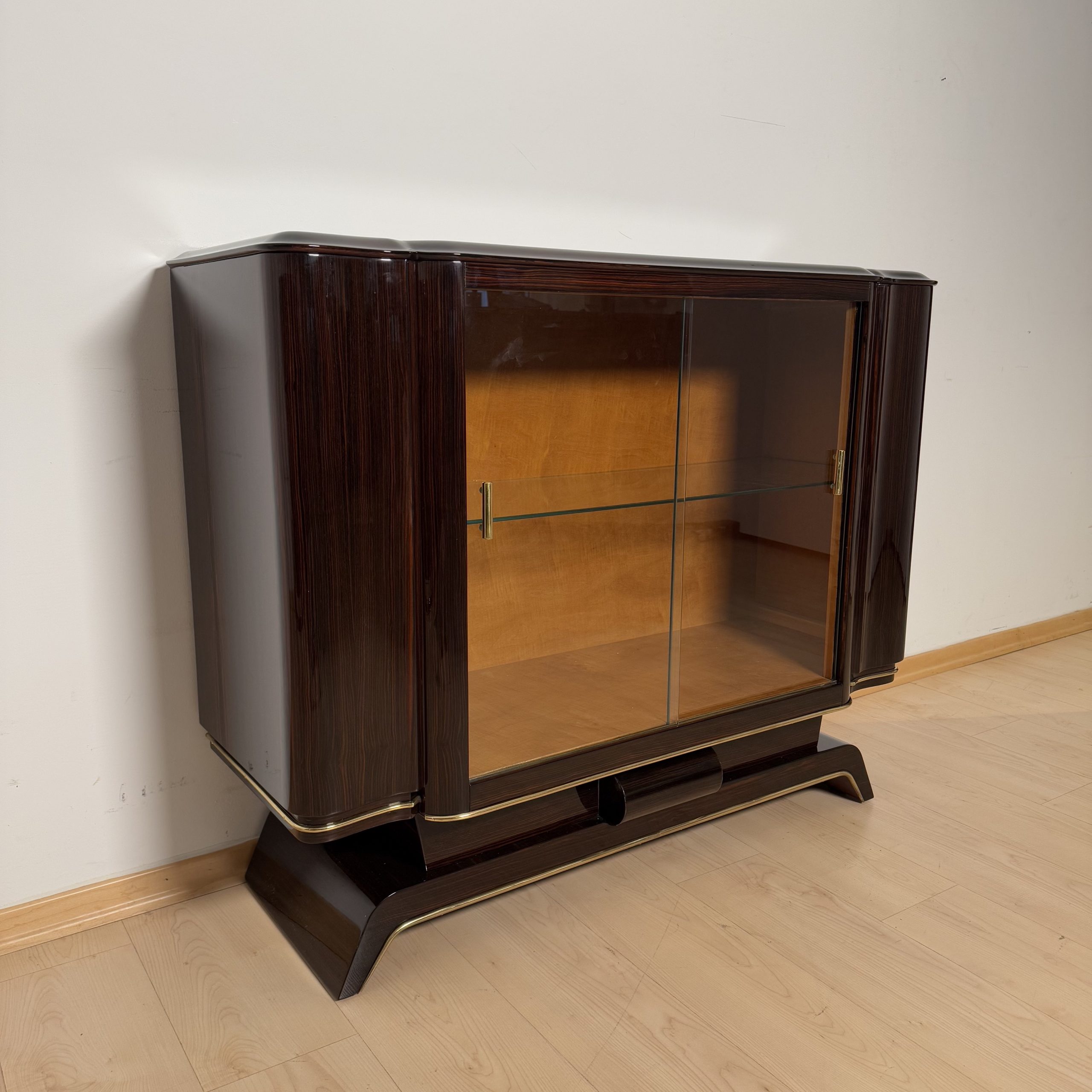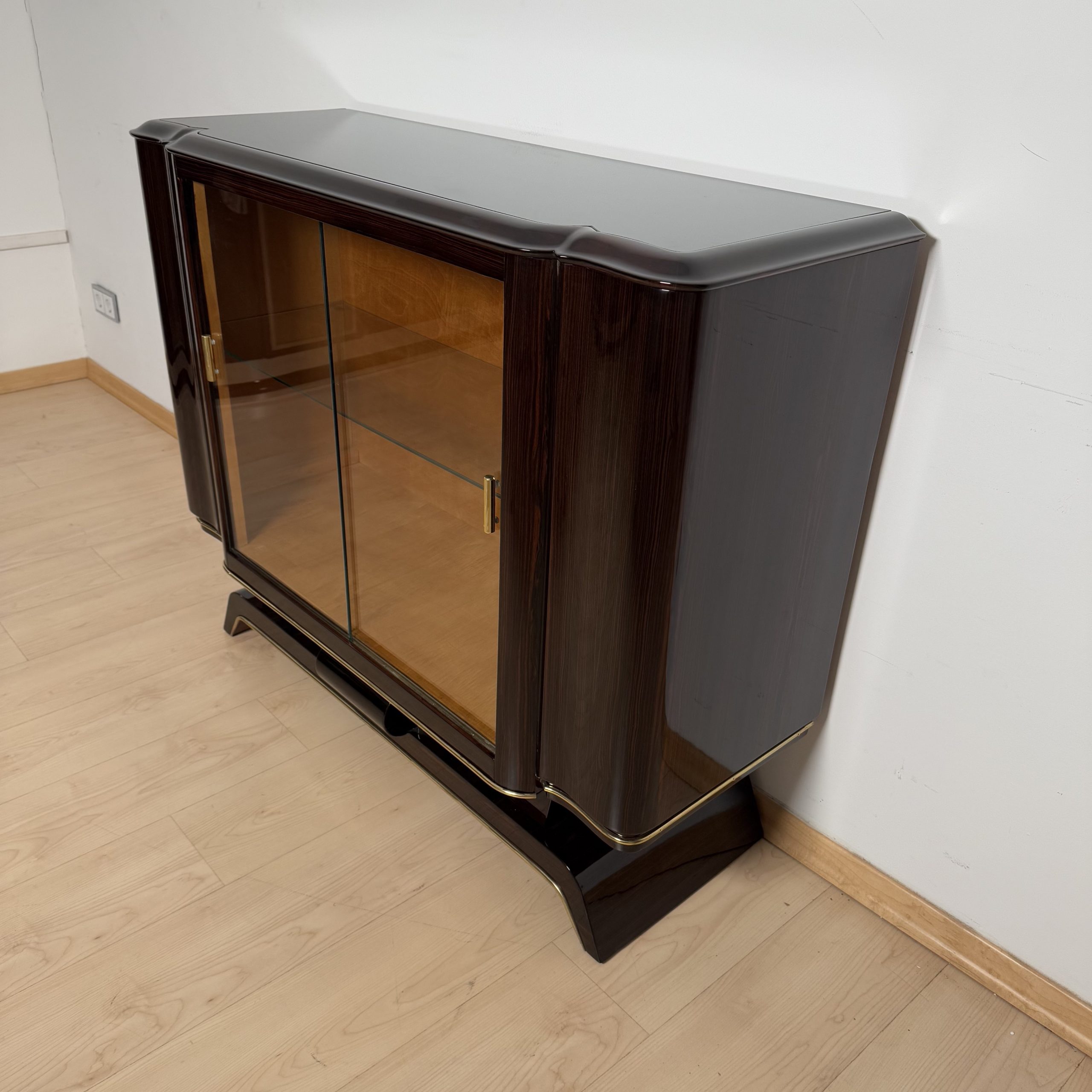 AD-SB-404 Art Deco Vitrine, Macassar, Maple, Brass, Paris circa 1930