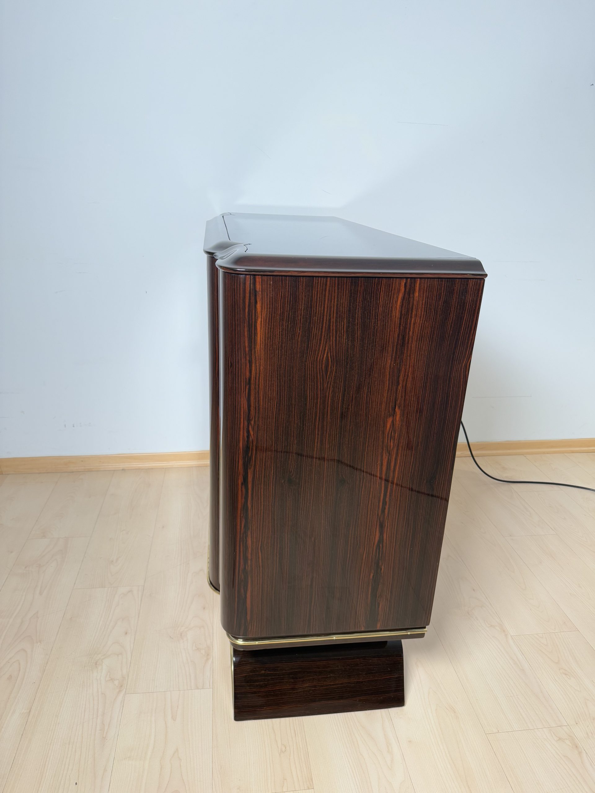 • Macassar ebony veneered, lacquered and high gloss polished.