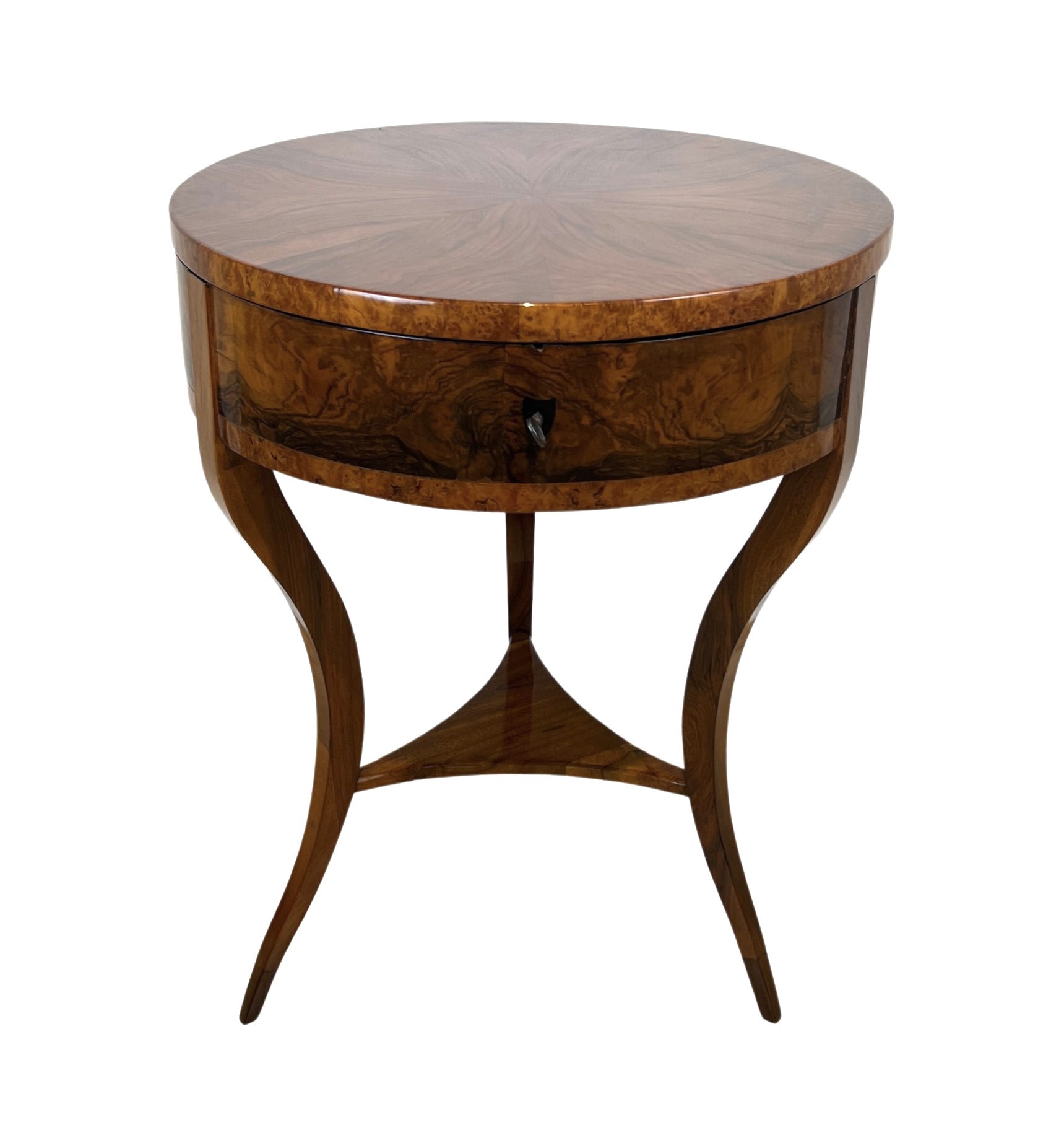 Round early Biedermeier / neoclassical side table with writing equipment interior.