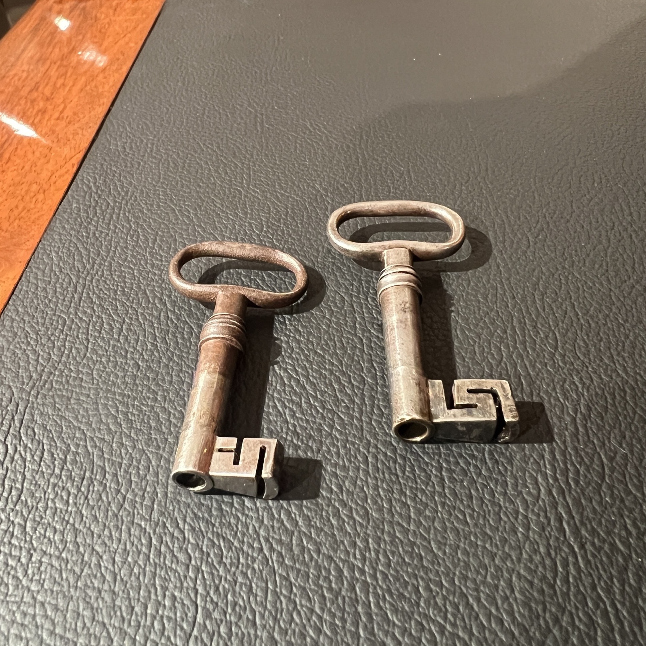 - Two ebonized full columns with brass (or bronze?) capitals and bases.