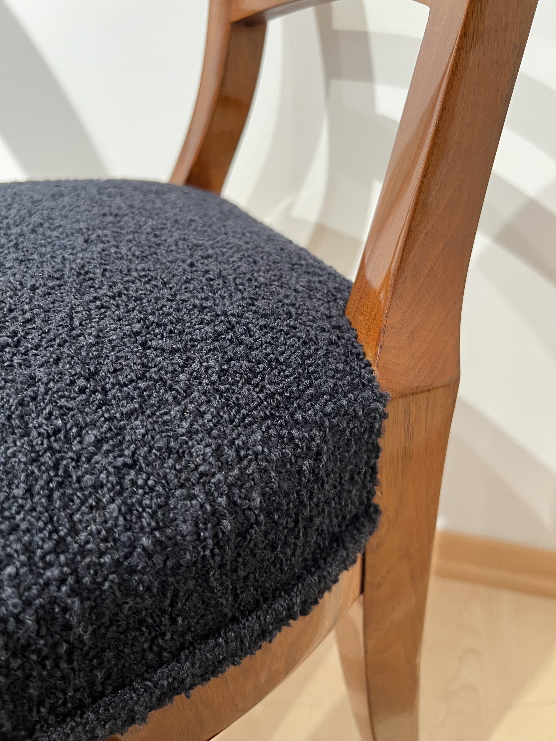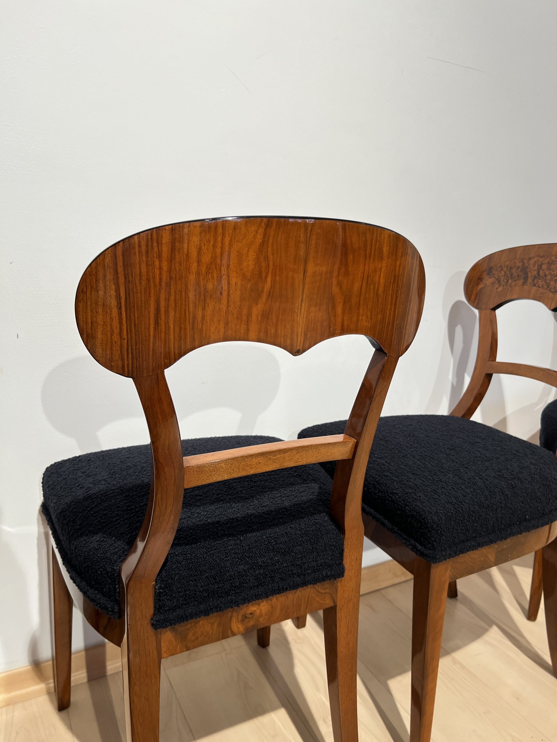 Beautiful set of six neoclassical Biedermeier shovel chairs (backrest in form of a shovel) from South Germany around 1840/50.