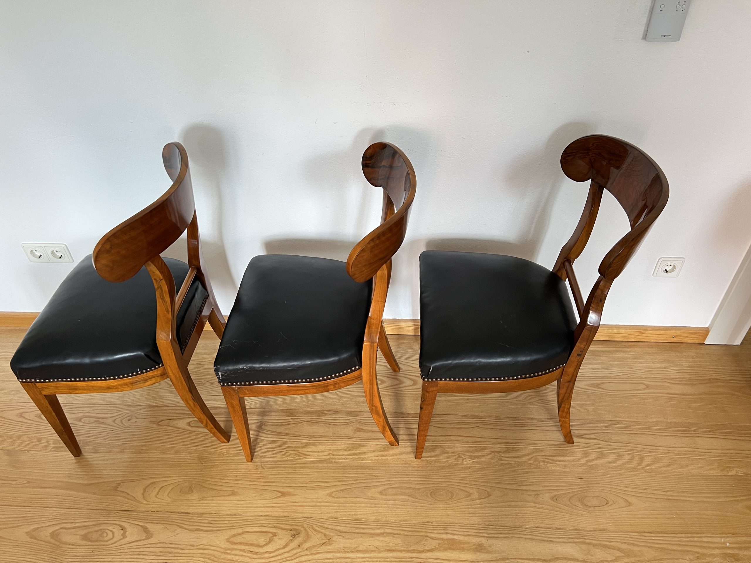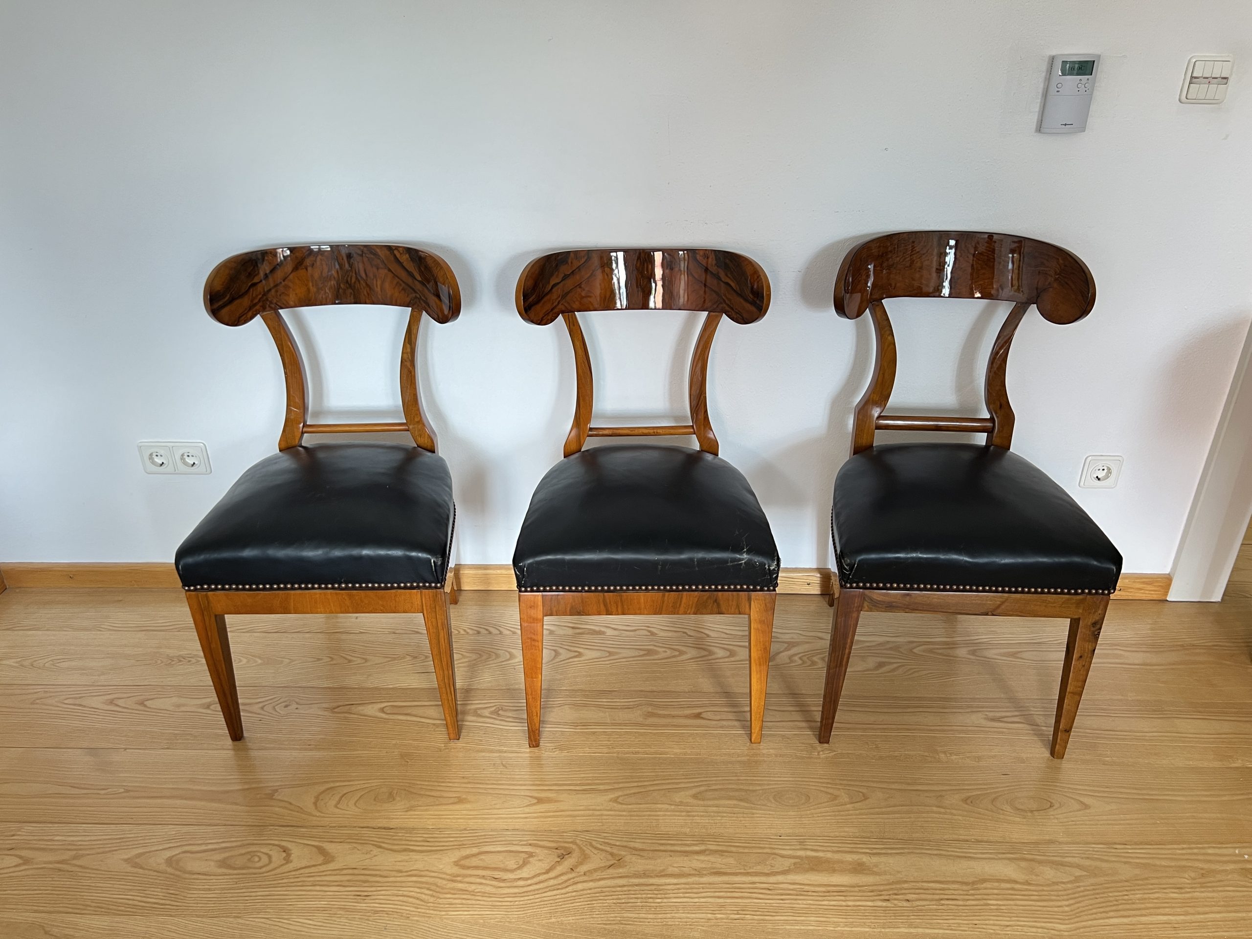 The pair of chairs stood together in a set of three with a very similar but slightly different single Biedermeier shovel chair, also available under item number BM-SI-491.