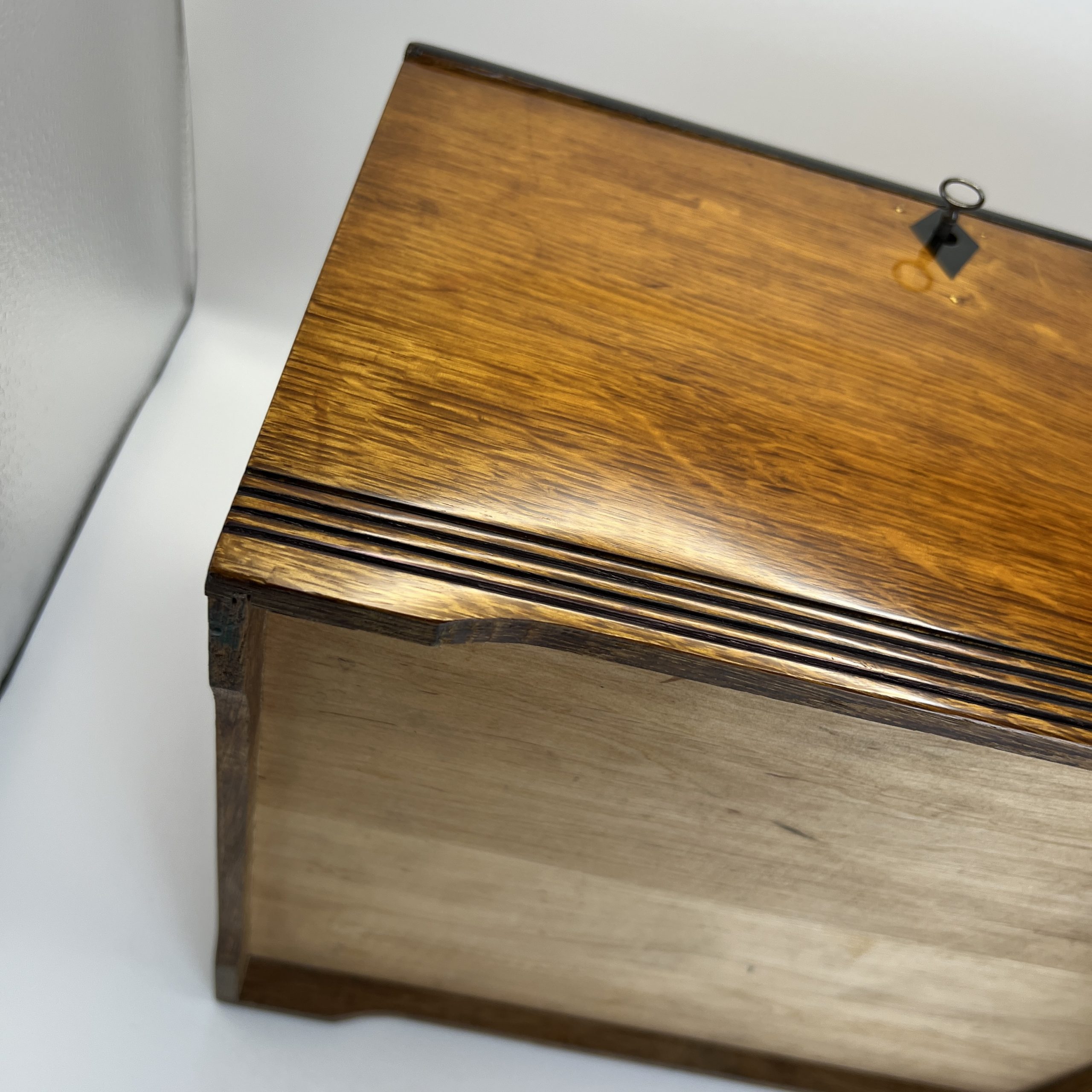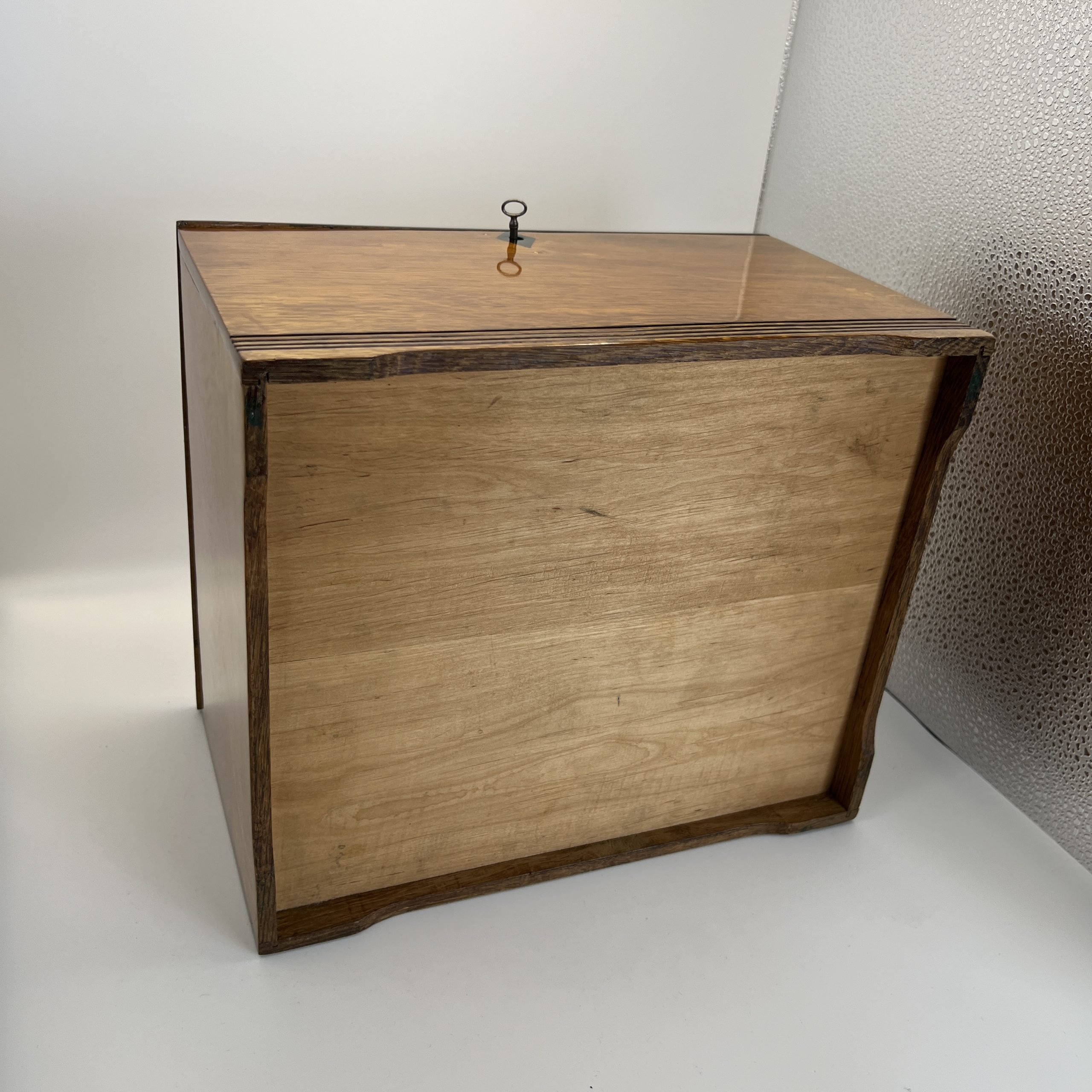 • Solid oak with ebonized keyhole and recessed decorative lines.