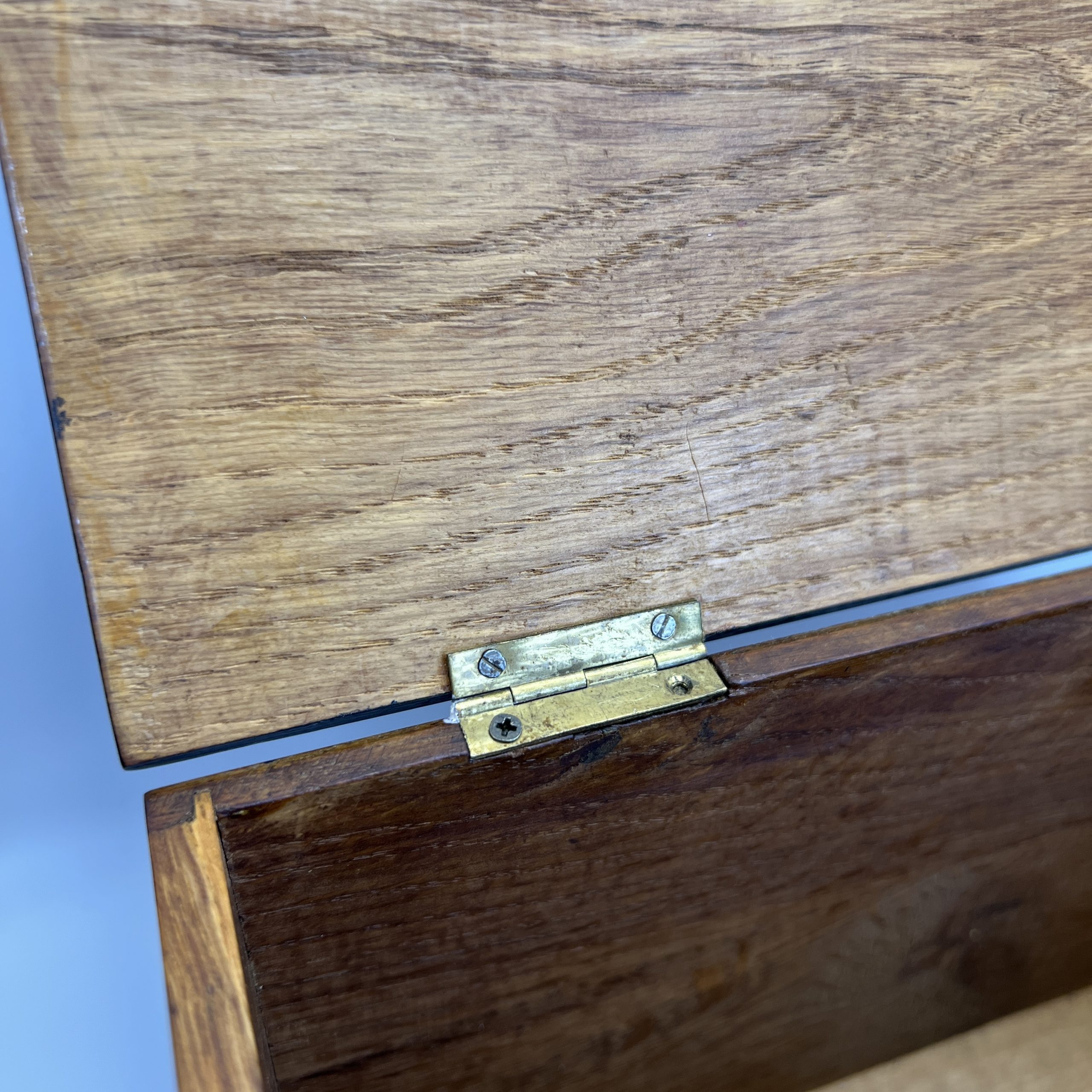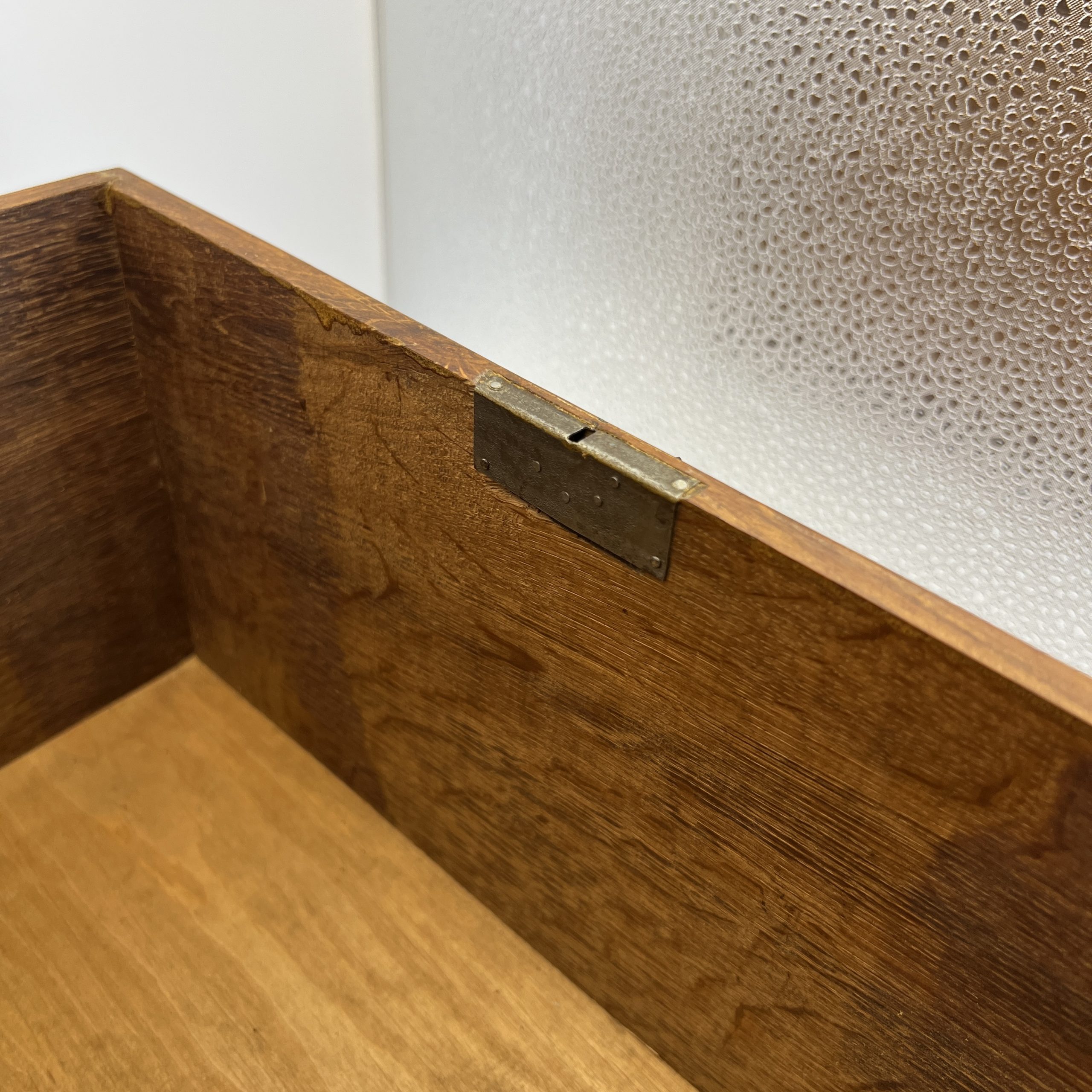 • Original brass lock and hinges.