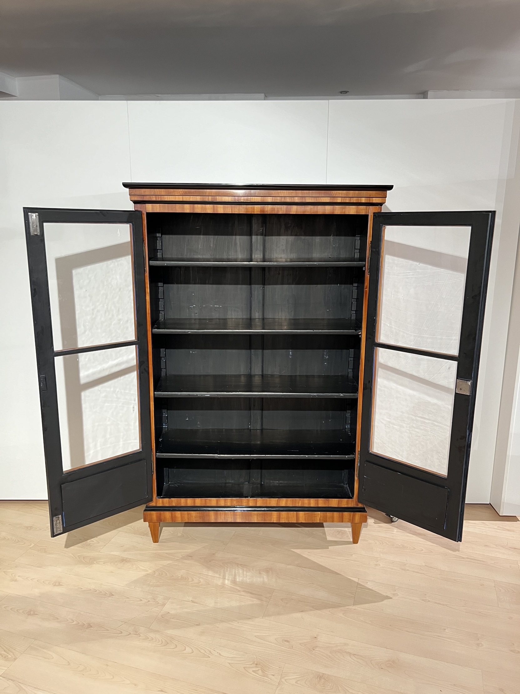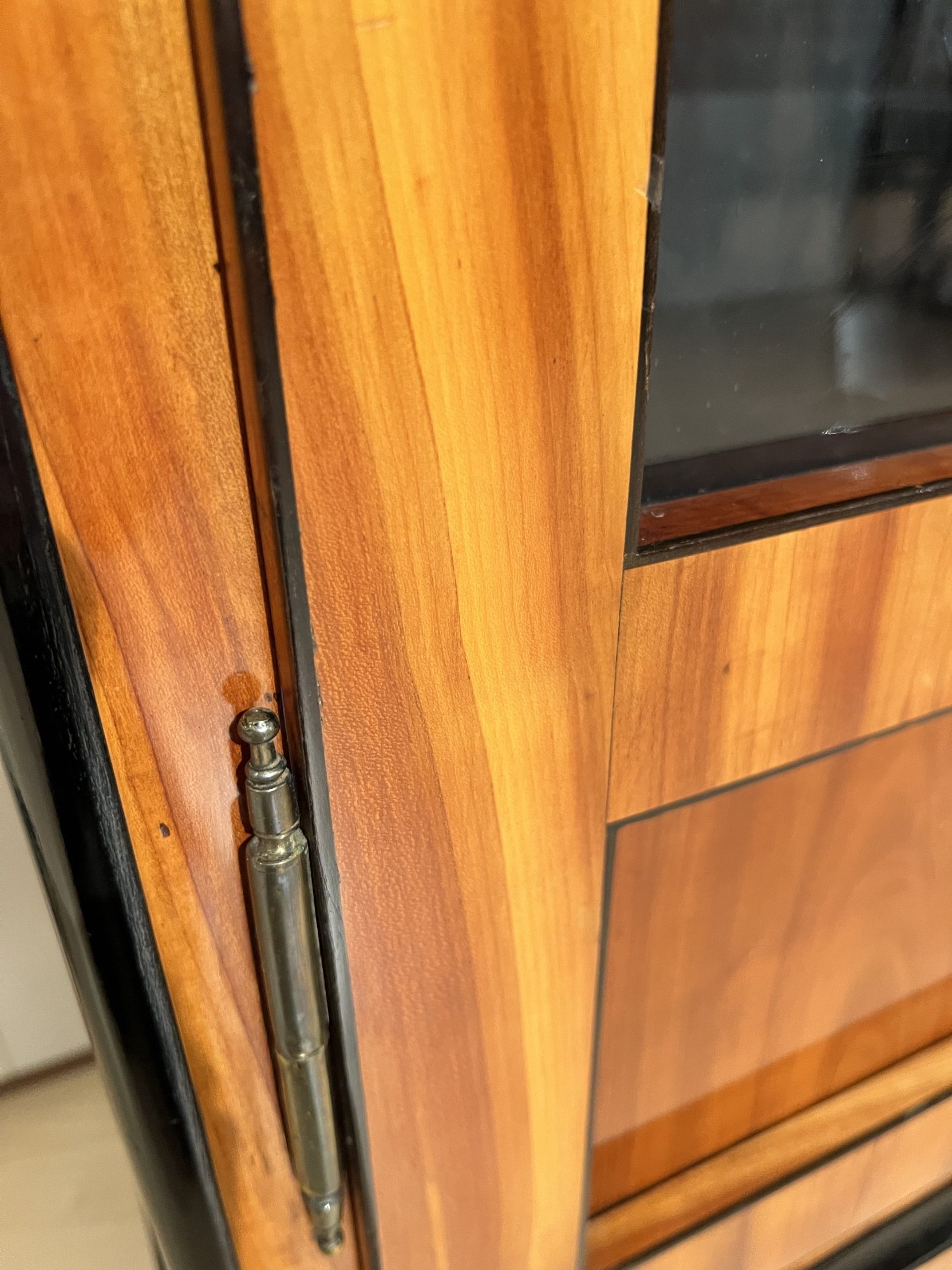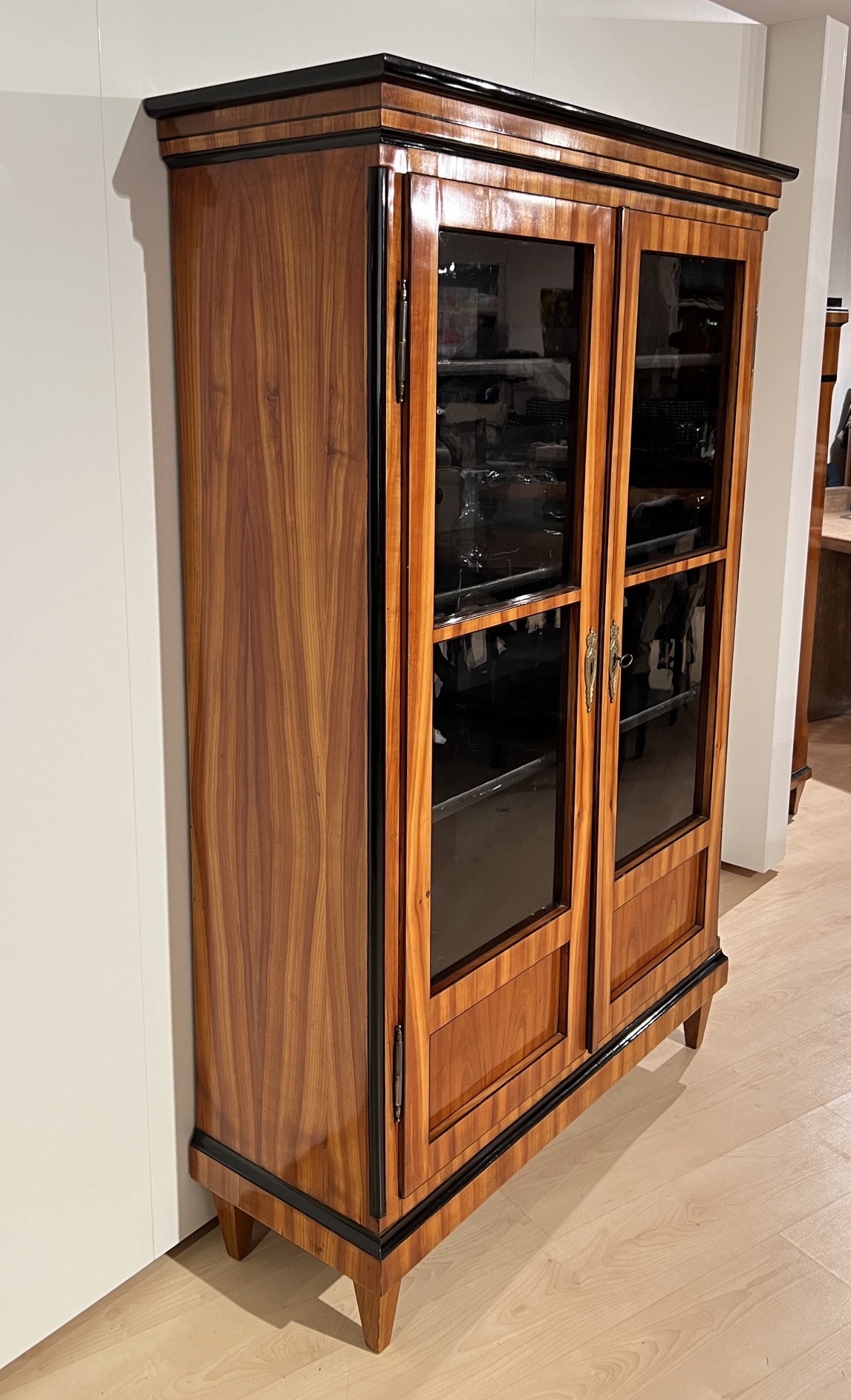 Elegant Biedermeier bookcase or display cabinet in cherry wood veneer from southern Germany around 1820.