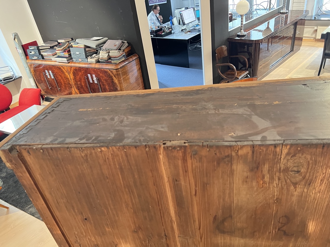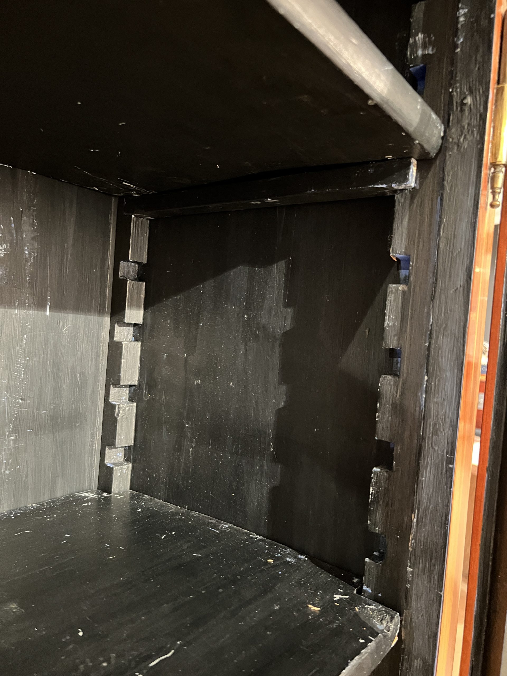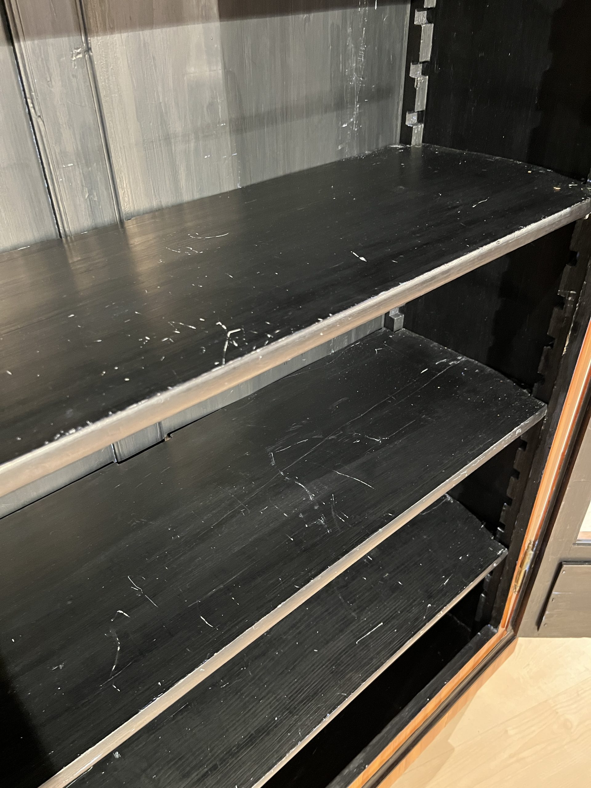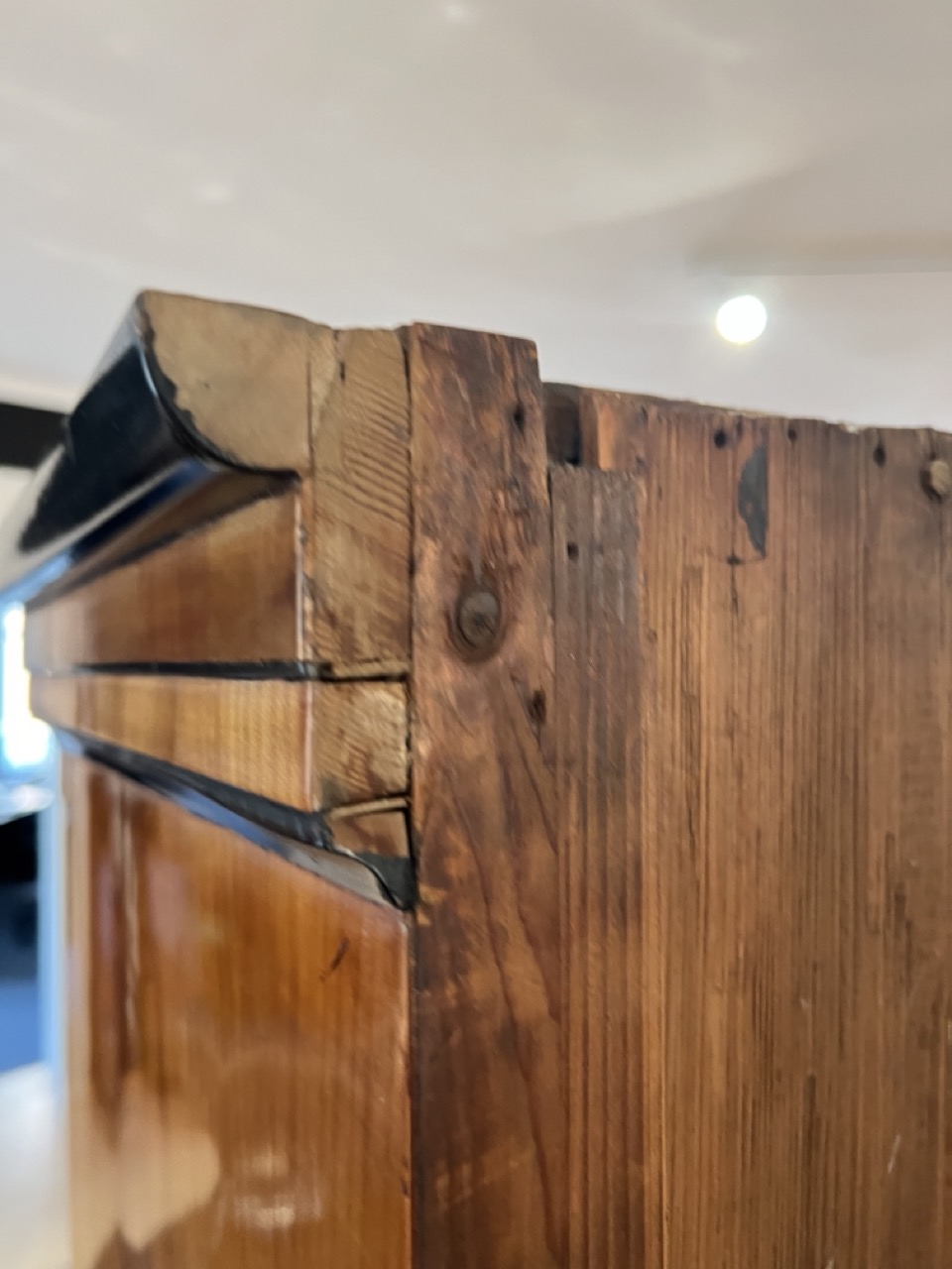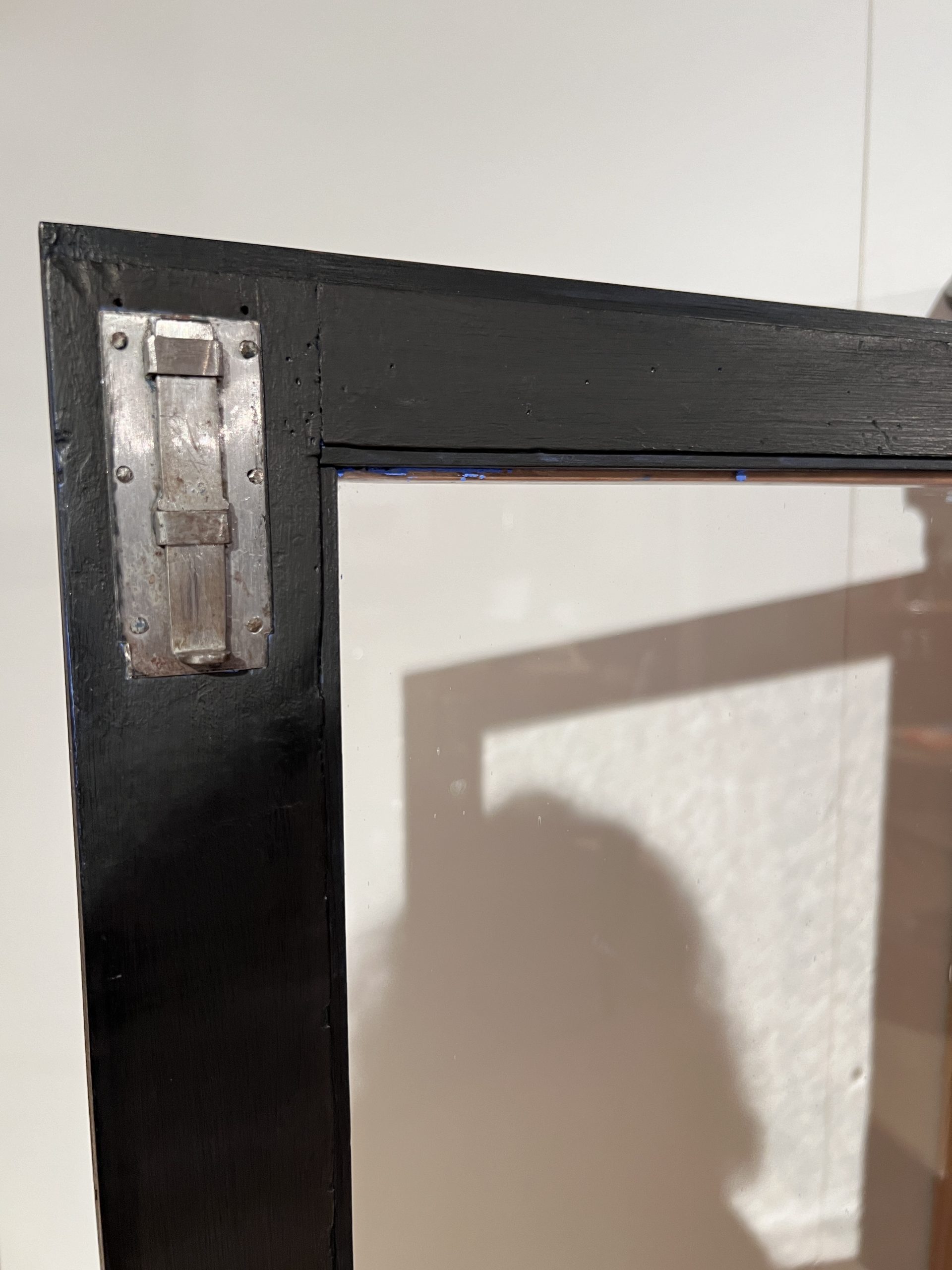 - 4 old glass windows with a cherry wood and ebony veneered intermediate bar.