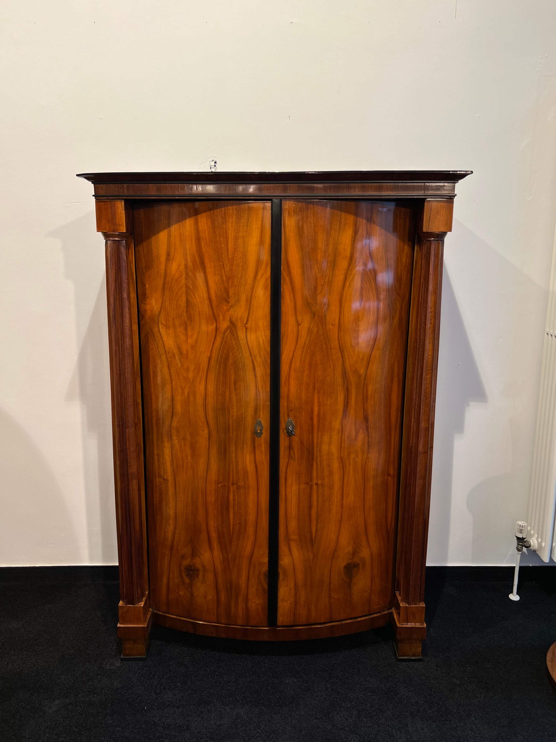 Bombierter Biedermeierschrank in Nussbaum mit kannelierten Säulen aus Österreich, Wien um 1825