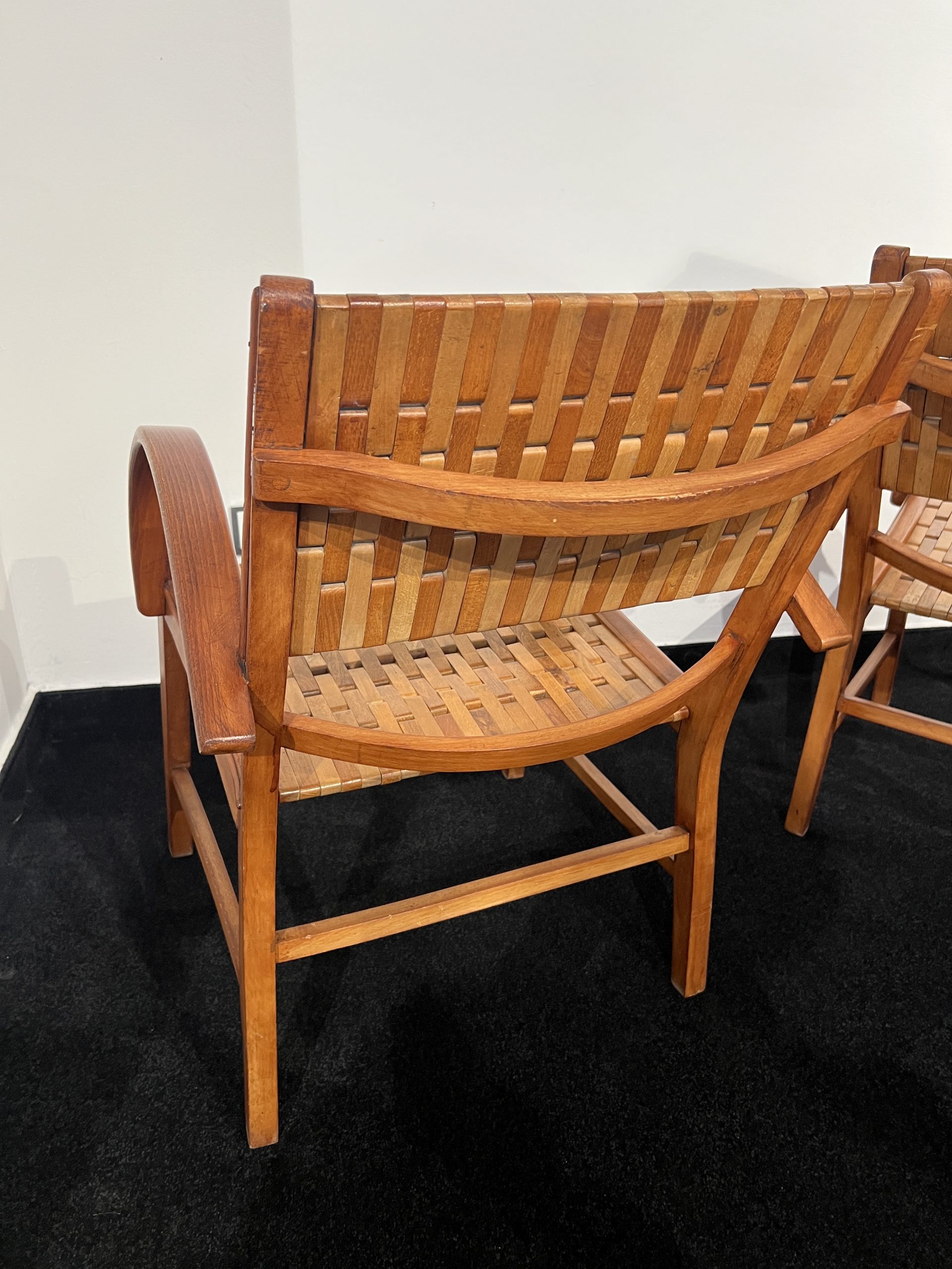DE-SI-520 Paar ‚Gelenka‘ Armlehnstühle, Buche massiv, Deutschland um 1950