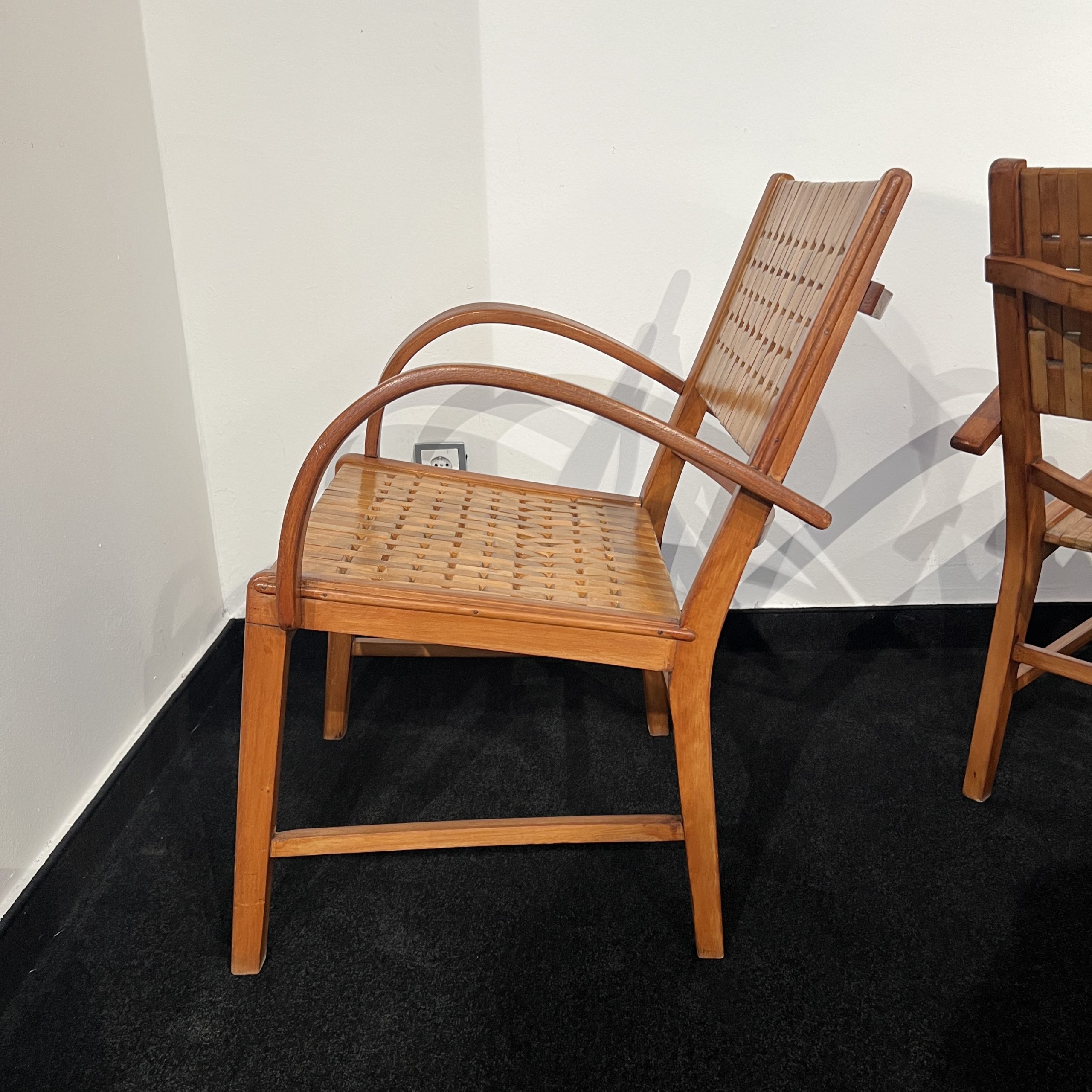 Schönes, restauriertes Paar Bauhaus / Mid-Century Armlehnstühle von Gelenka aus Deutschland um 1950.