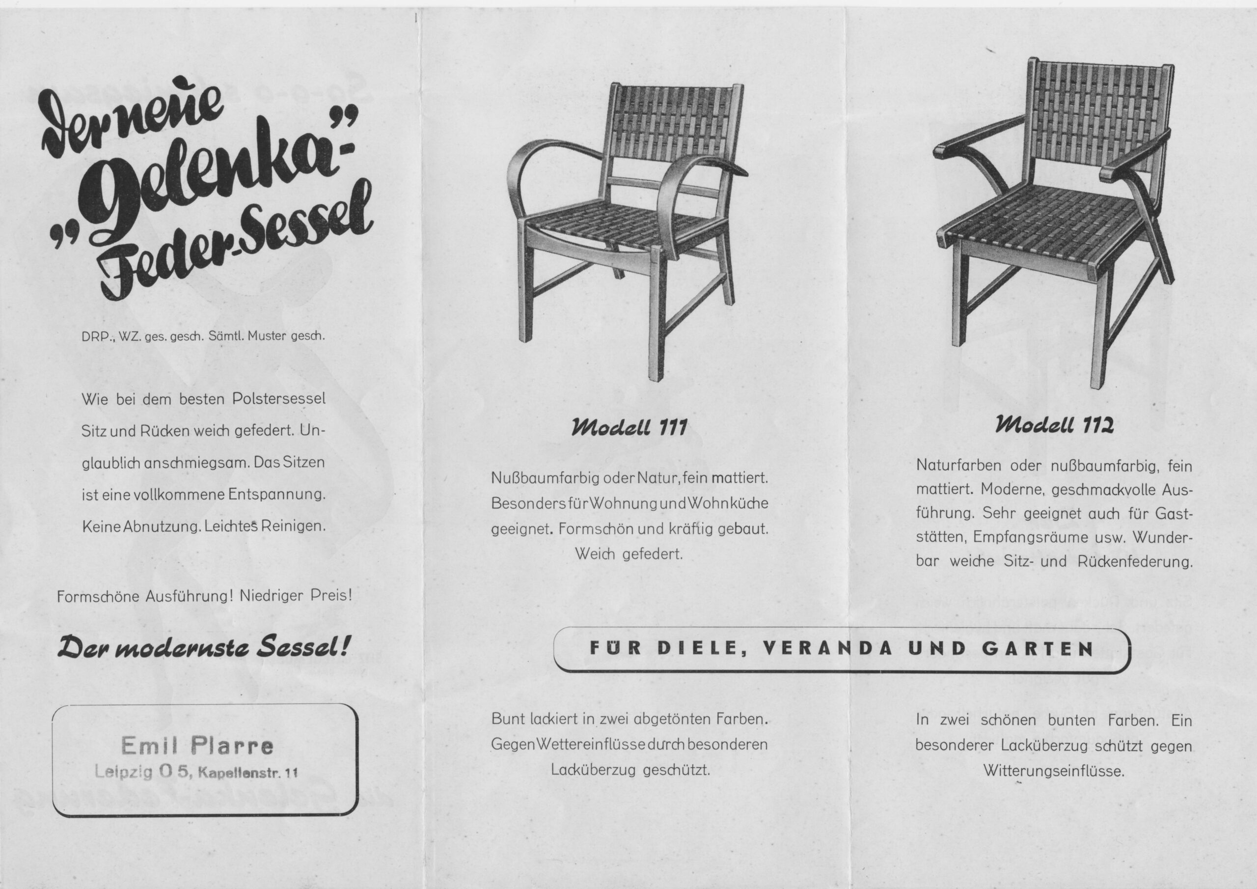 • Hersteller: Gelenka-Patentmöbelfabrik, Wolfhagen & Emil Plarre, Leipzig.