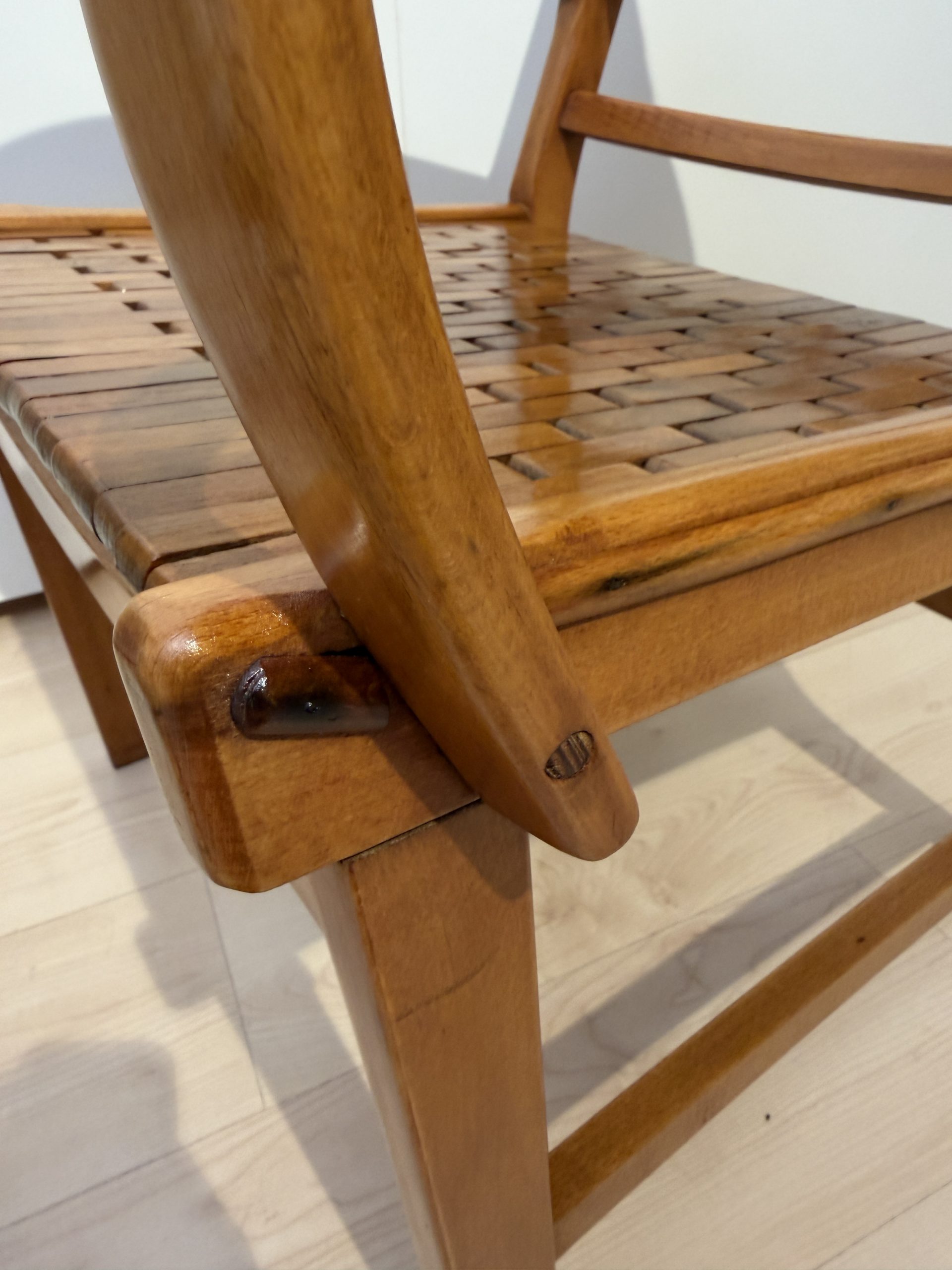 • Sitzfläche und Rückenlehne mit Holz Aufreihern zugeschobenen Lamellen / elastische Bänder.