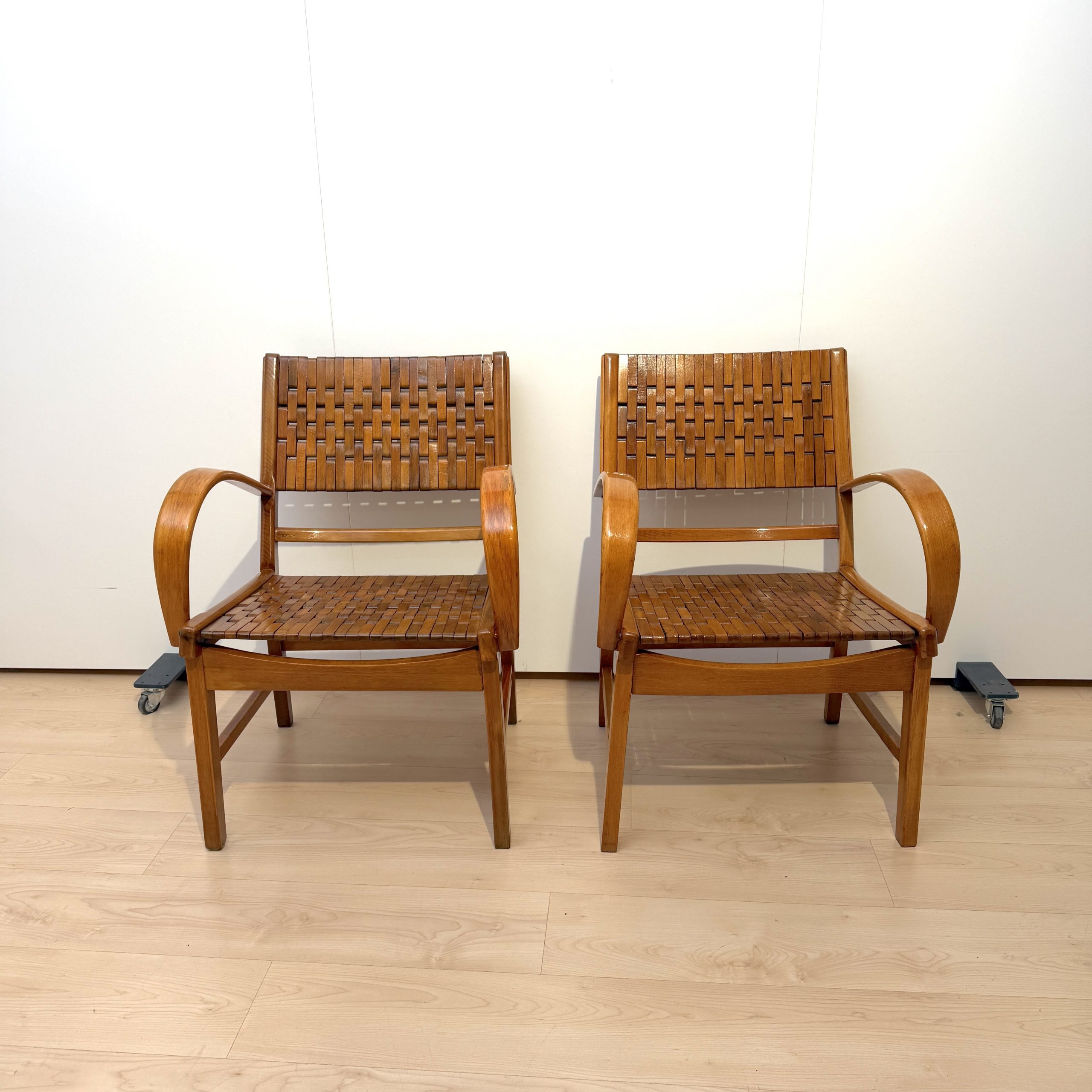 Restauriertes Paar Bauhaus / Mid-Century Armlehnstühle von Gelenka aus Deutschland um 1950.