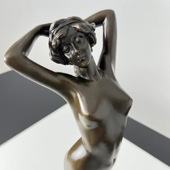 Standing female nude with raised arms. The pose appears graceful and timeless, typical of idealized representations of femininity in the art of the 1920s–30s.