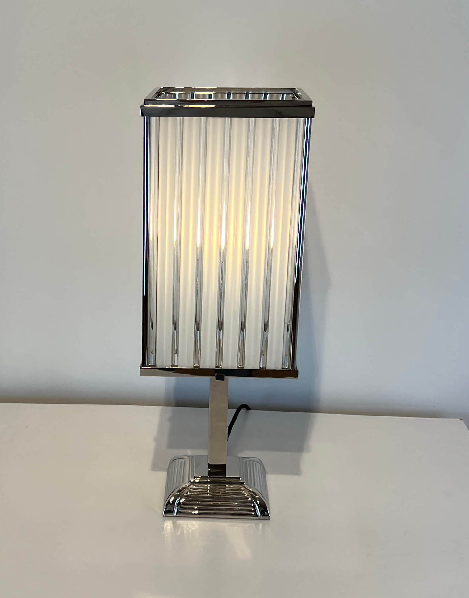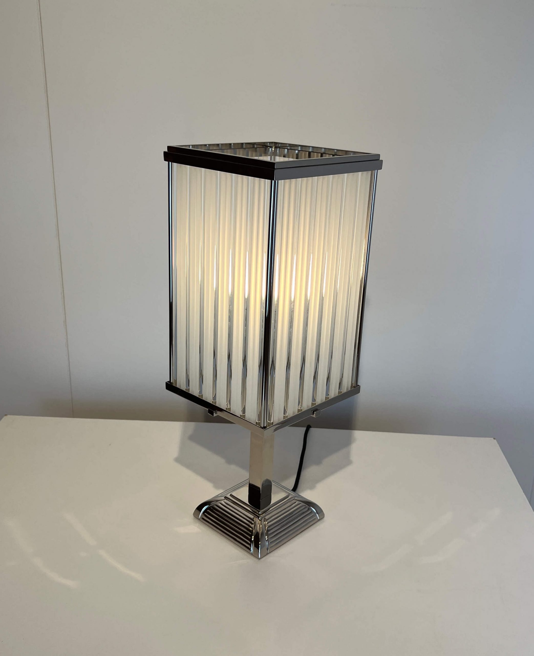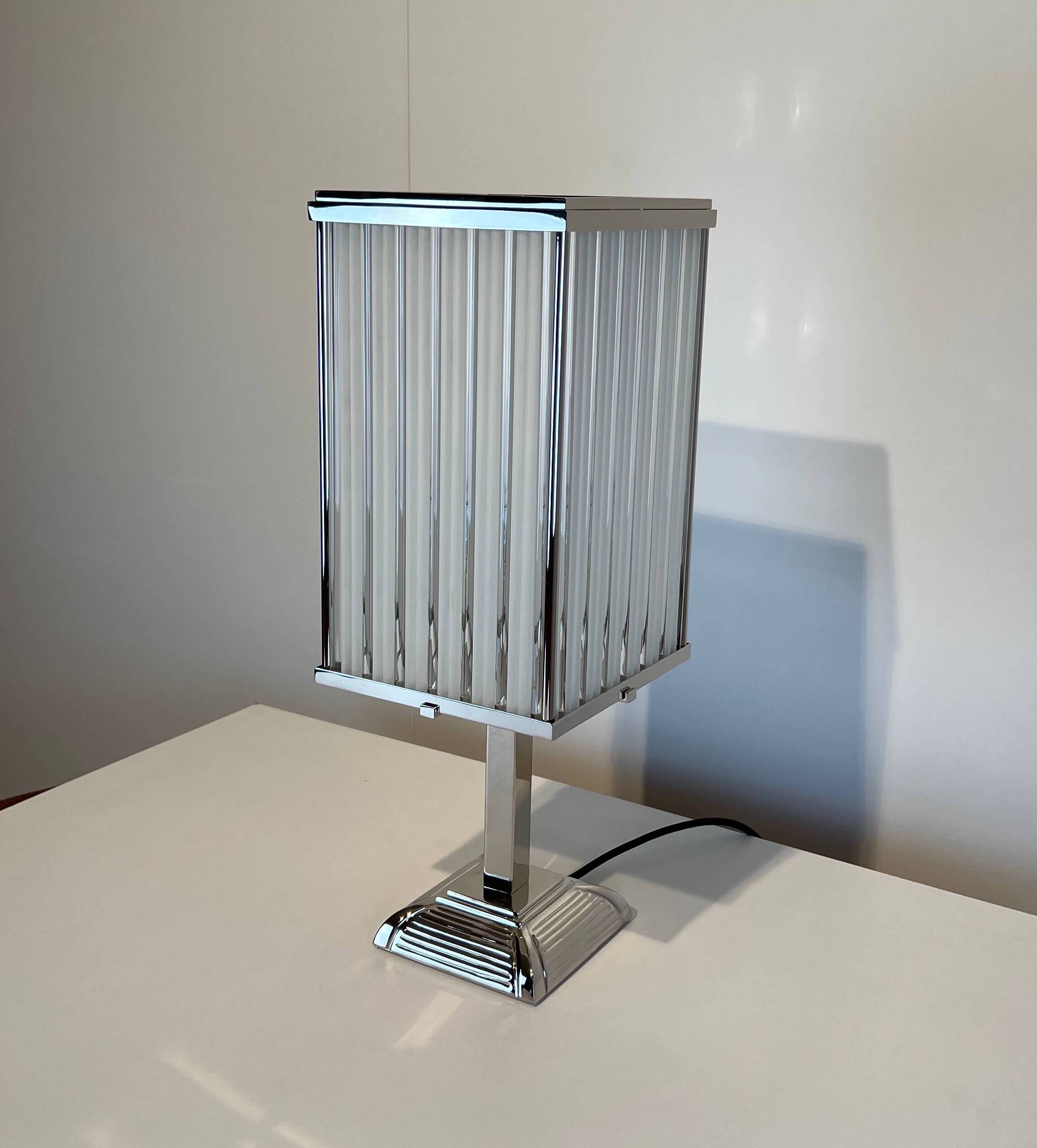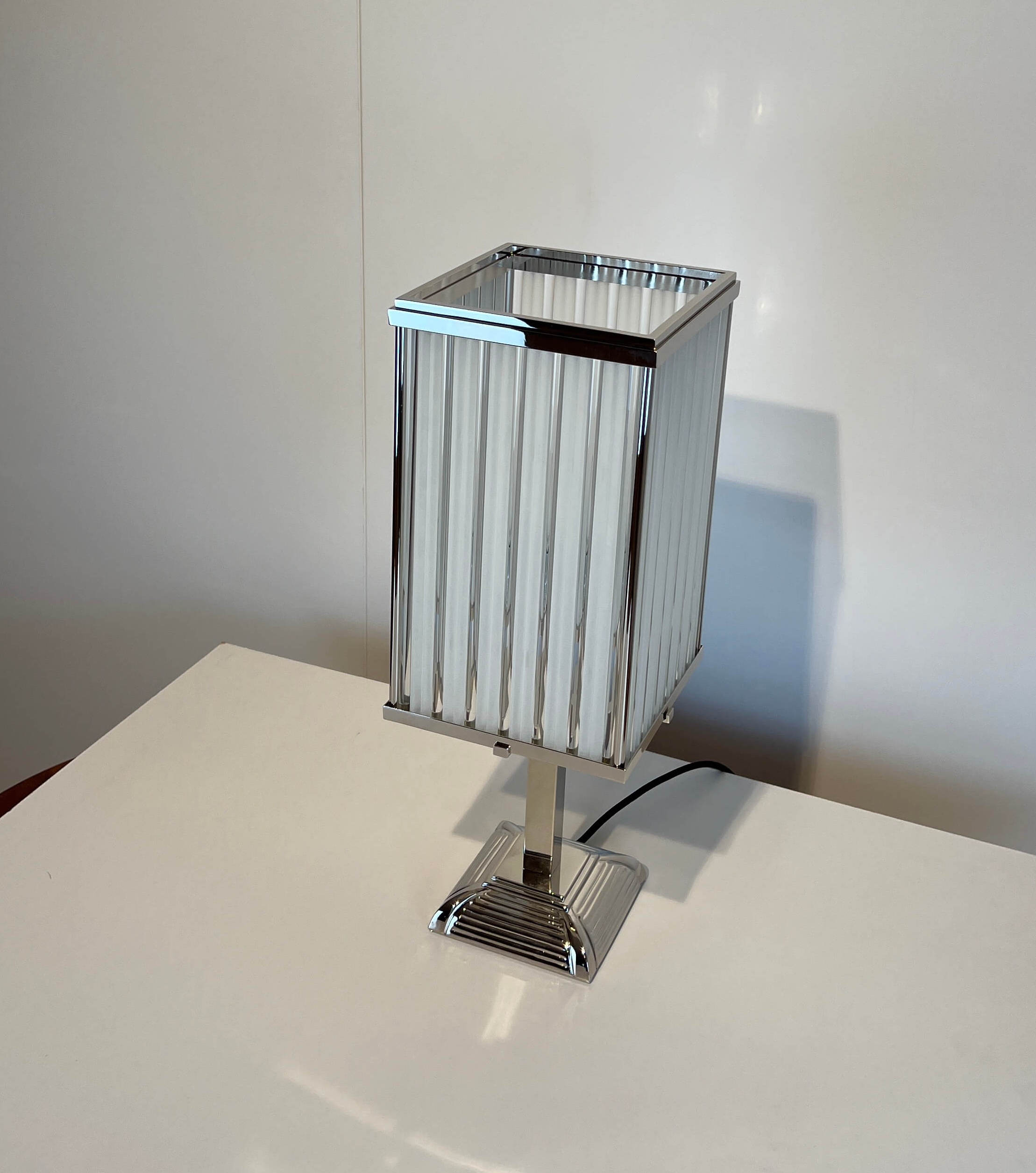 AD-SO-466 Art Deco Rectangular Table Lamp, Metal and Glass